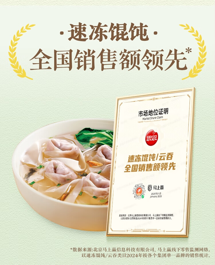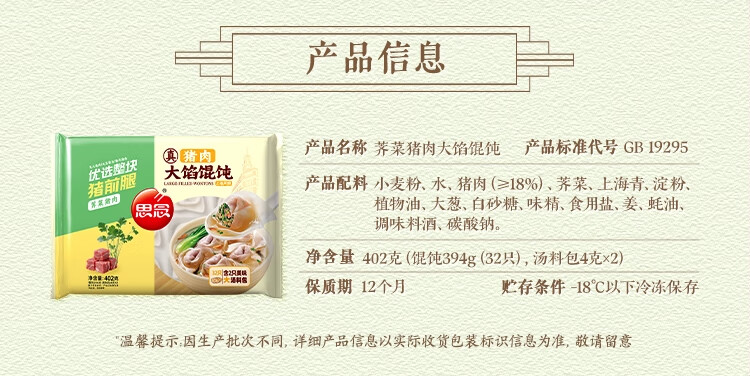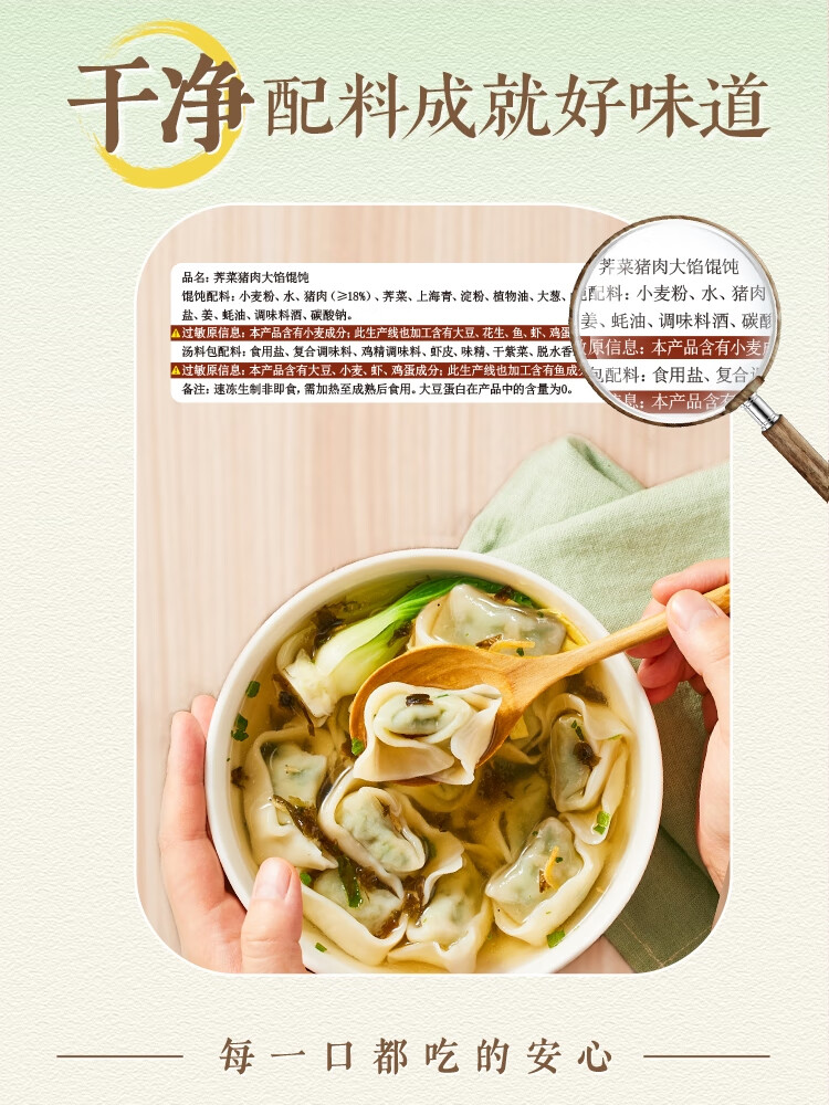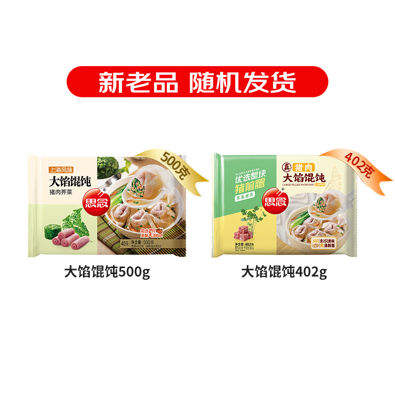 思念大馅馄饨猪肉荠菜402g*2袋64只 赠汤料包 早餐夜宵速冻