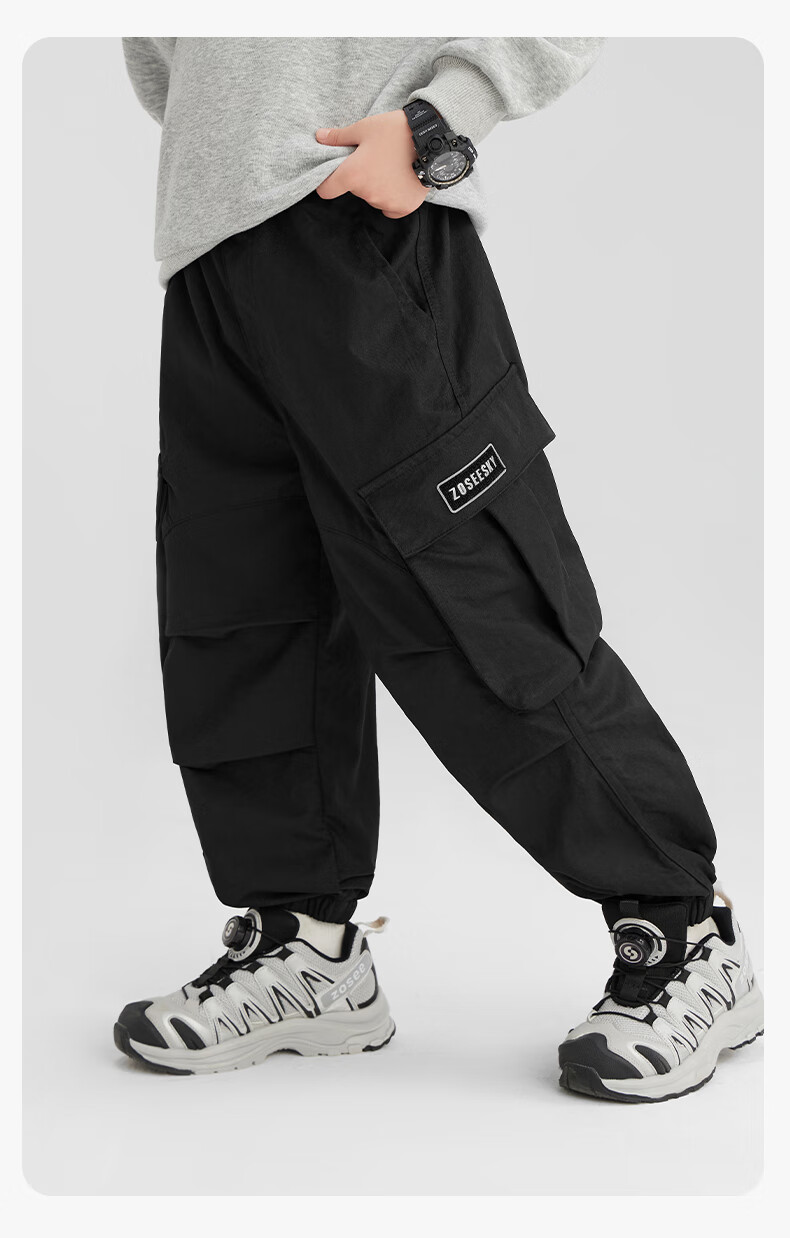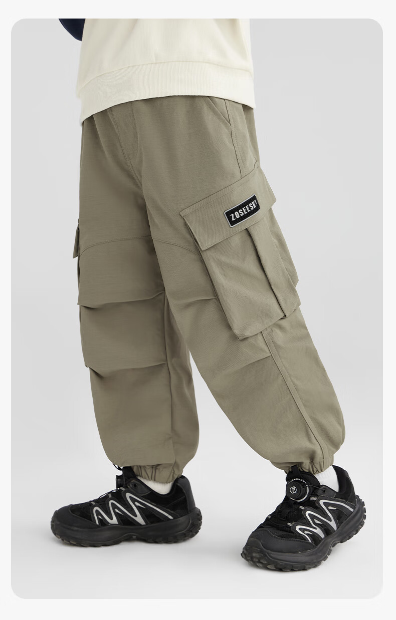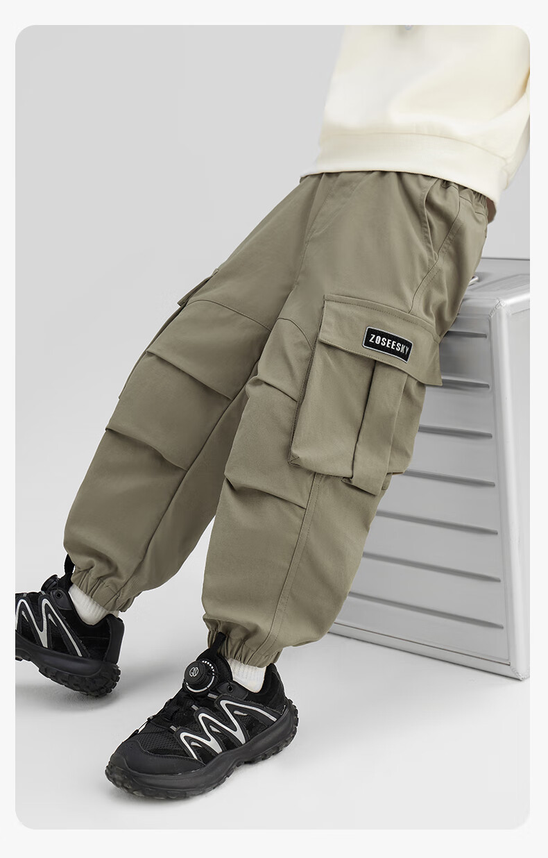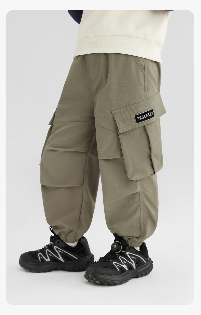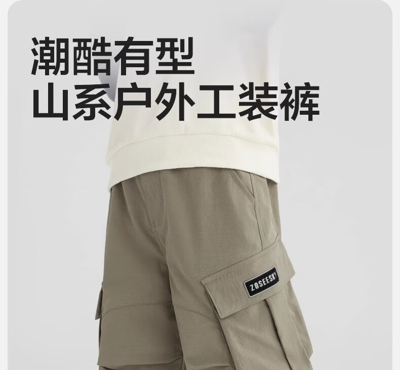 左西男童裤子春装户外耐磨工装裤2026新款儿童春秋款长裤 卡其色 150