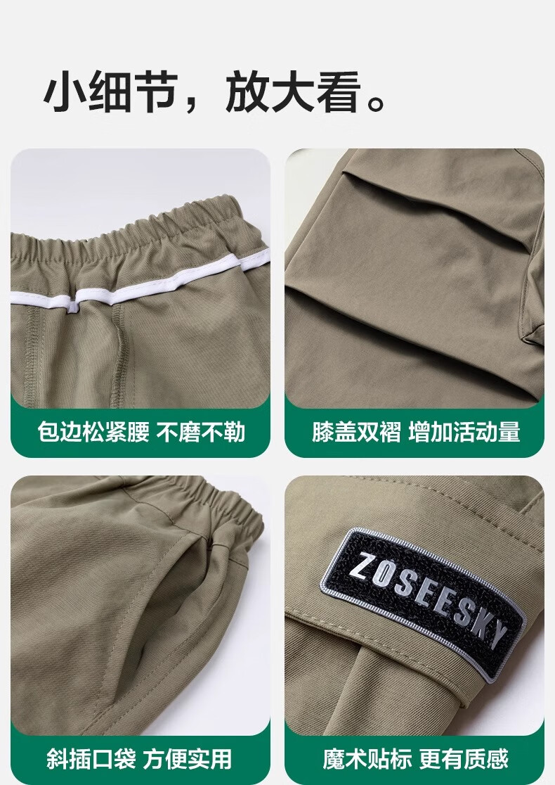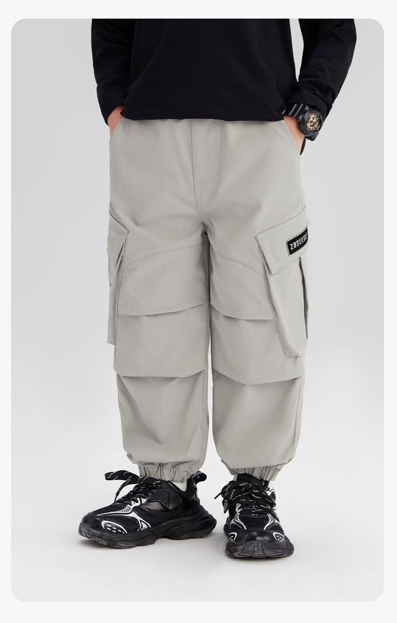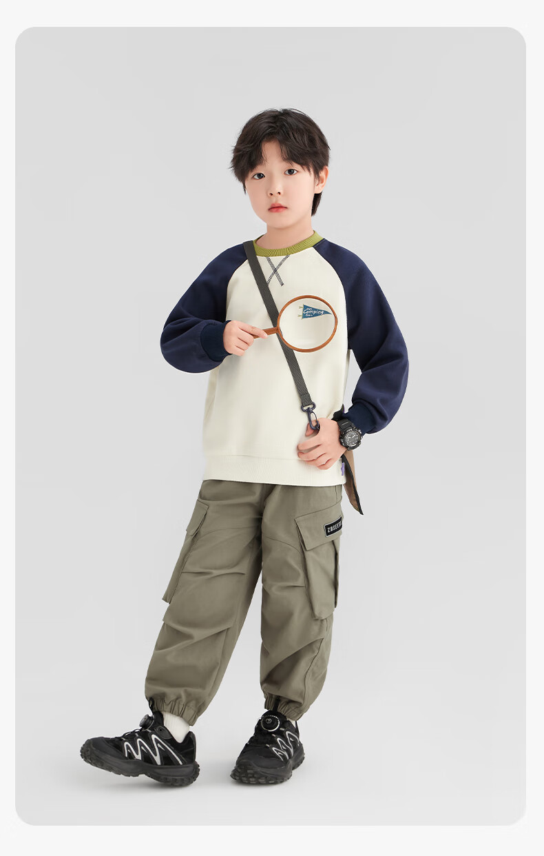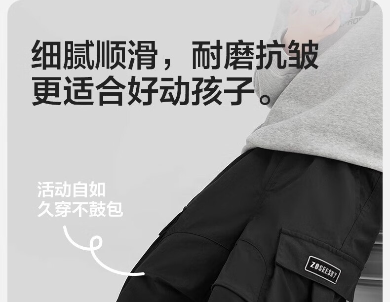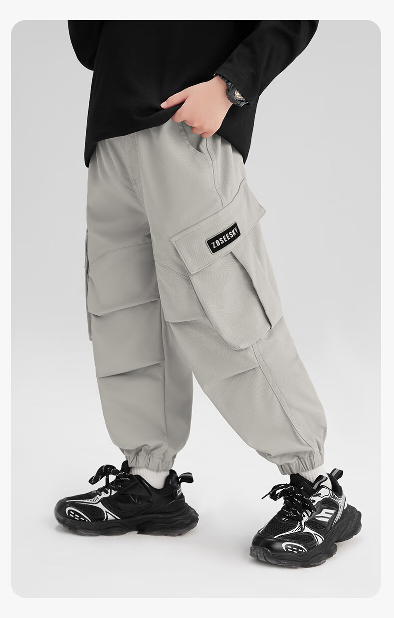 左西男童裤子春装户外耐磨工装裤2026新款儿童春秋款长裤 卡其色 150