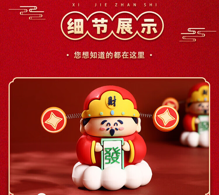 小财神爷新年小礼物桌面招财装饰品办公室汽车车载摆件批发 幸运小财神摆件【不摇头】 无规格