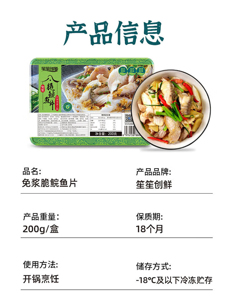 笙笙创鲜中山脆鲩鱼片600g免浆水煮鱼露营烧烤火锅生鲜预制菜半成品