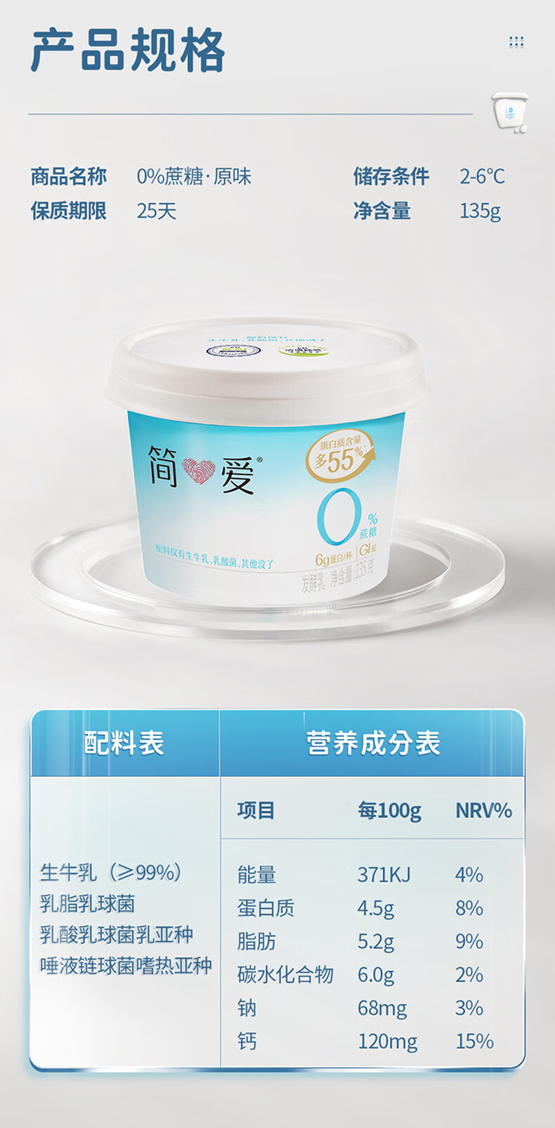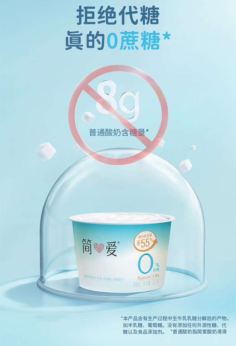 简爱X PLUS会员联名款 0%蔗糖无代糖低温酸奶135g*9杯 源头直发