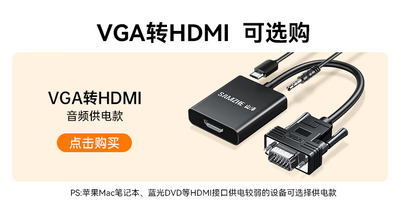 山泽 HDMI转VGA线 高清视频转换器 投屏转接头 电脑笔记本盒子连投影仪电视显示器视频线1米 SHV10