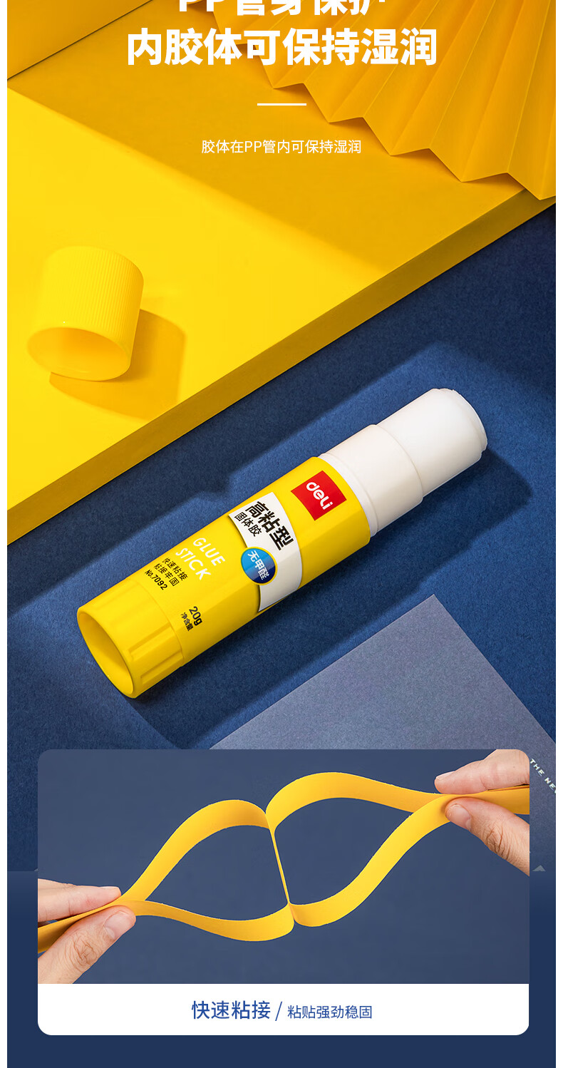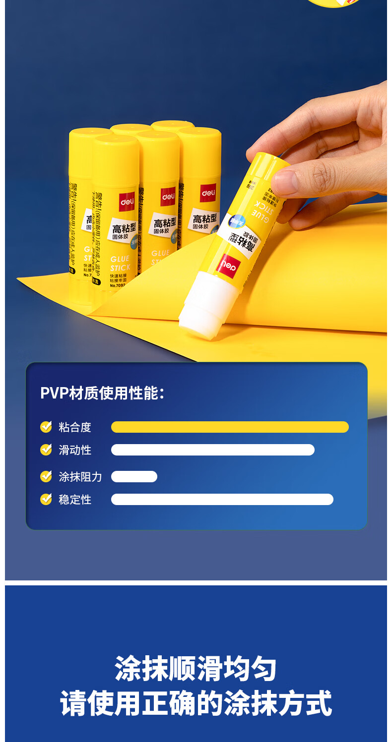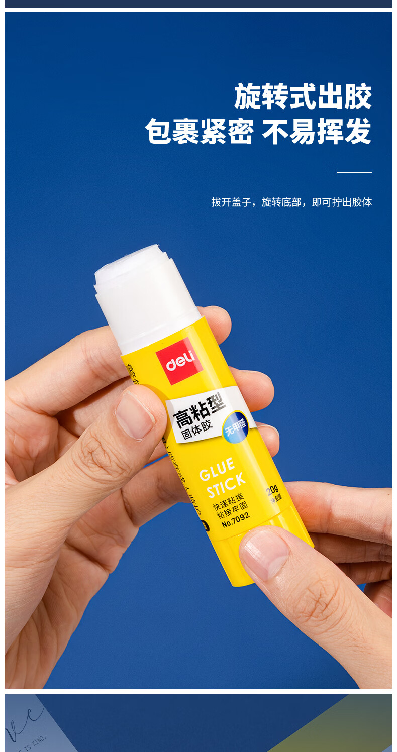得力【超级爆款】20g高粘度PVP固体胶水 无甲醛快干耐用胶棒 强力粘接 学生文具 6支装 办公用品 6371