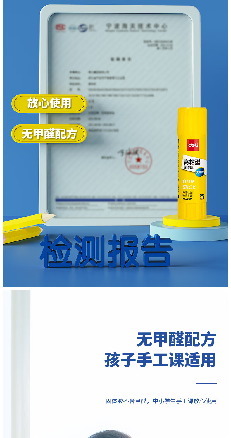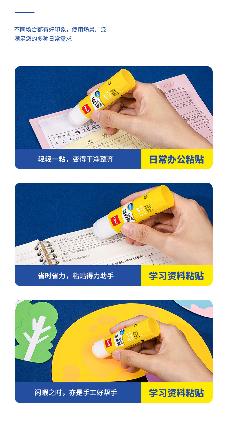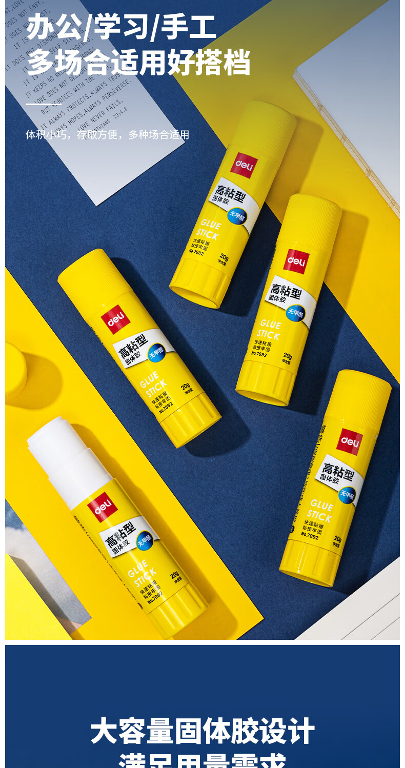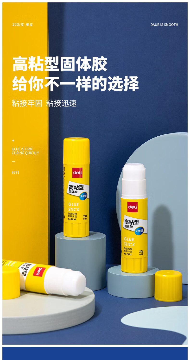 得力【超级爆款】20g高粘度PVP固体胶水 无甲醛快干耐用胶棒 强力粘接 学生文具 6支装 办公用品 6371
