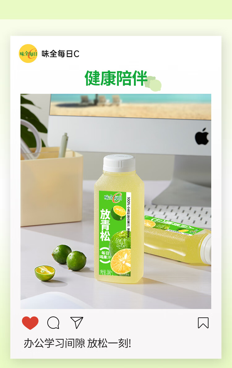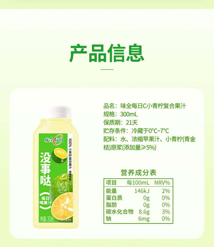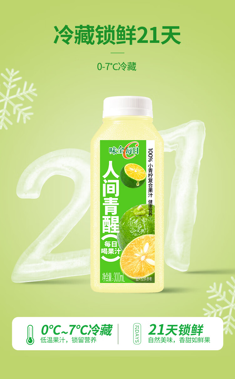 味全每日C果汁饮料暴打小青柠汁300ml*4冷藏组合装