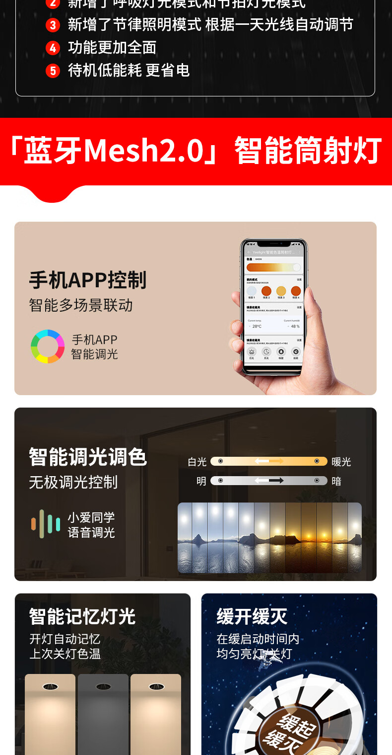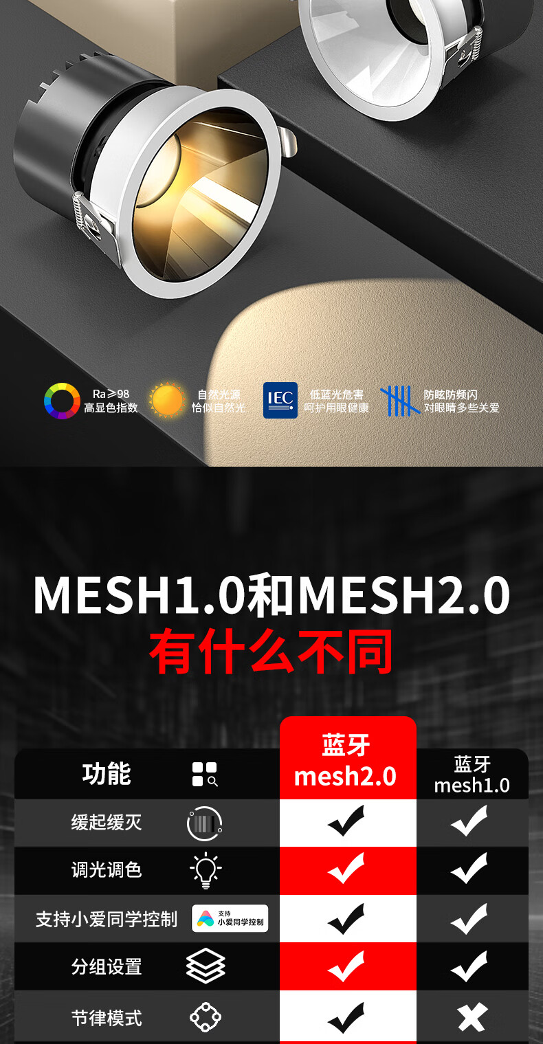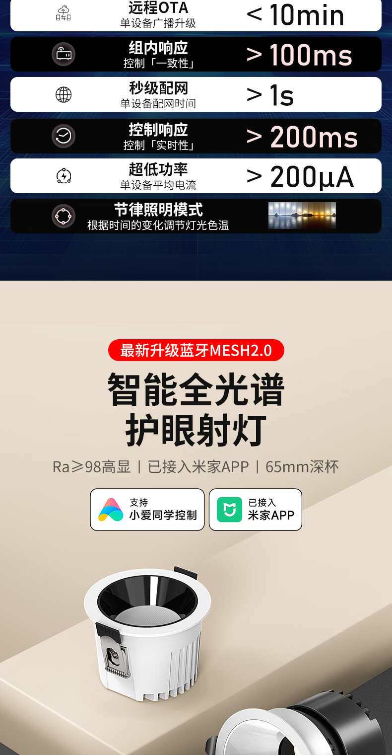 拉伯塔已接入米家APP蓝牙mesh2.0无极调光调色led深防眩小山丘射灯高显 白杯【7W】mesh2.0