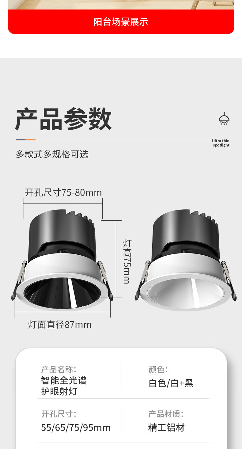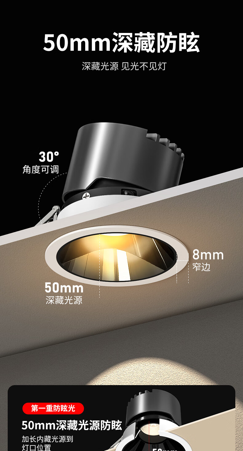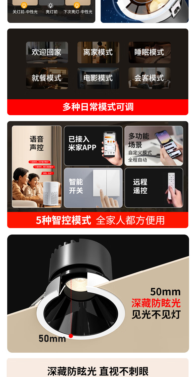 拉伯塔已接入米家APP蓝牙mesh2.0无极调光调色led深防眩小山丘射灯高显 白杯【7W】mesh2.0
