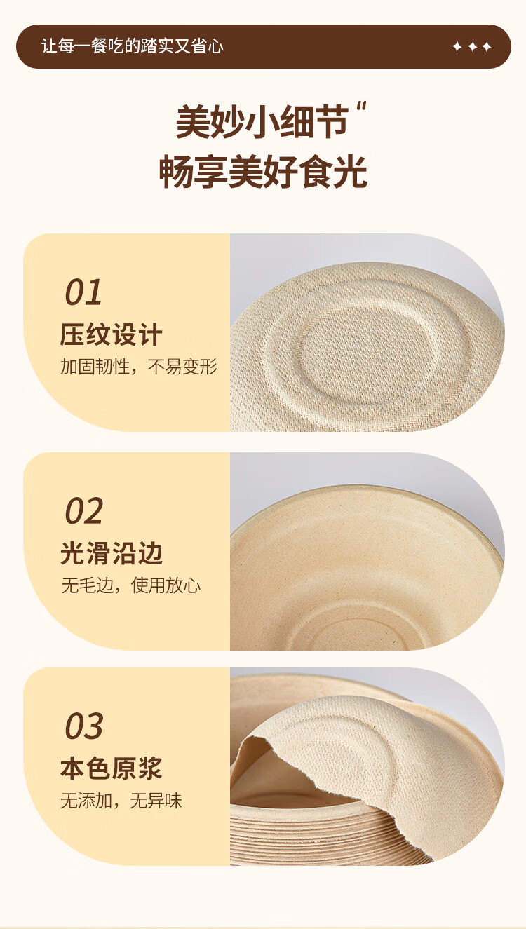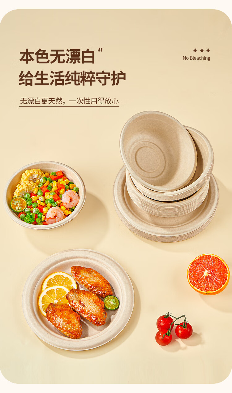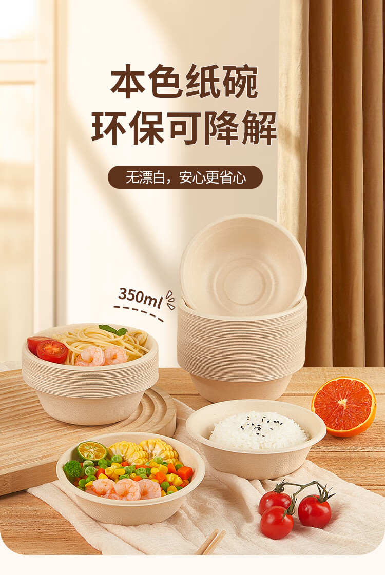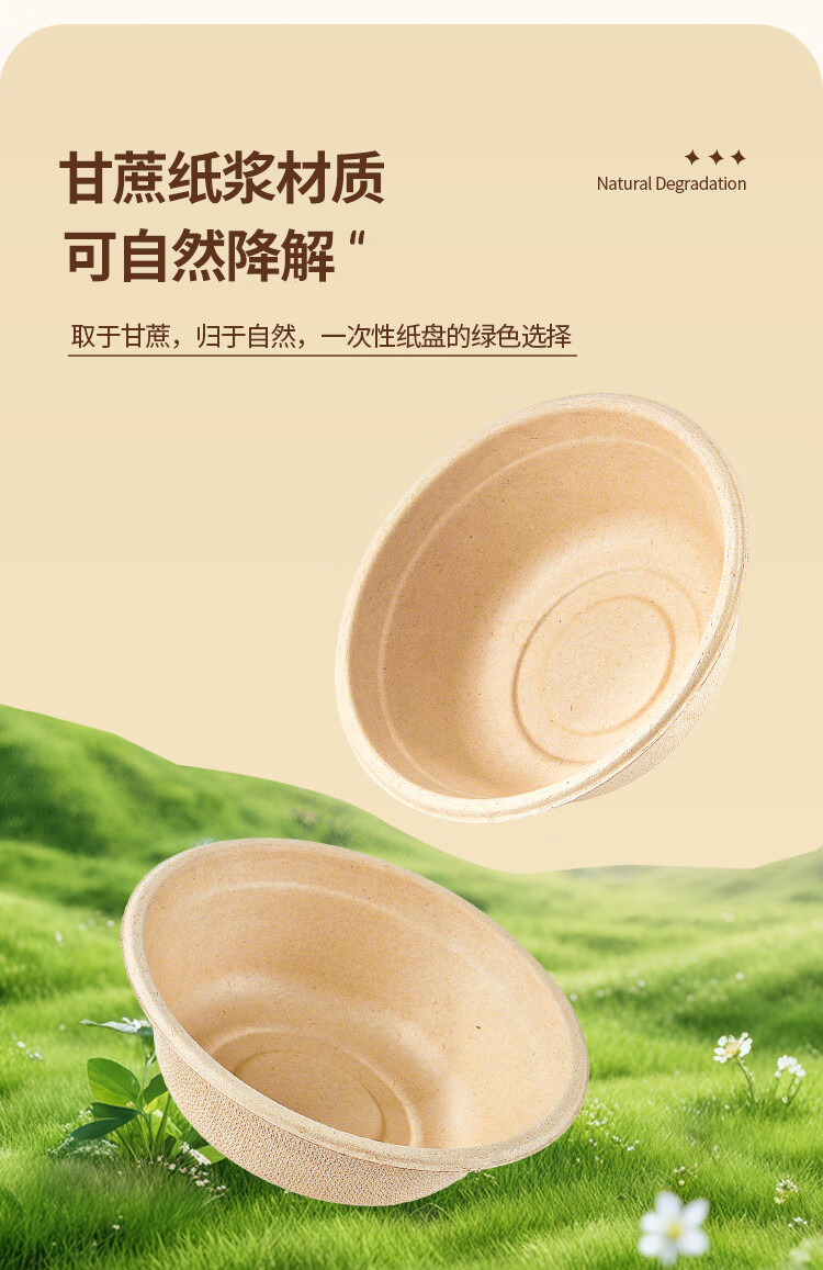 优奥甘蔗浆纸盘纸碗一次性餐具防水防油本色可降解纸碗350ml*50只装