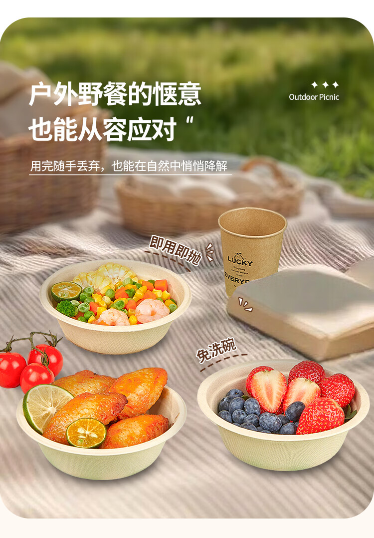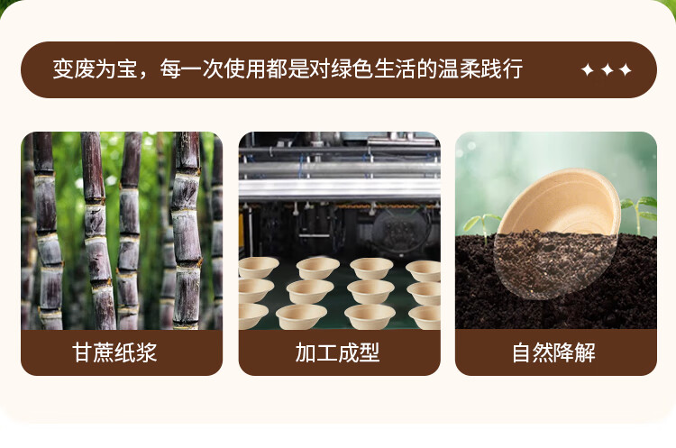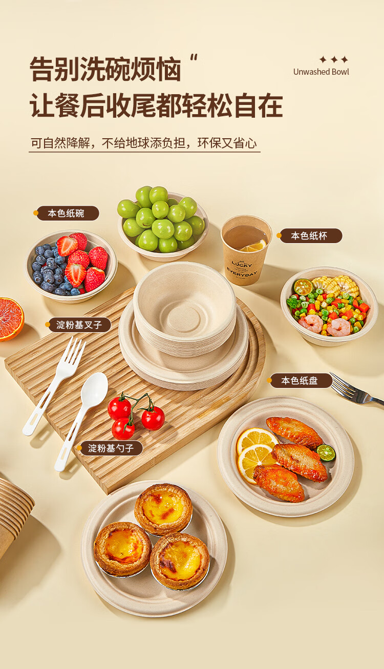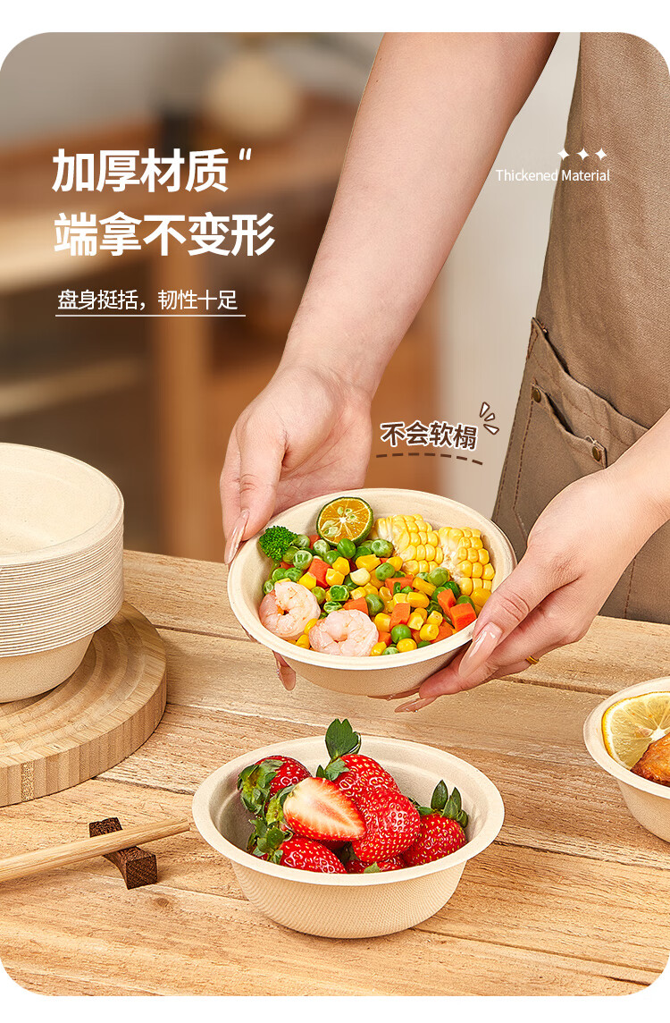 优奥甘蔗浆纸盘纸碗一次性餐具防水防油本色可降解纸碗350ml*50只装