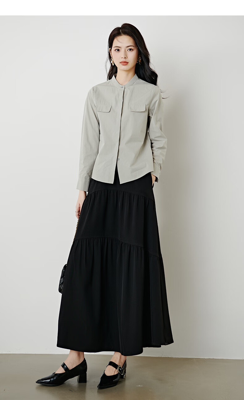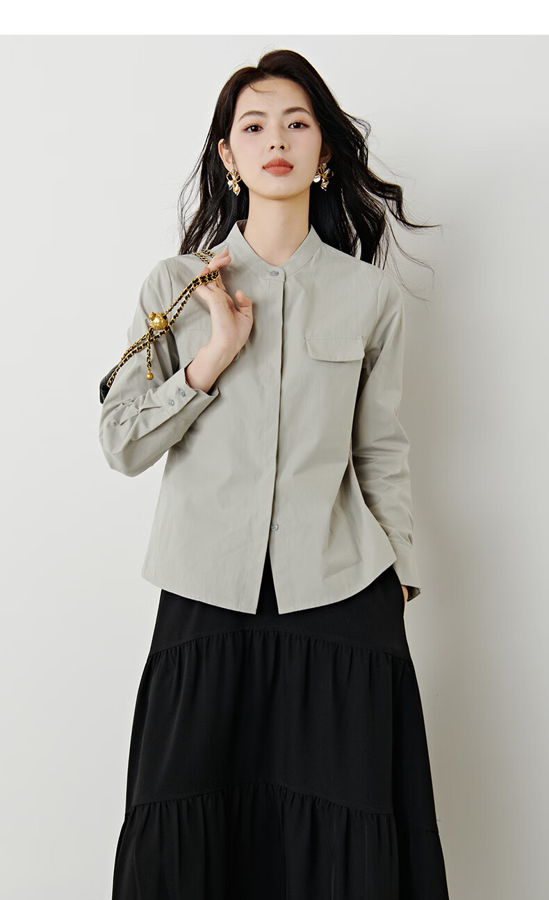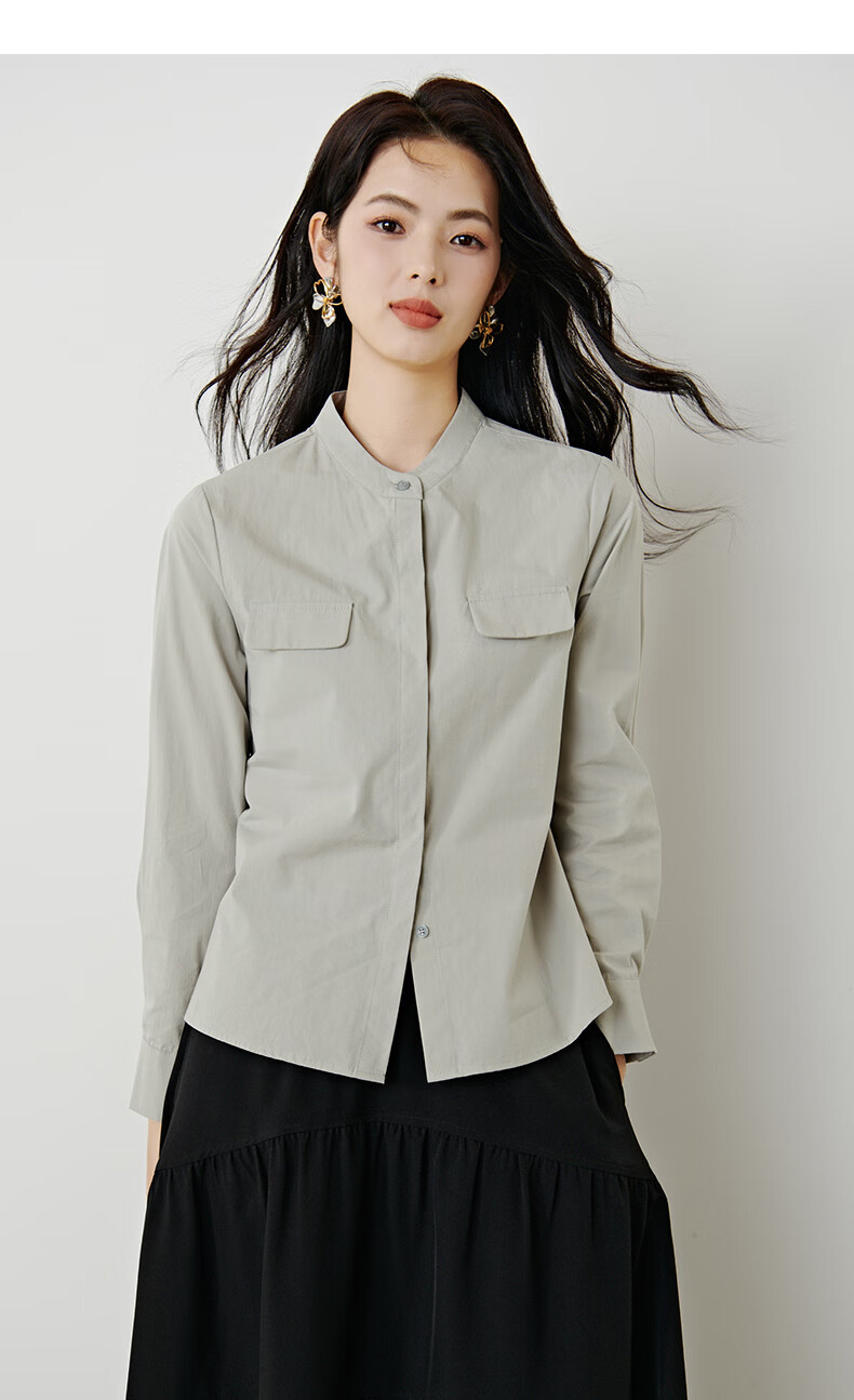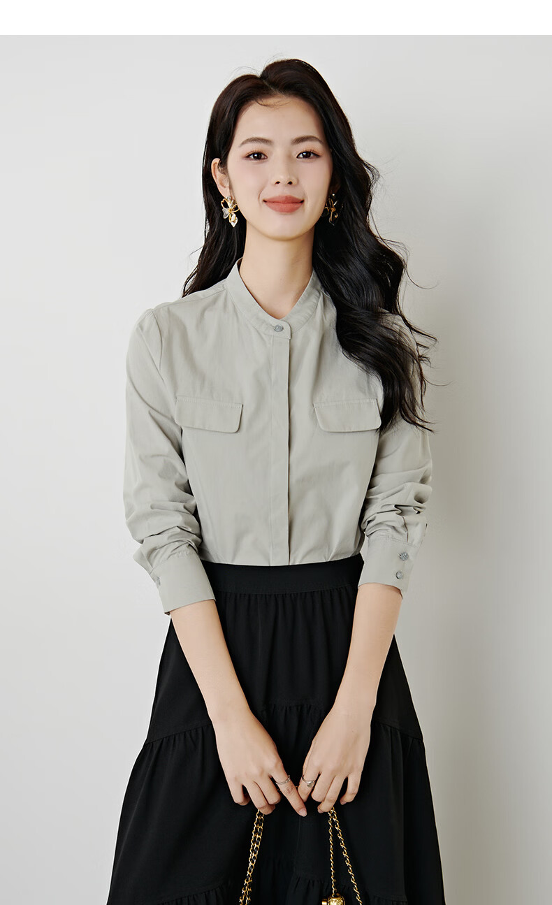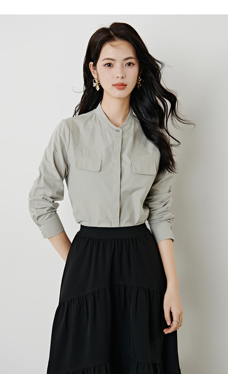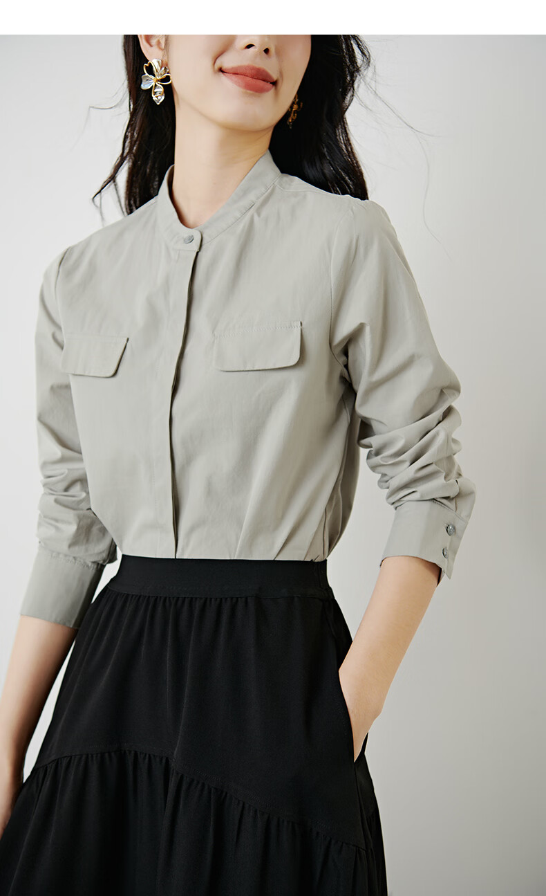 晚白【新品】100%纯棉经典格雷灰衬衫女2026年春款舒适通勤百搭衬衣 灰色 M