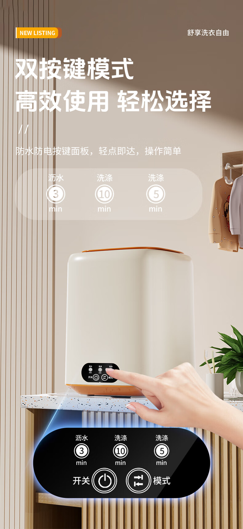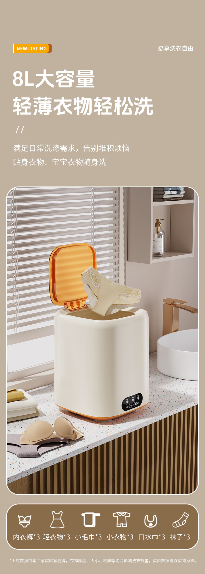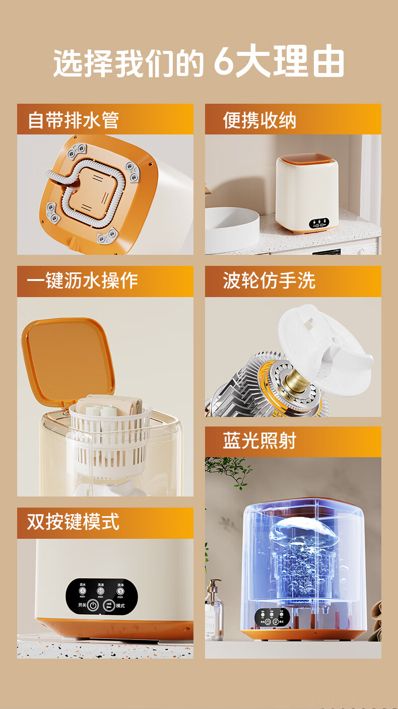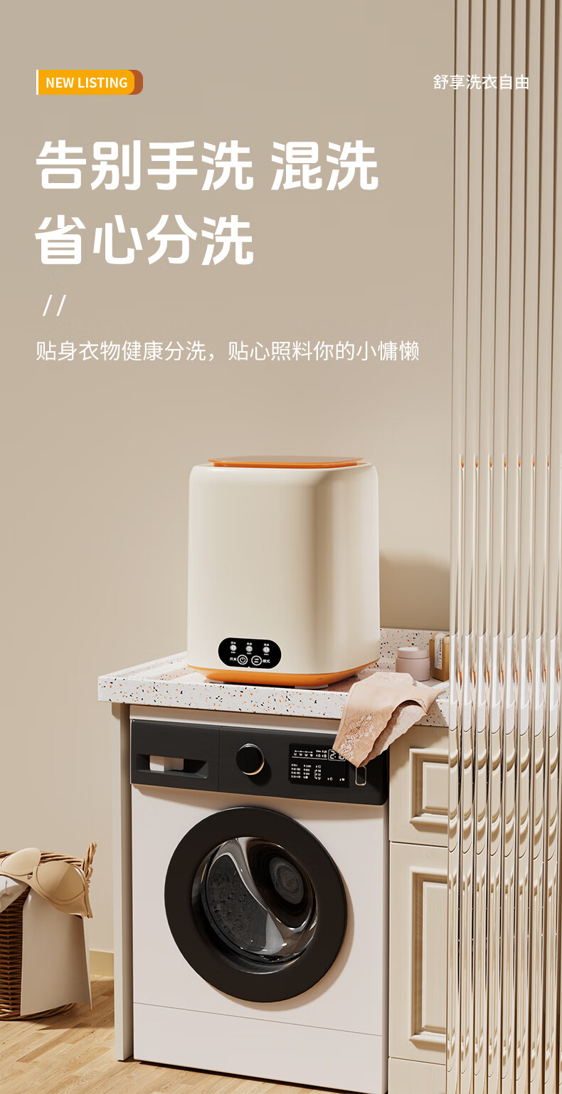 万家能内衣洗衣机小型迷你内裤洗衣机洗衣杯洗脱一体洗袜子机器半全自动内衣裤洗衣机洗袜机家用婴儿宿舍 【标准款】薄荷绿|低音洗涤+银离子+8L超大容量