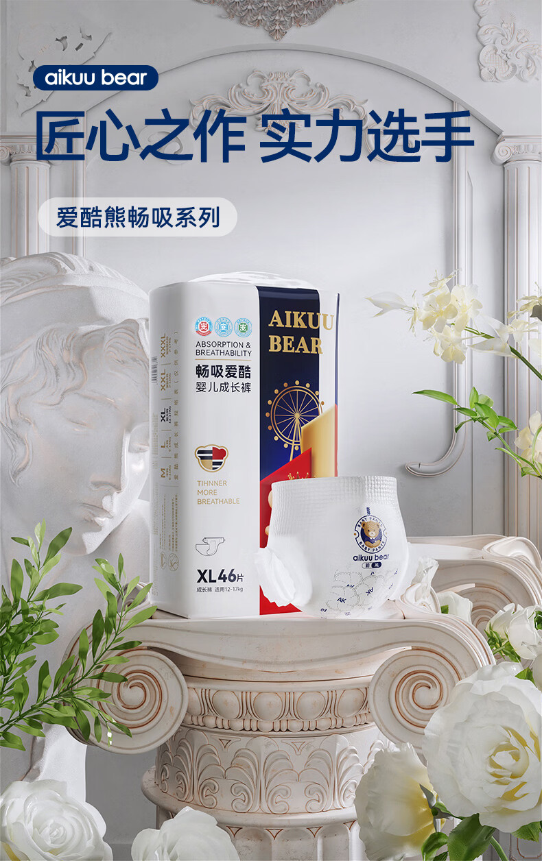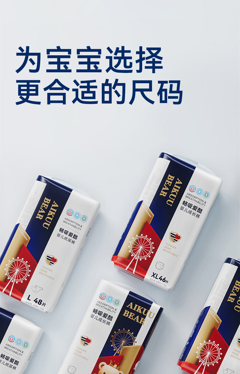 爱酷熊(AIKUUBEAR)畅吸纸尿裤XL92片尿不湿婴童加大码超薄大吸量男女通用国货精选