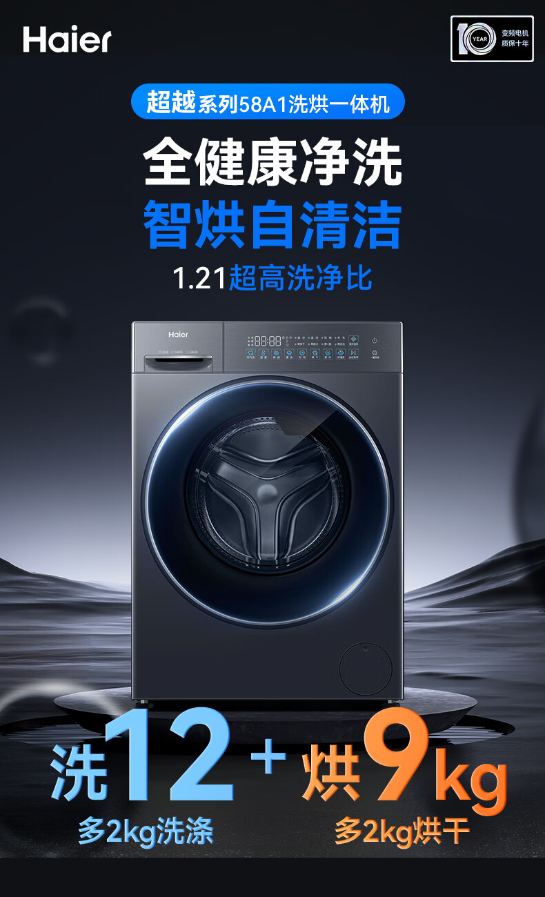 海尔(Haier)滚筒洗衣机超越4.0洗烘一体机10/12公斤全自动家用带烘干国家补贴20%婴儿洗衣机一级能效以旧换新 洗烘一体【烘干即穿|内衣洗|手搓洗】25款 滚筒 咨询客服更优惠