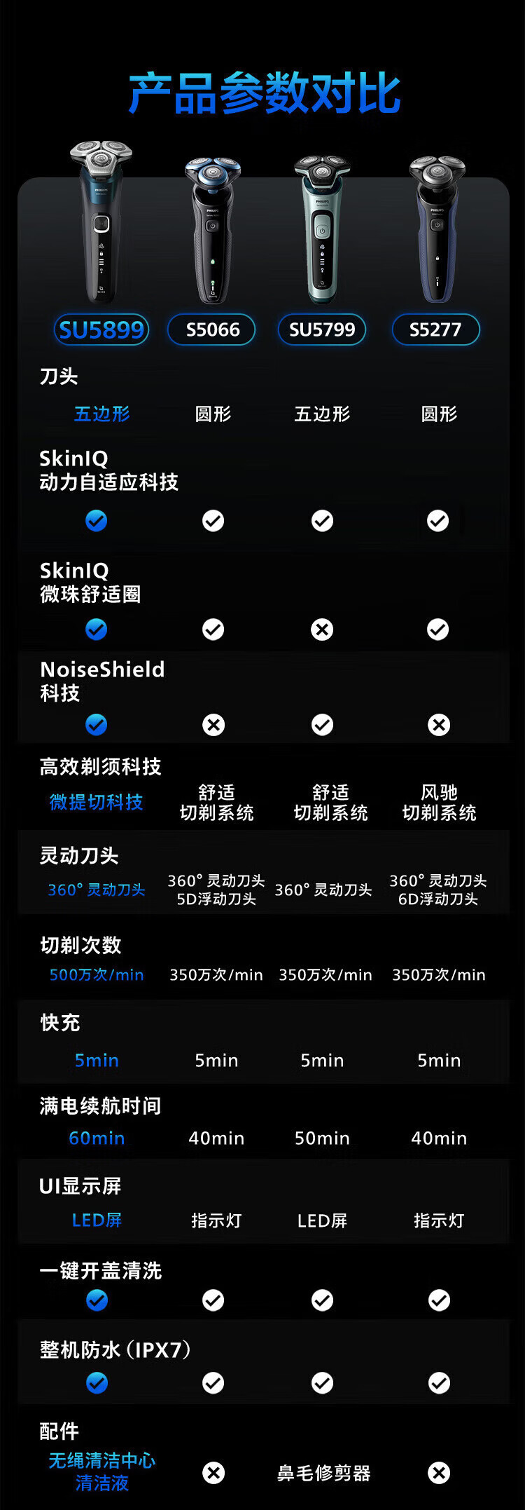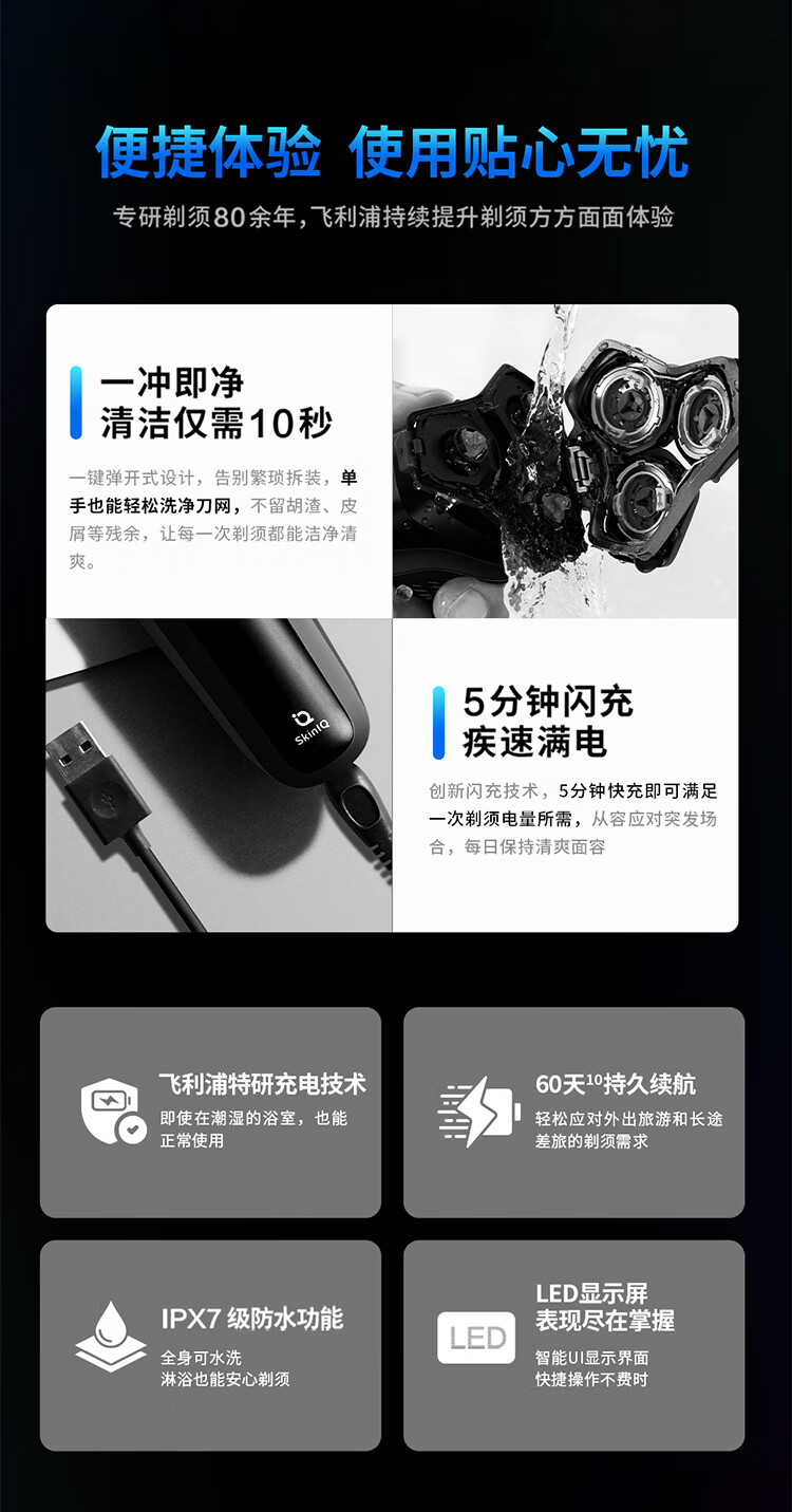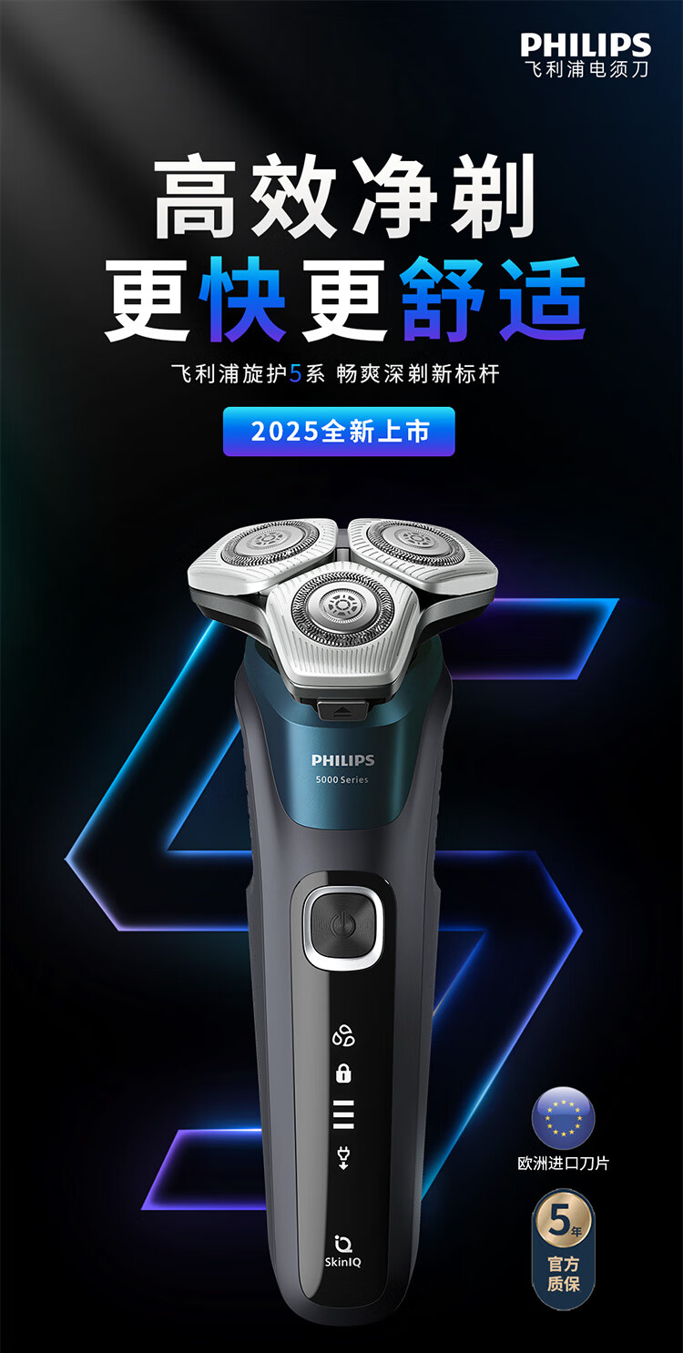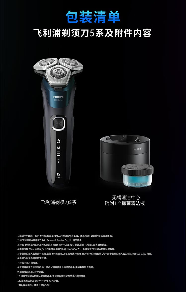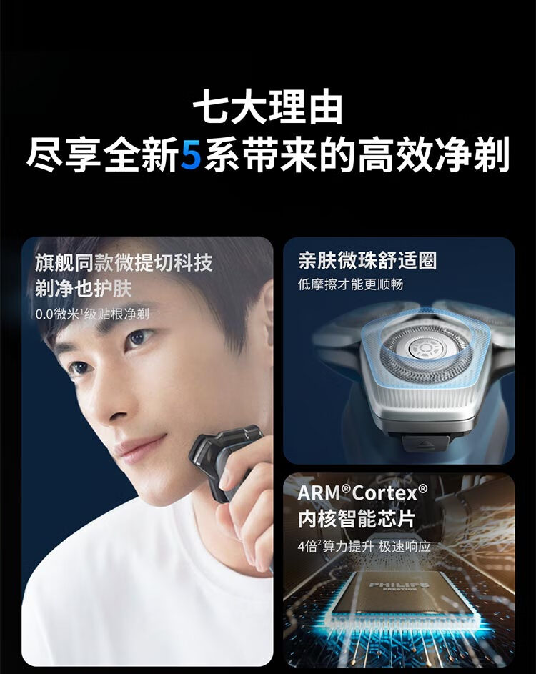 飞利浦(PHILIPS)电动剃须刀旋护新5系Pro旗舰同款微提切科技高端刮胡刀升级清洁仓 中秋礼物 生日礼物 5831升级款