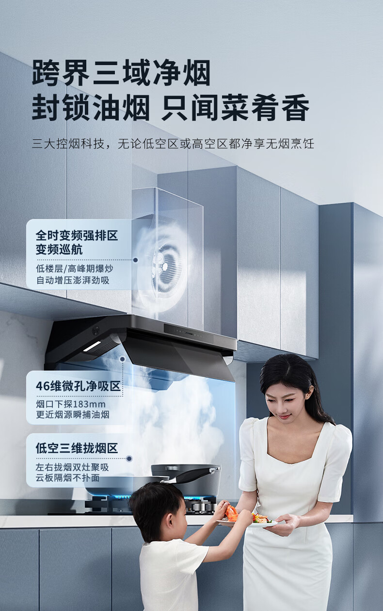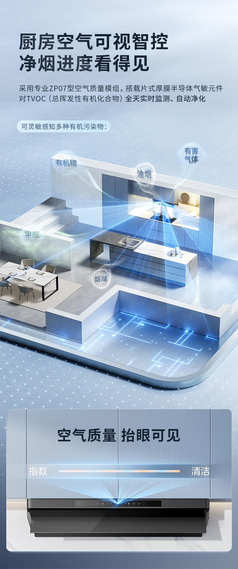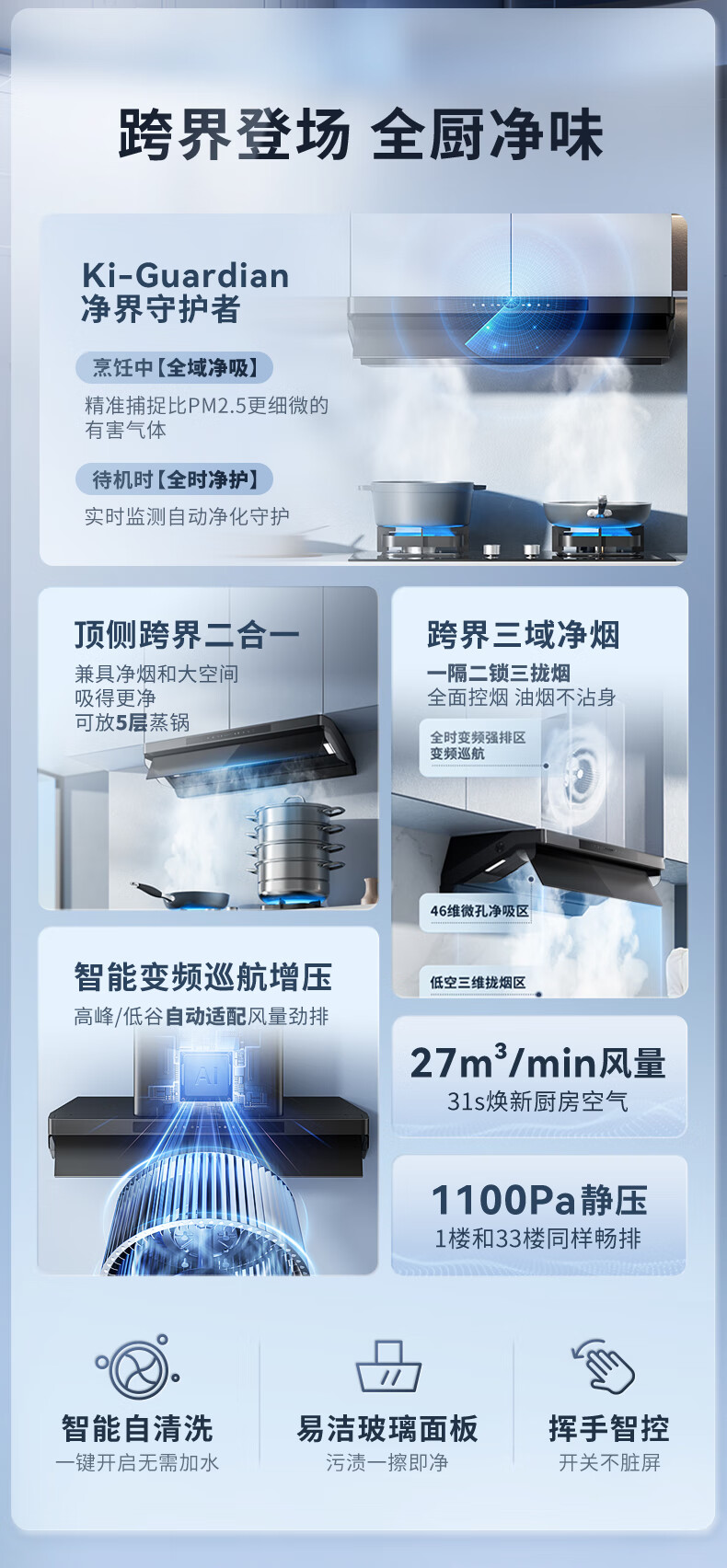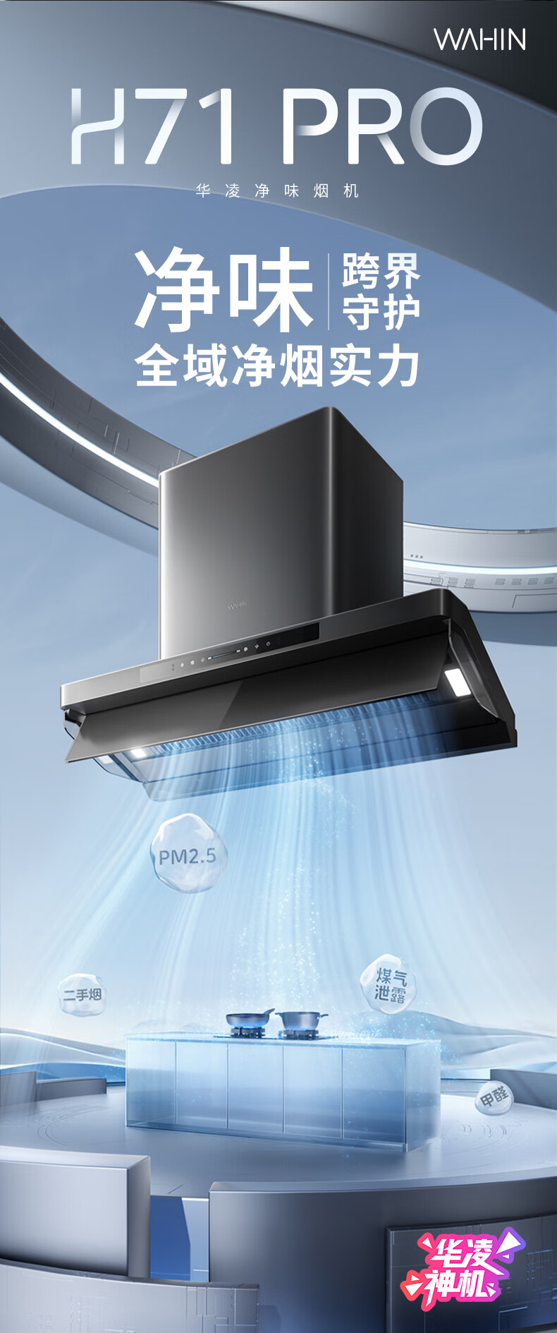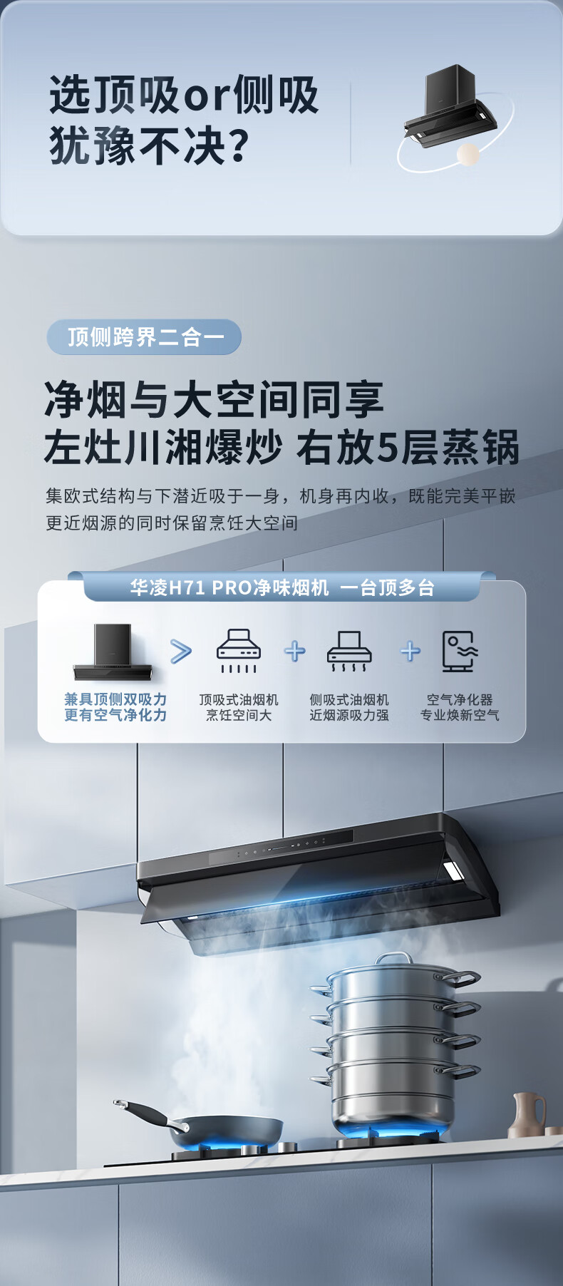 华凌【净味油烟机H71PRO】神机顶侧一体抽油烟机27风量自清洁厨房家用超薄近吸智能变频强排烟美的出品 【监测厨房空气 H71Pro单烟机】 变频增压巡航