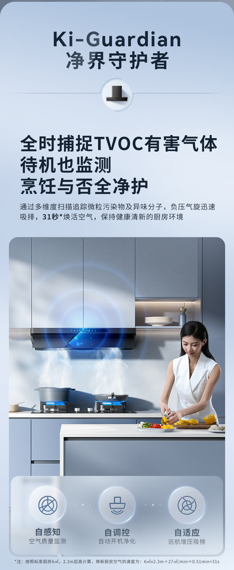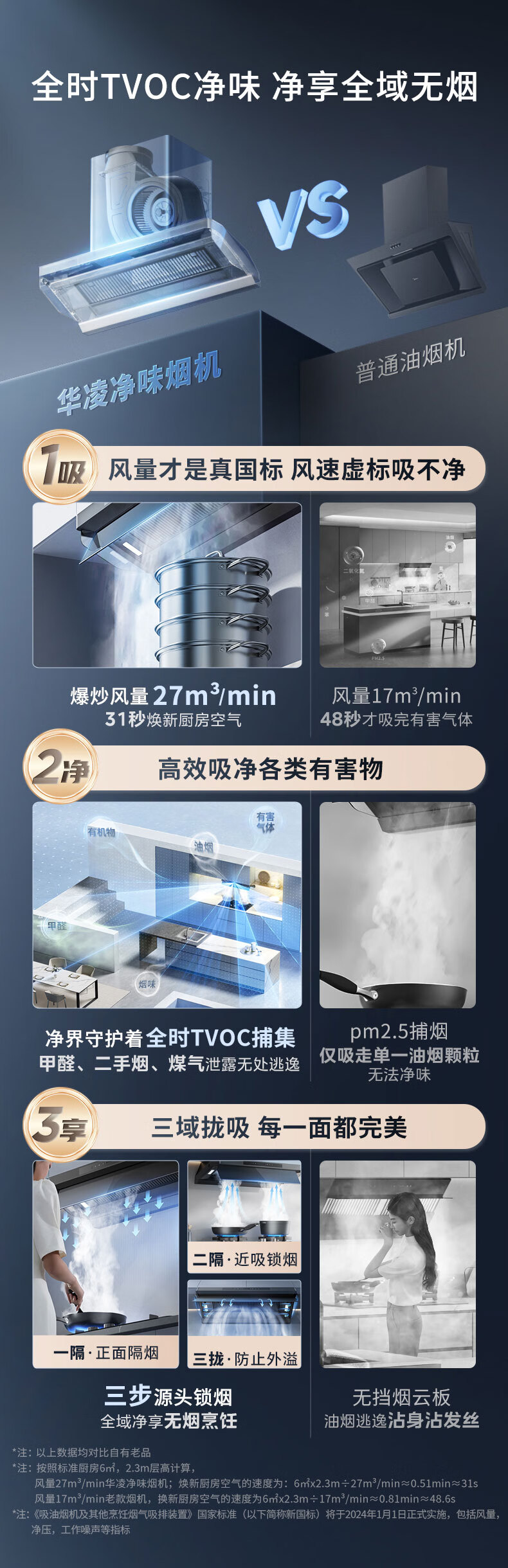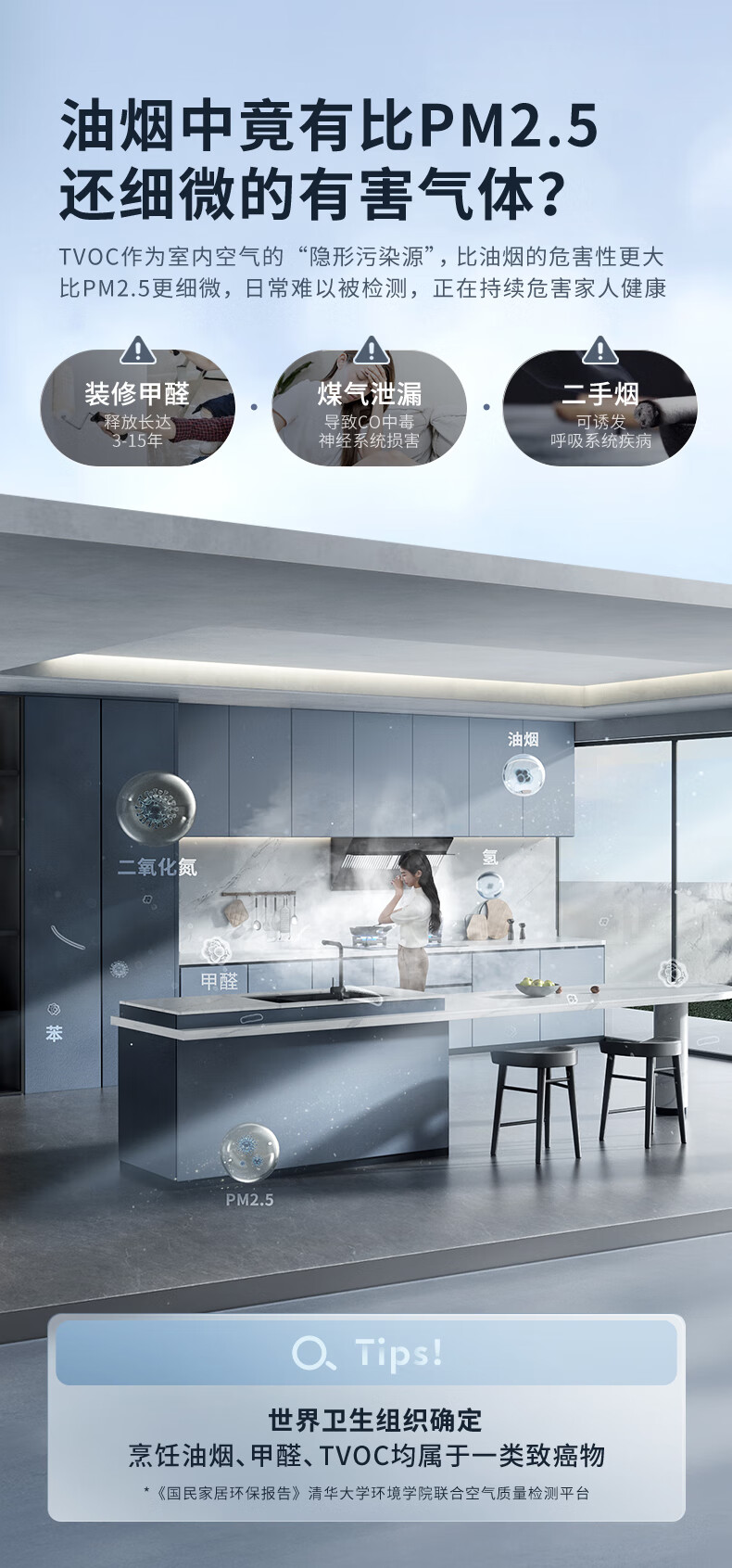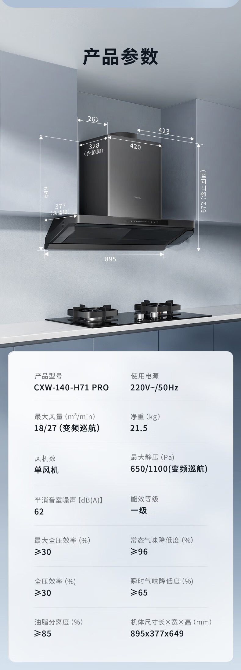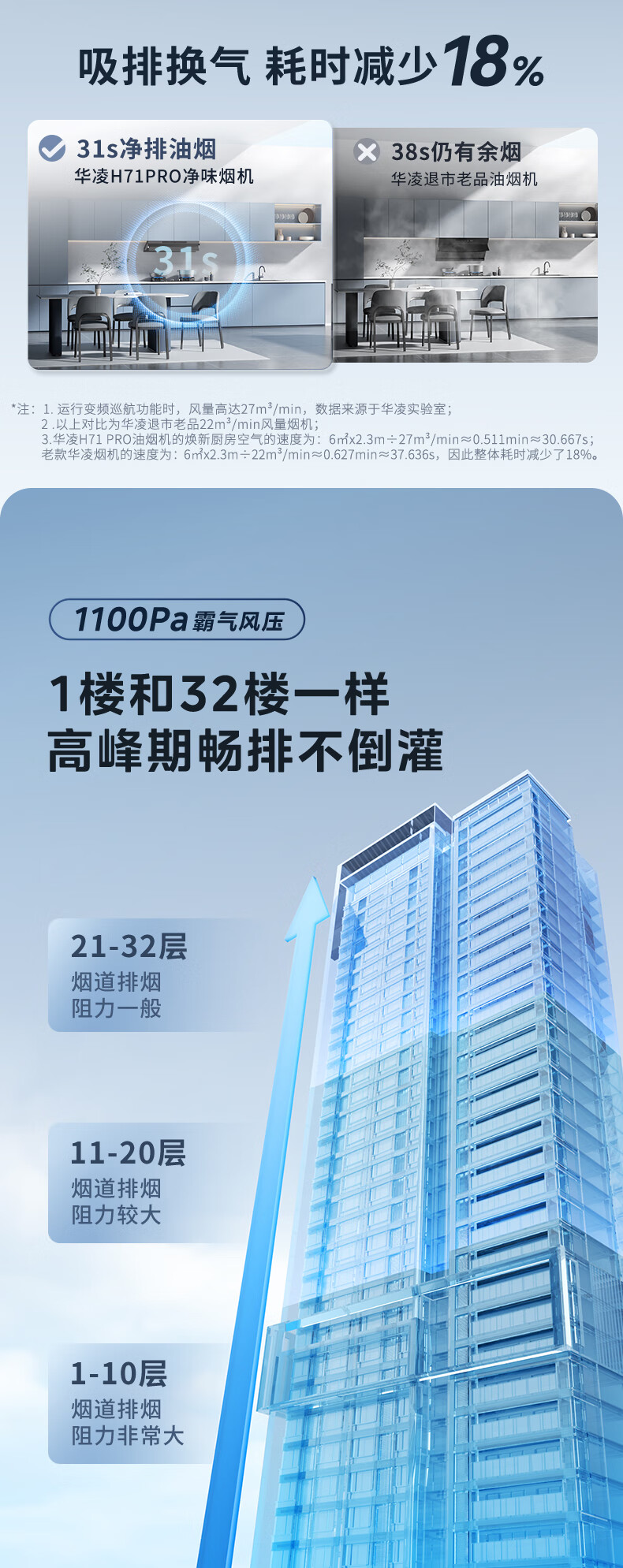 华凌【净味油烟机H71PRO】神机顶侧一体抽油烟机27风量自清洁厨房家用超薄近吸智能变频强排烟美的出品 【监测厨房空气 H71Pro单烟机】 变频增压巡航