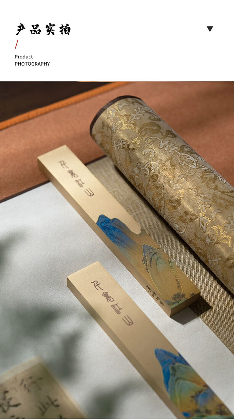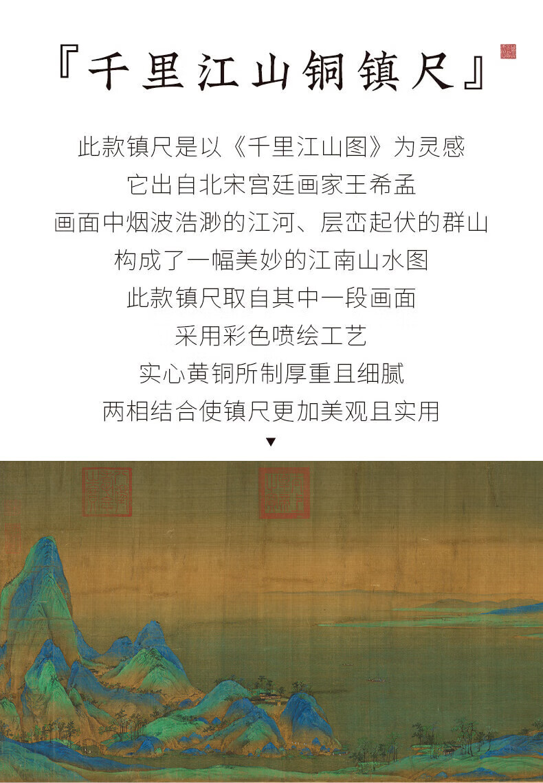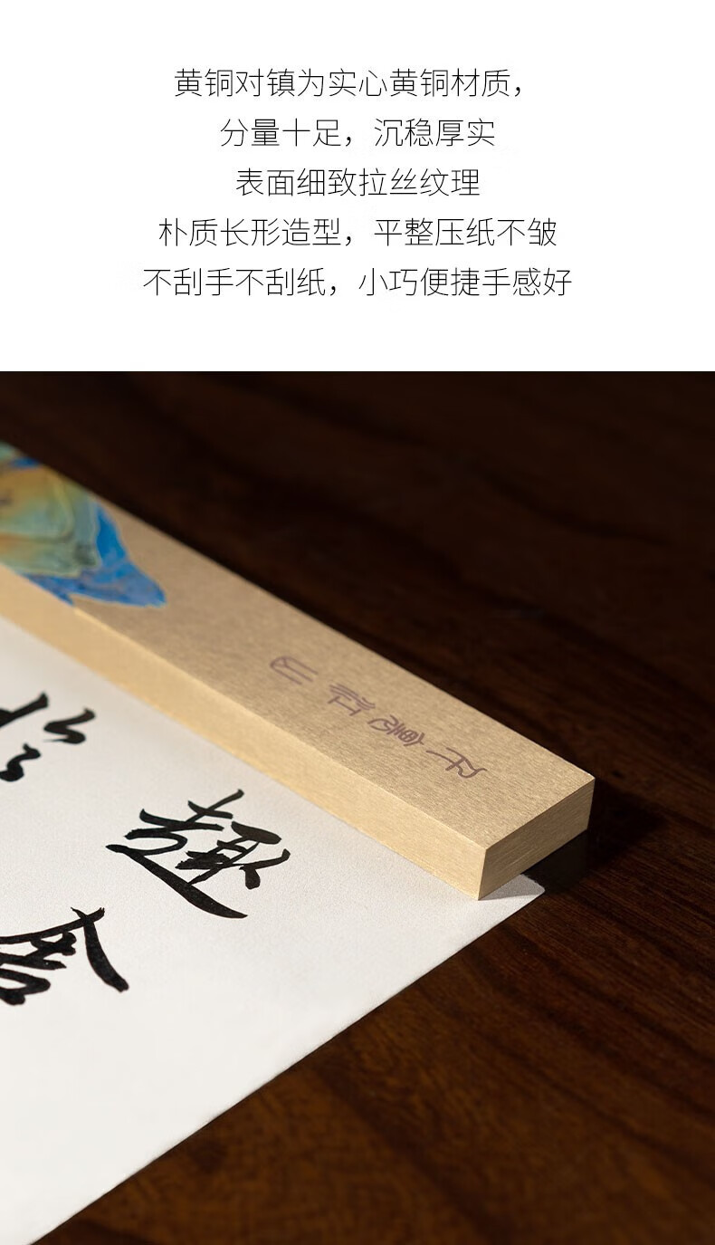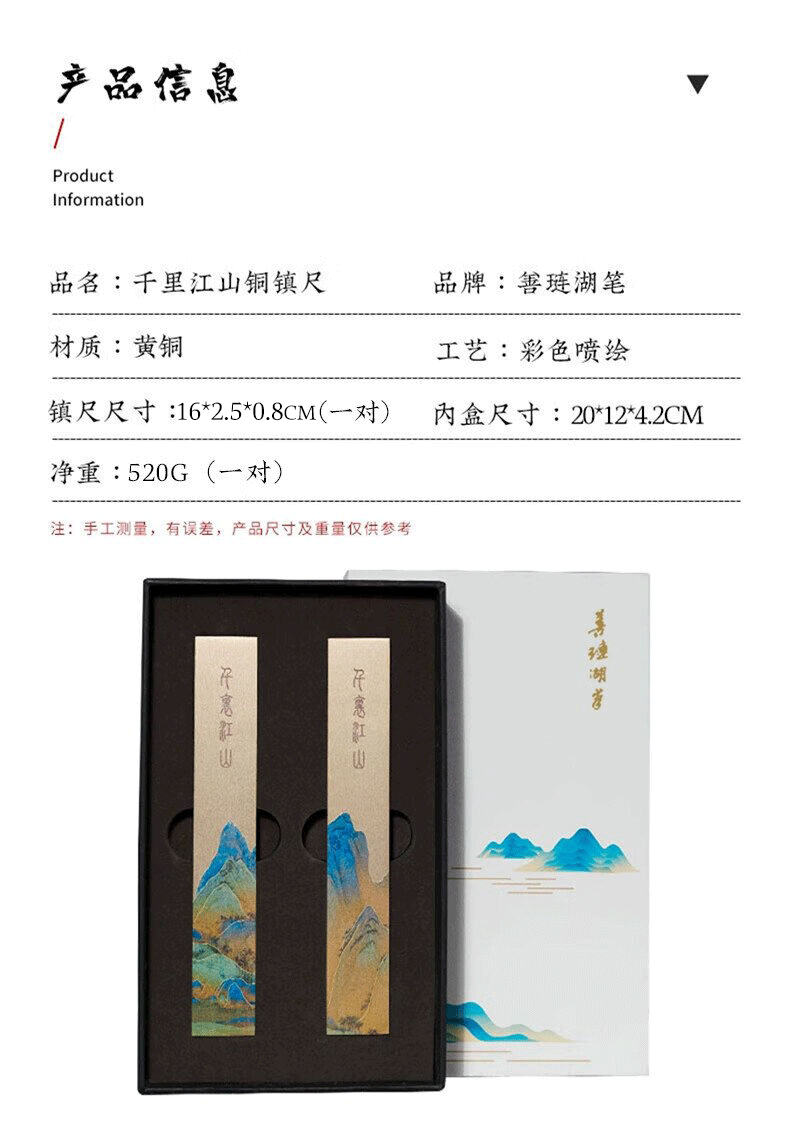 善琏湖笔千里江山镇尺 镇尺书法镇纸黄铜千里江山图铜器金属摆件文房四宝创意笔架书画压纸神器精美送礼