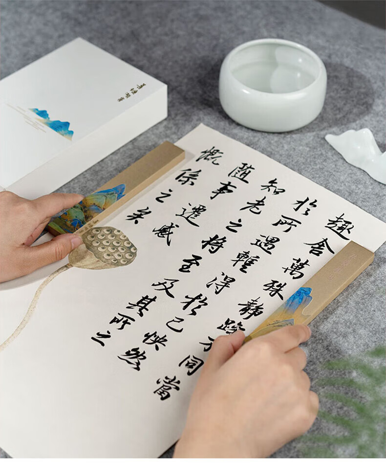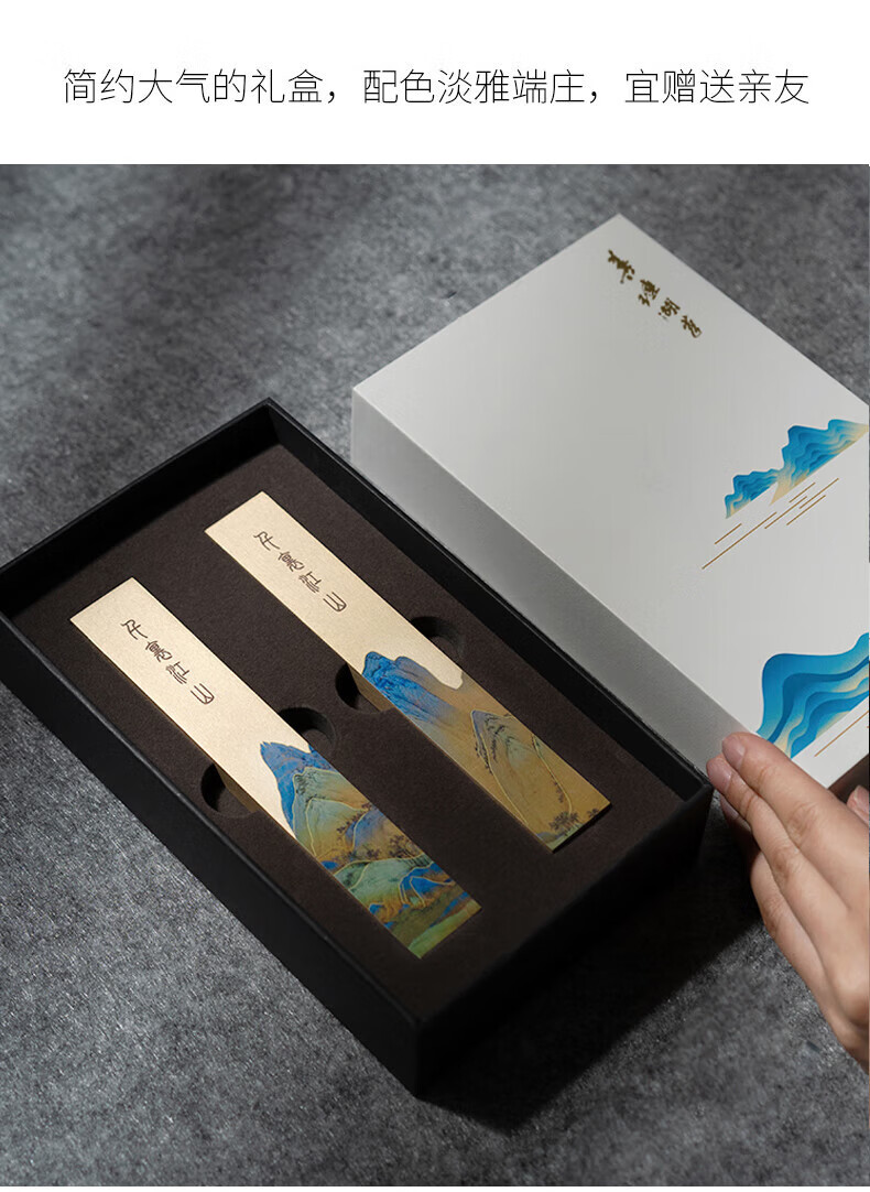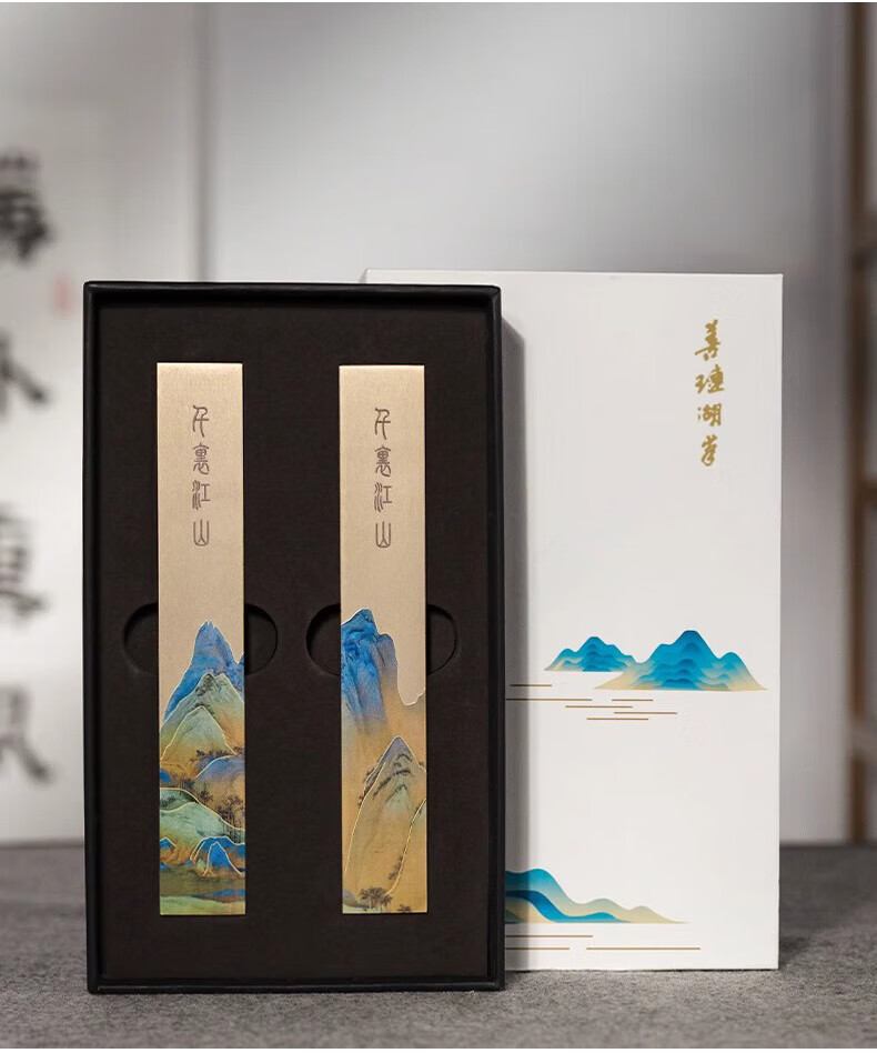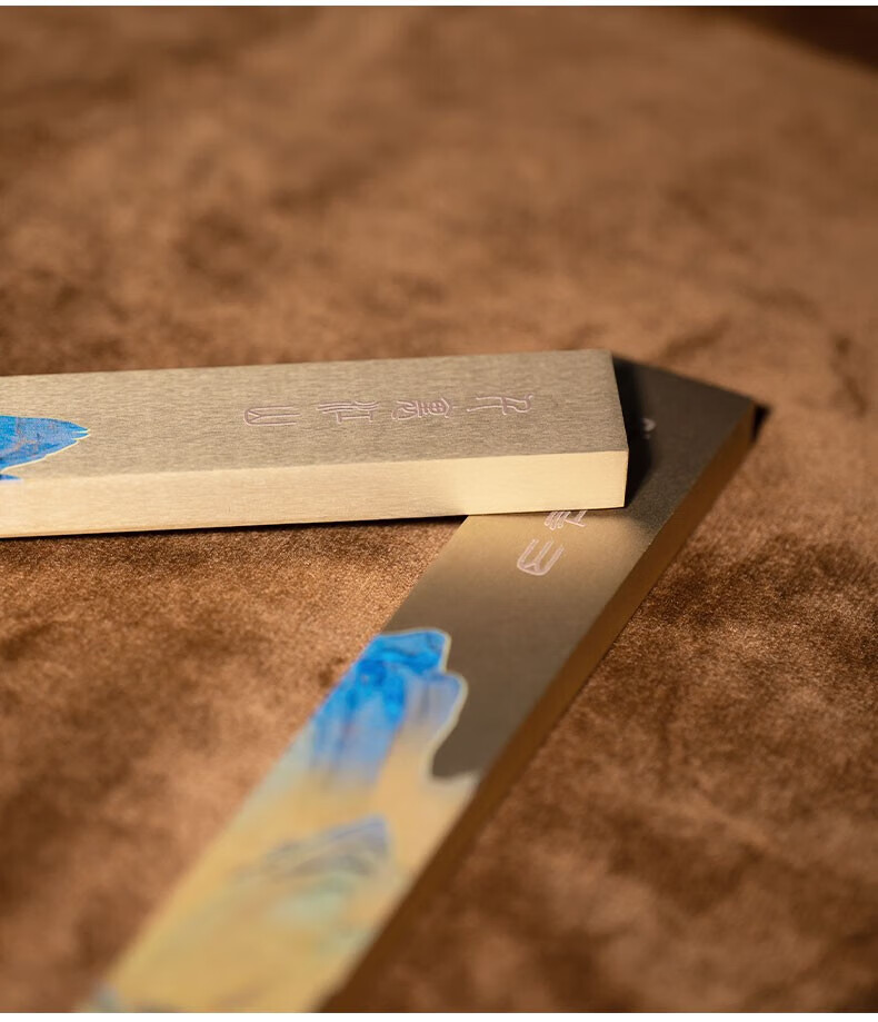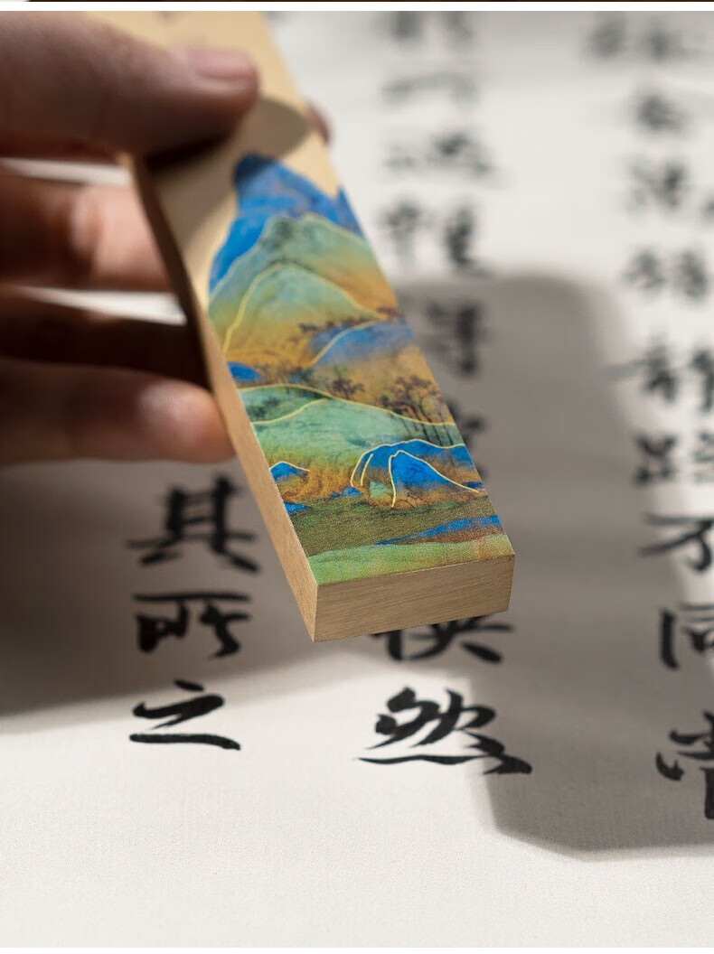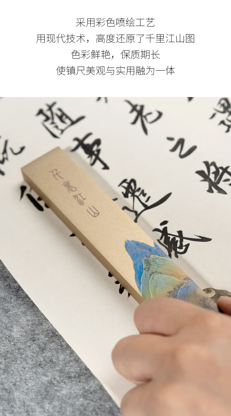 善琏湖笔千里江山镇尺 镇尺书法镇纸黄铜千里江山图铜器金属摆件文房四宝创意笔架书画压纸神器精美送礼