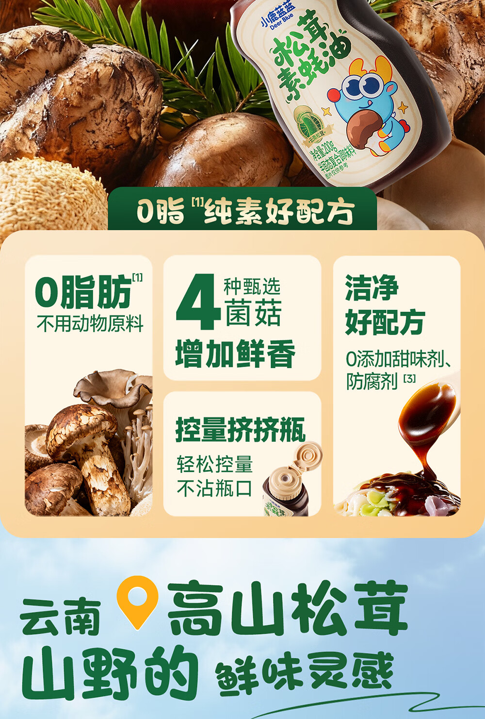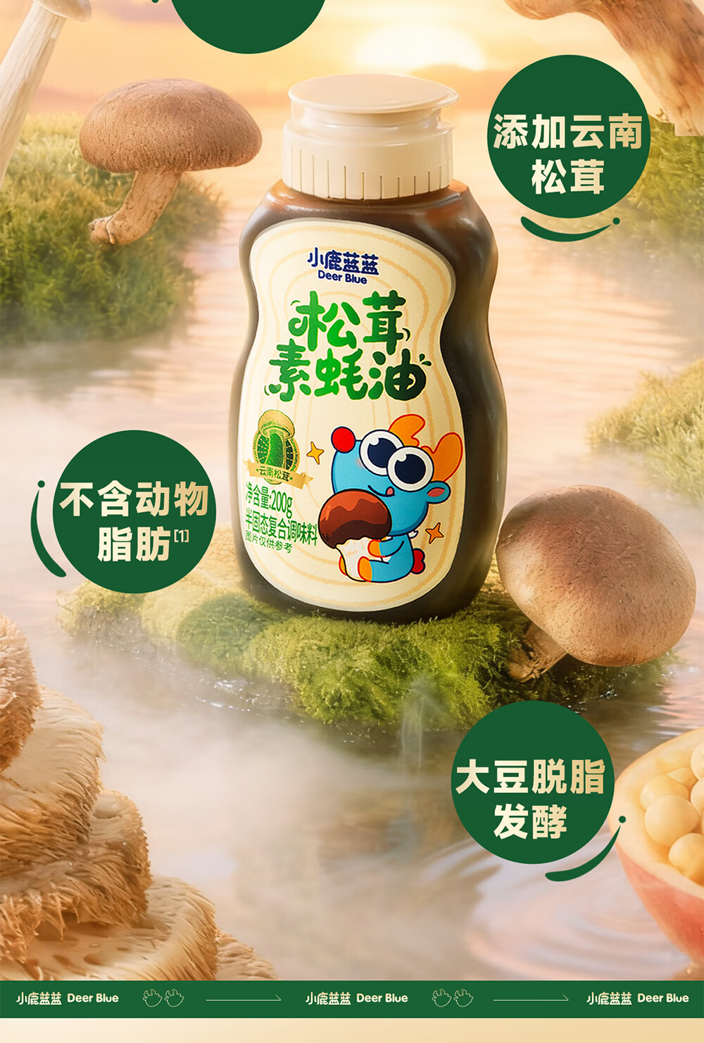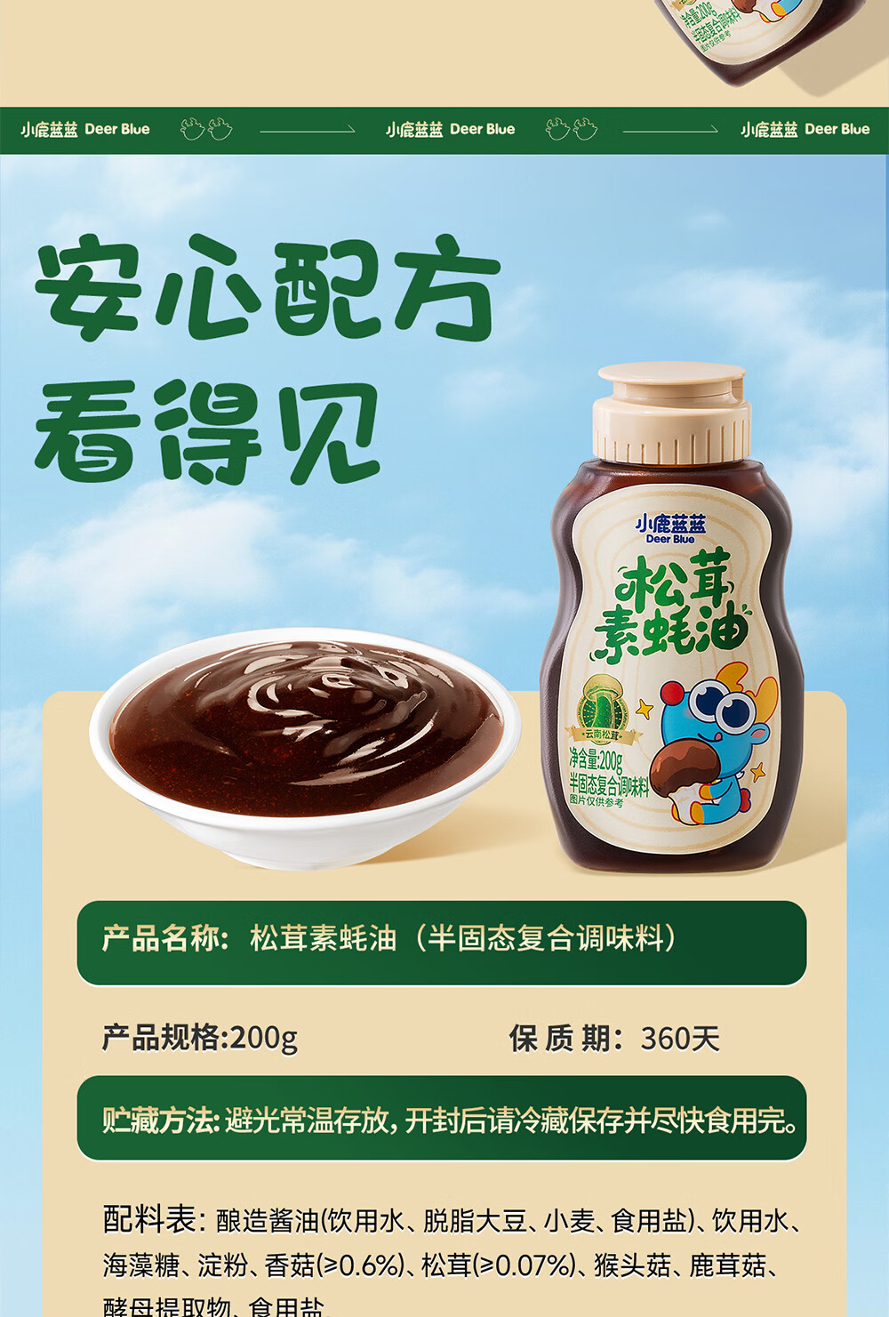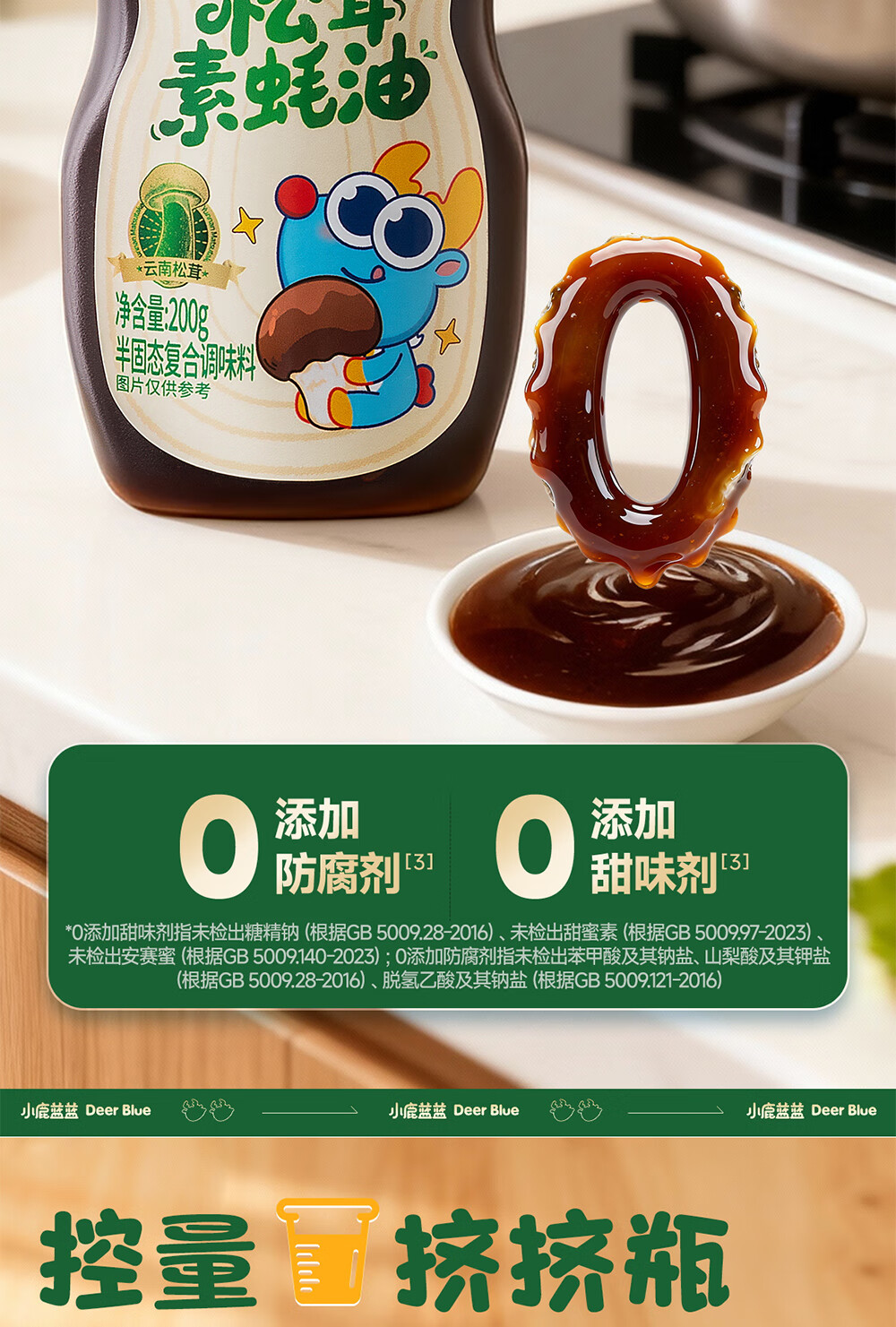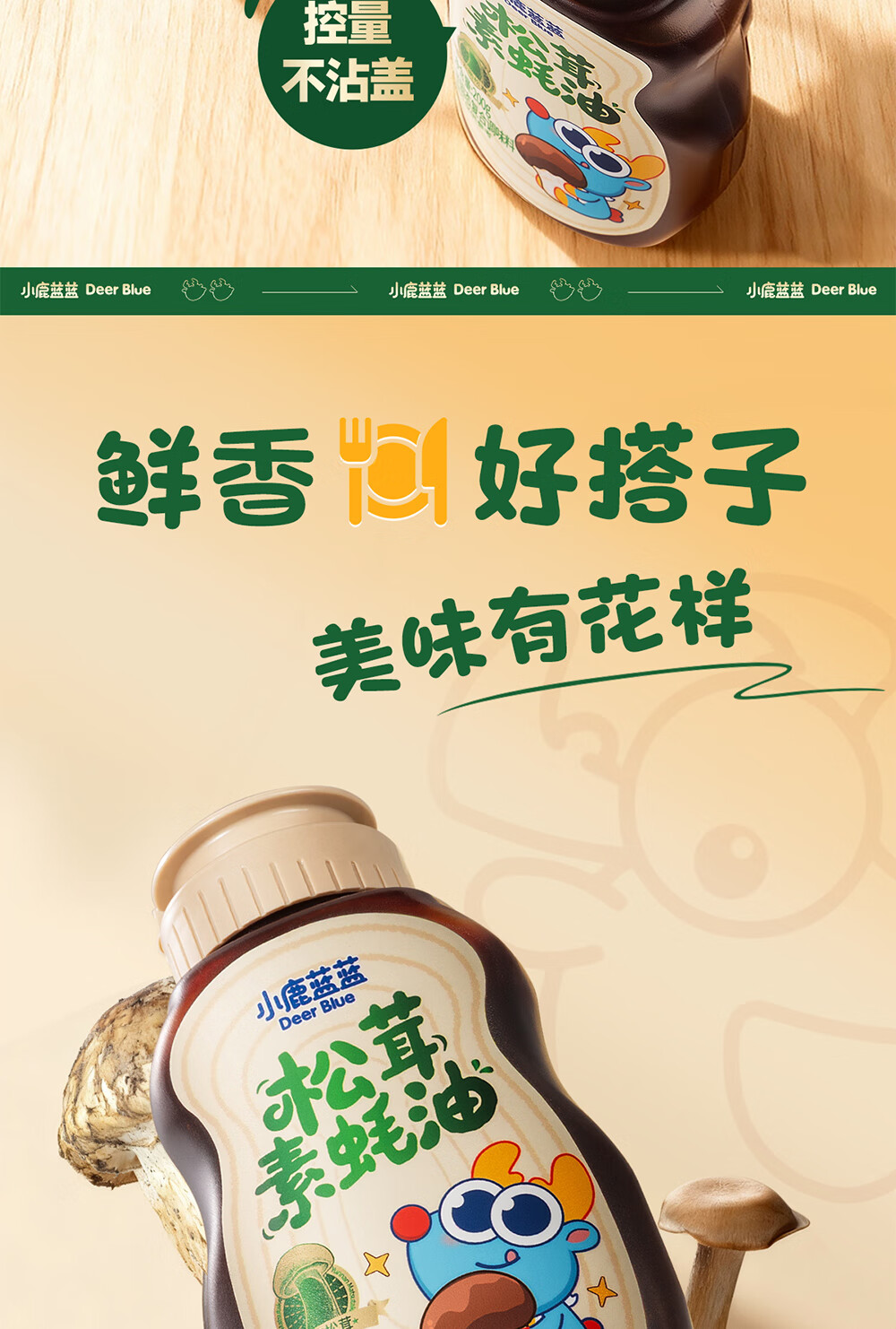 小鹿蓝蓝松茸素蚝油宝宝蚝油儿童蚝油小炒凉拌提鲜调味料挤挤装蚝油200g