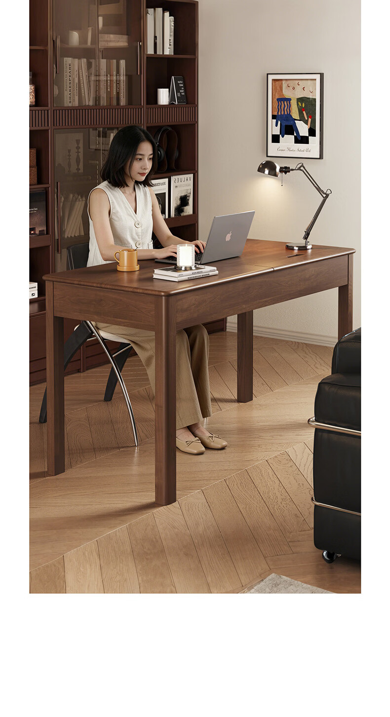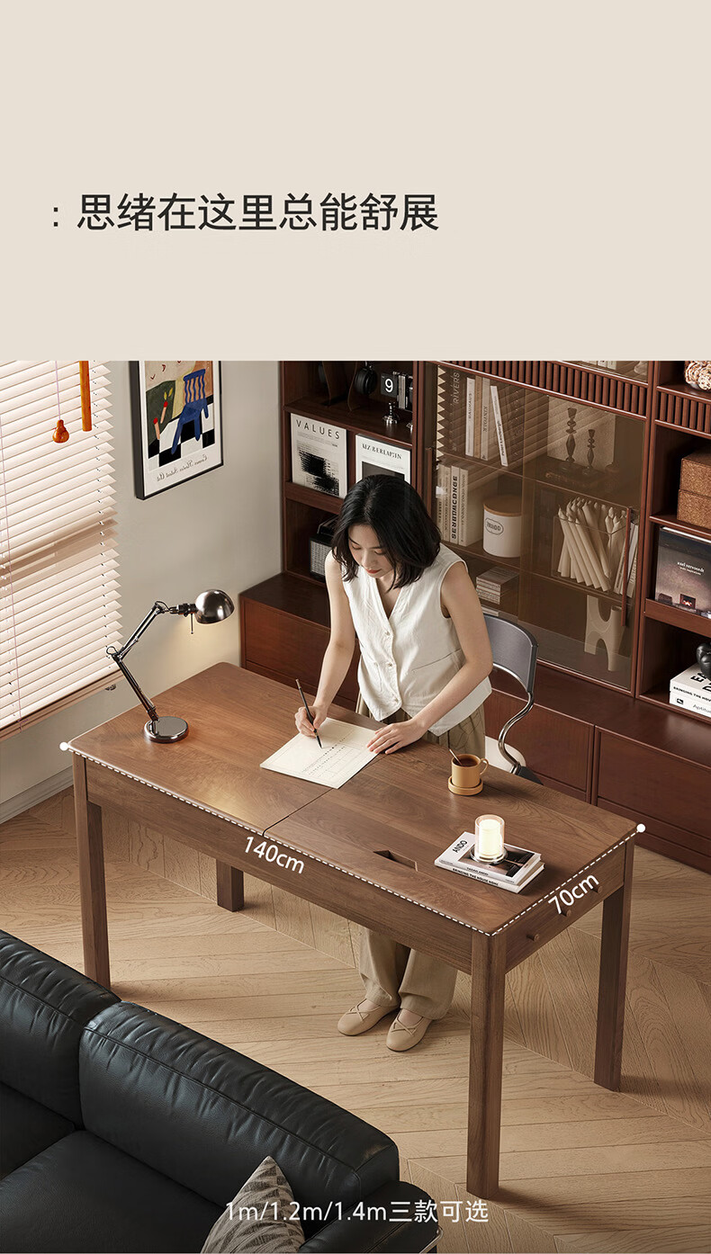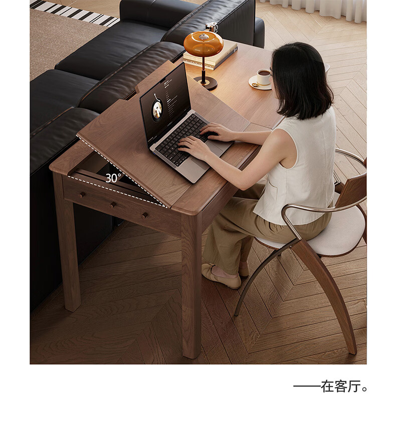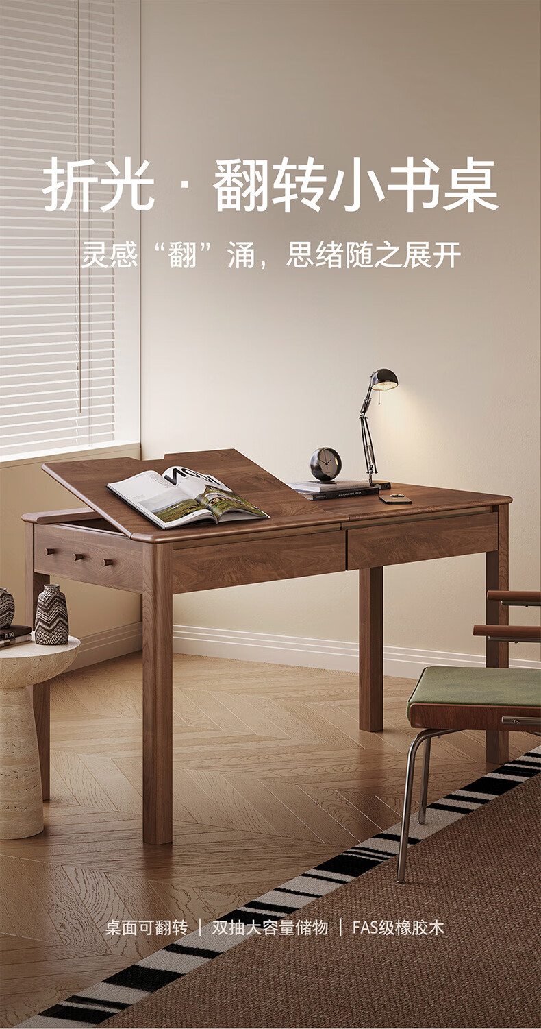 顾家家居实木书桌可翻转家用学生学习桌成人小户型卧室办公桌子中古电脑桌 【进口FAS级橡胶木】原木色100*55*75cm 【送货上门包安装】