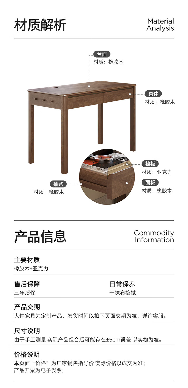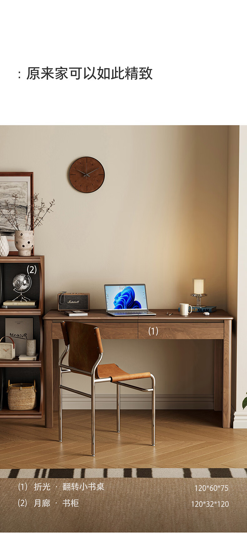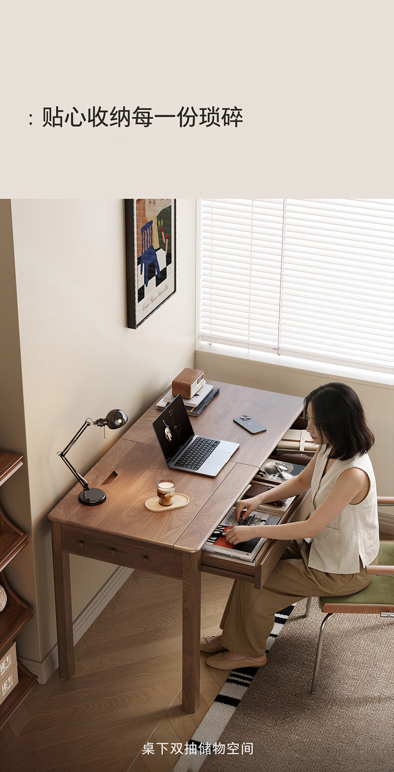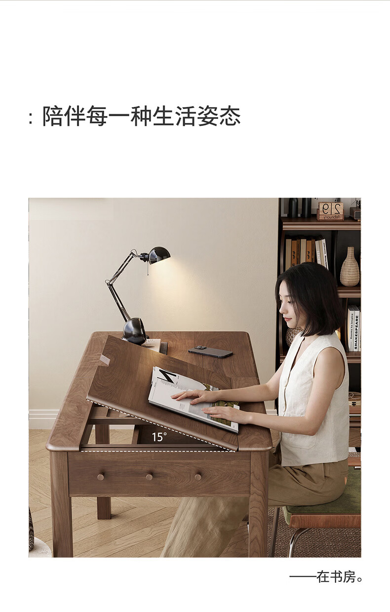 顾家家居实木书桌可翻转家用学生学习桌成人小户型卧室办公桌子中古电脑桌 【进口FAS级橡胶木】原木色100*55*75cm 【送货上门包安装】