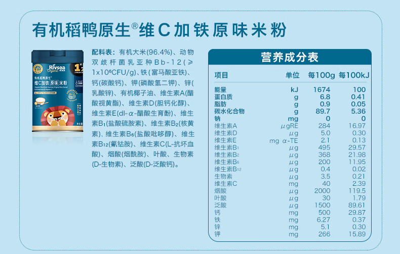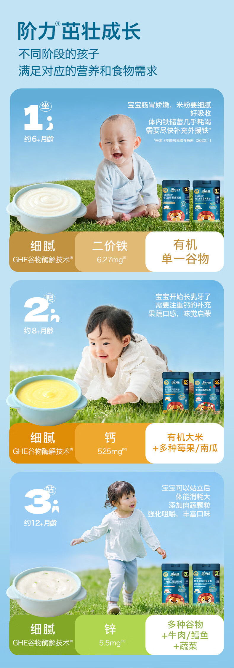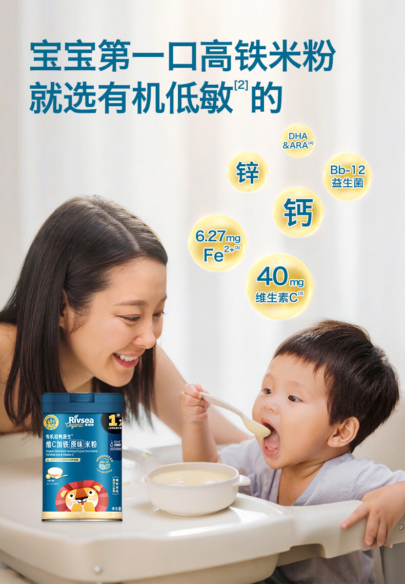 禾泱泱有机婴幼儿米粉米糊6个月以上宝宝儿童辅食稻鸭原生营养 3阶牛肉西兰花加锌米粉 225g*1罐