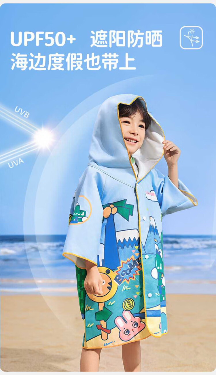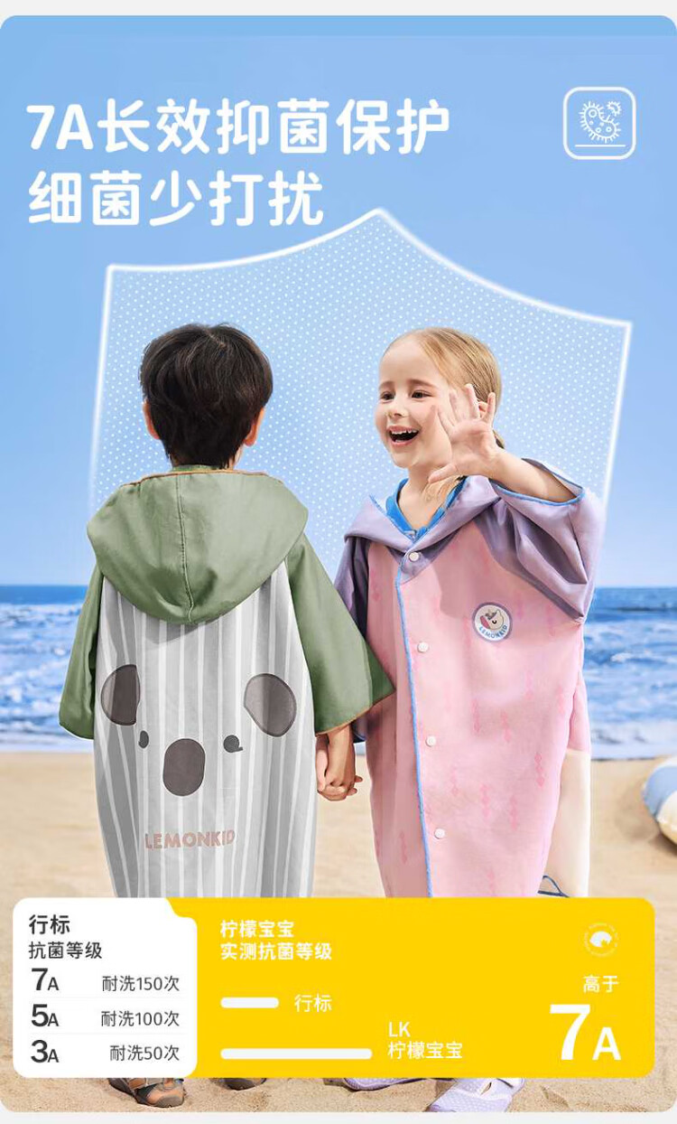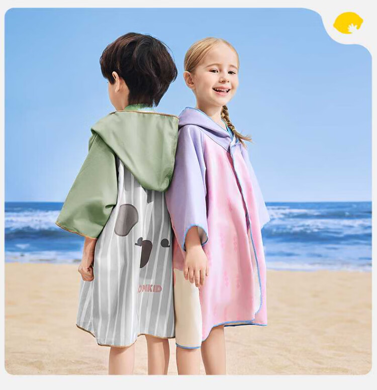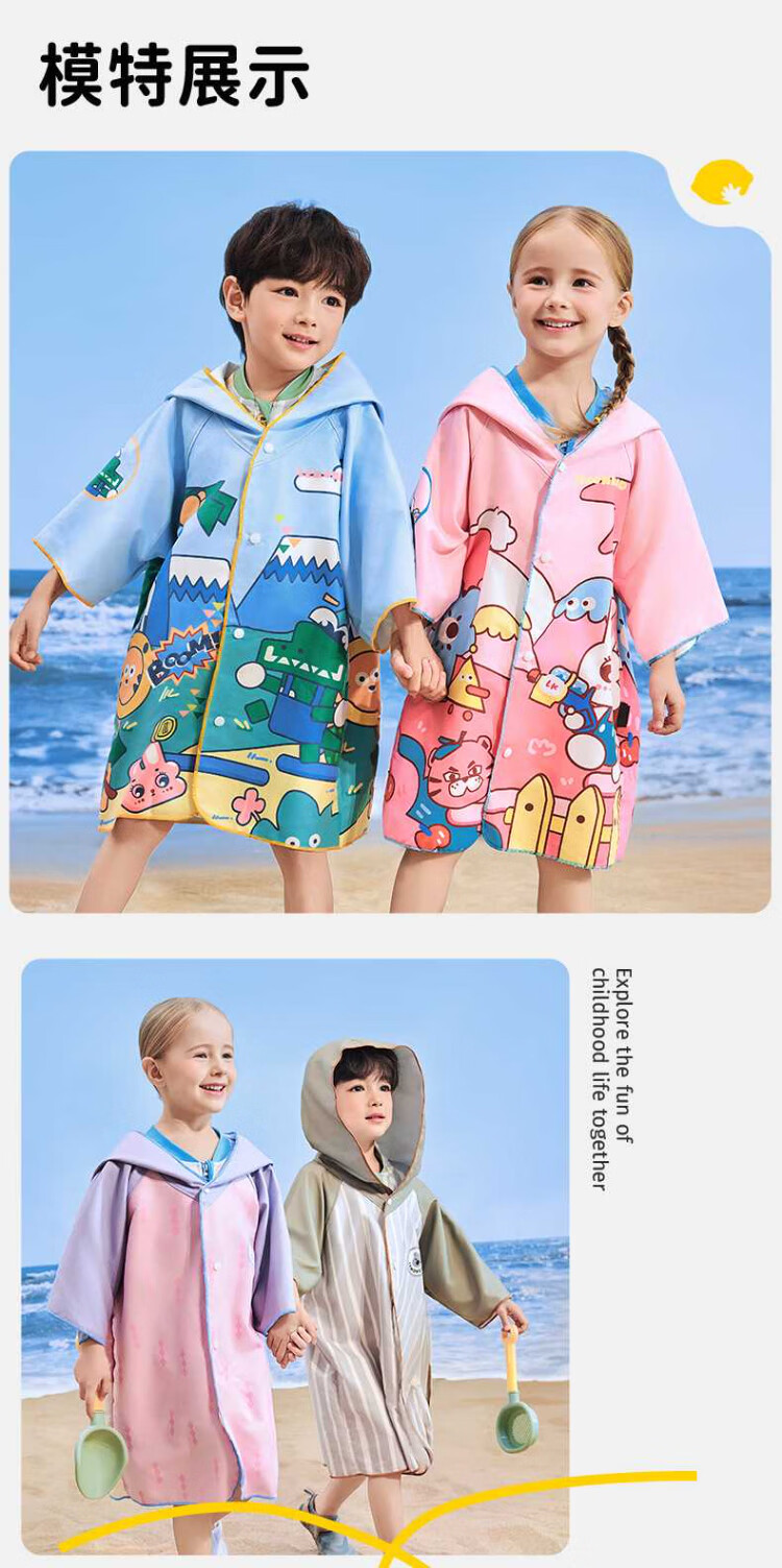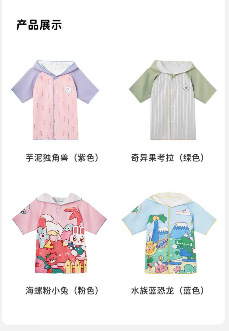 lemonkid儿童浴袍宝宝男女童带帽可穿吸水速干浴巾 水族蓝恐龙 100