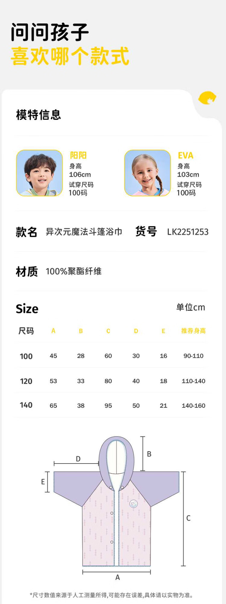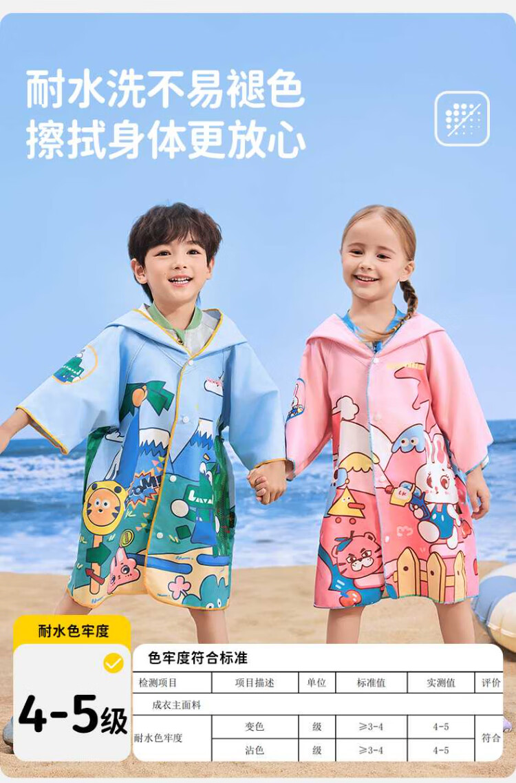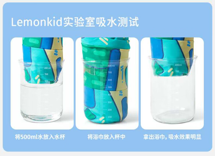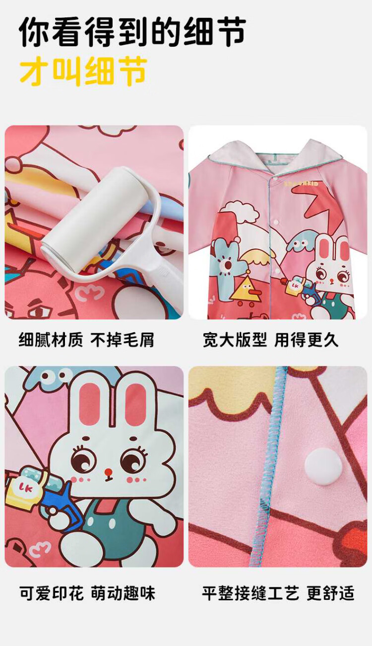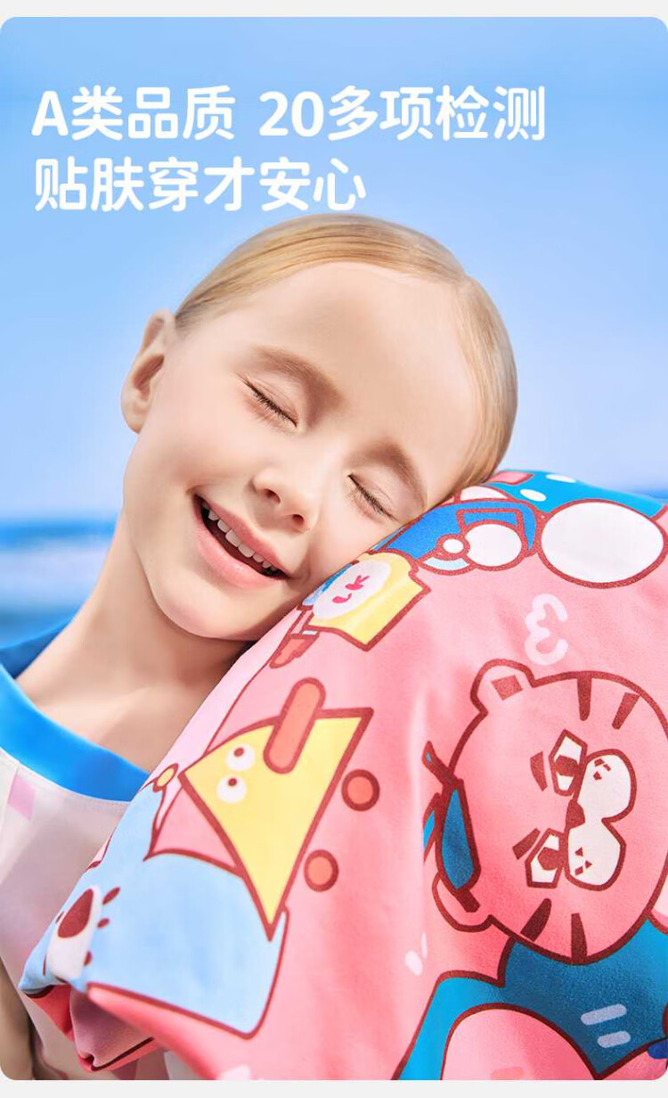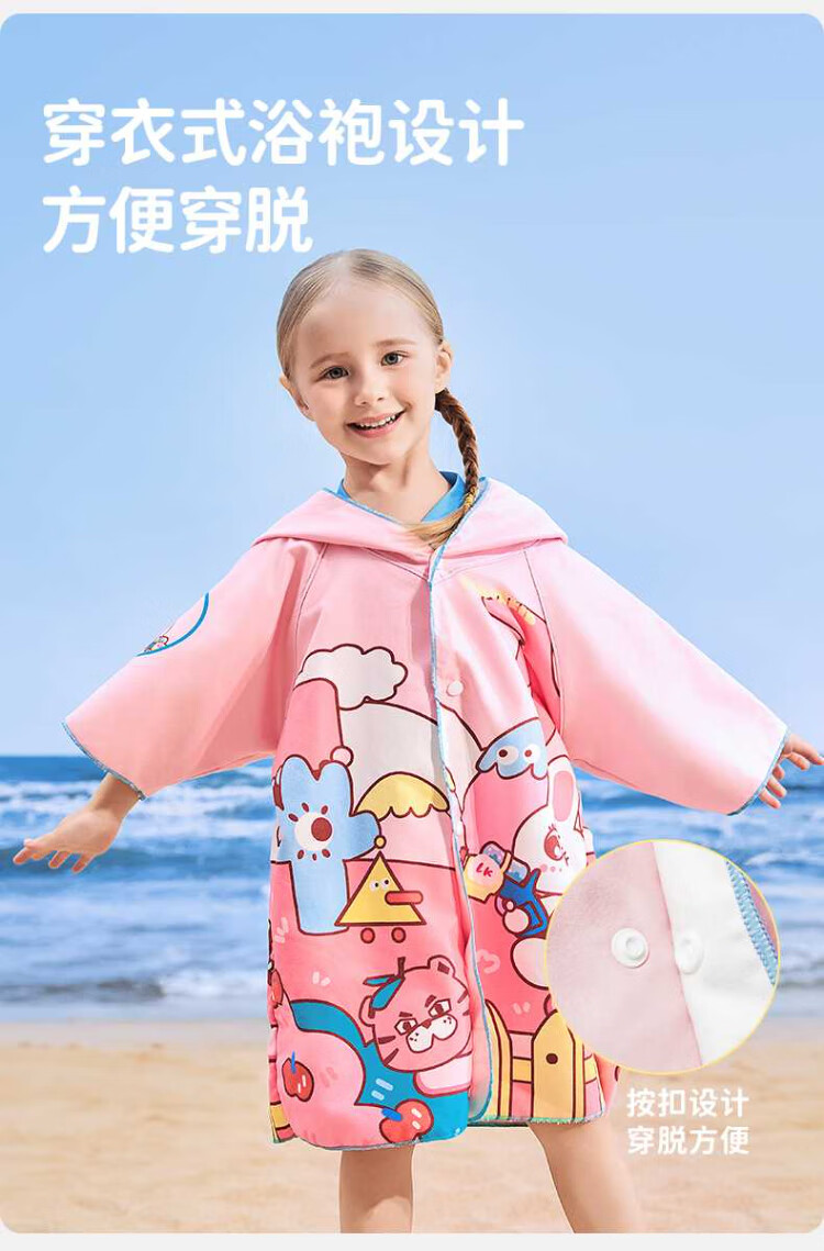 lemonkid儿童浴袍宝宝男女童带帽可穿吸水速干浴巾 水族蓝恐龙 100