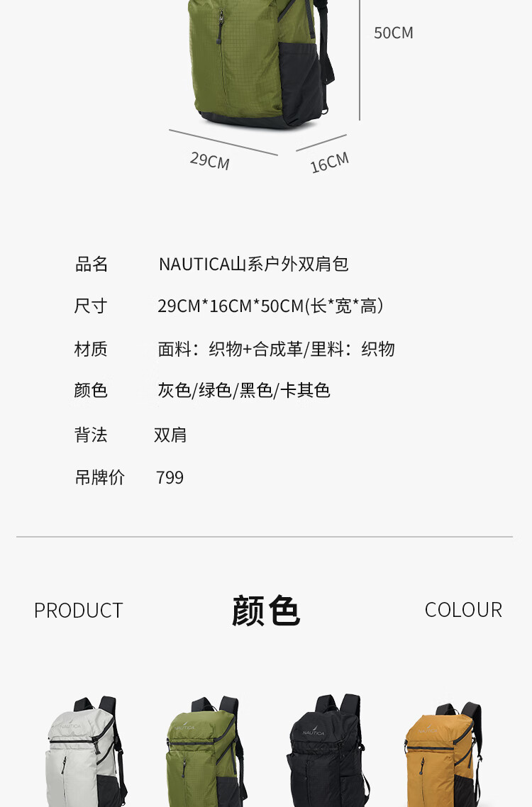 NAUTICA诺帝卡背包男大容量双肩包户外时尚旅行包商务短途出差行李包书包