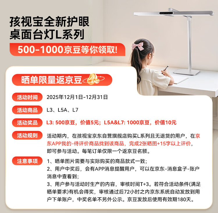 孩视宝国AA级儿童护眼灯学生学习专用防蓝光防近视全光谱台灯L3