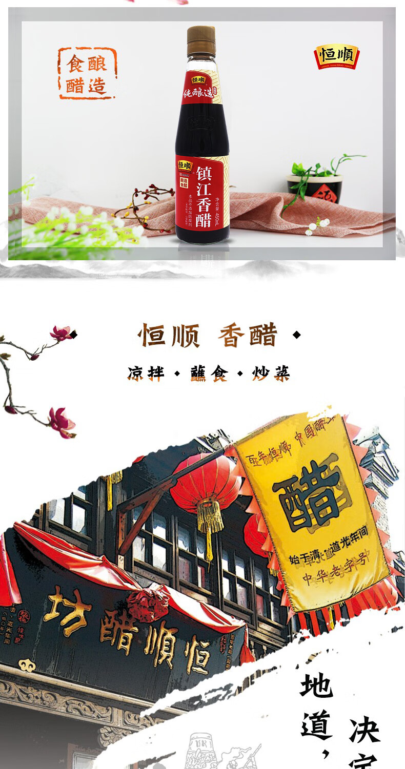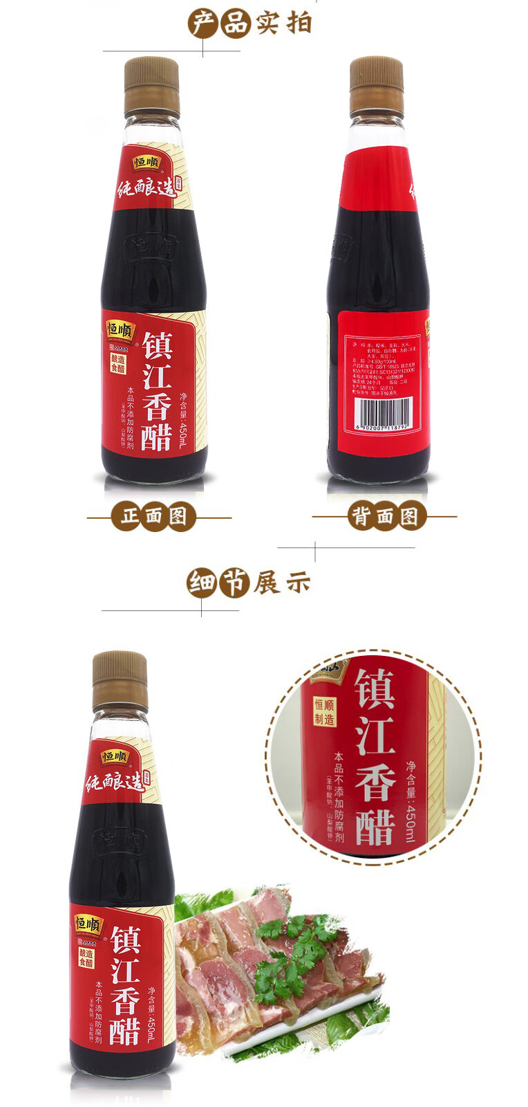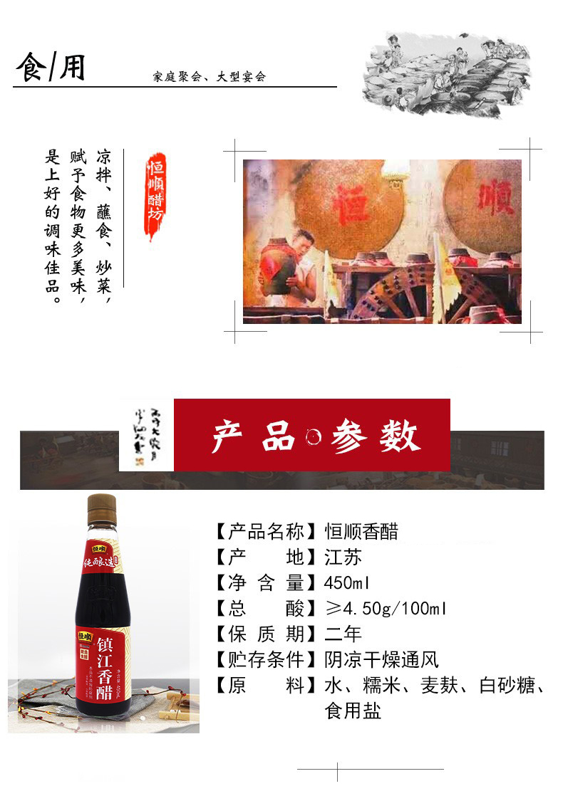 恒顺镇江香醋 4.5度 450ml 酿造食醋 炒菜 不添加防腐剂