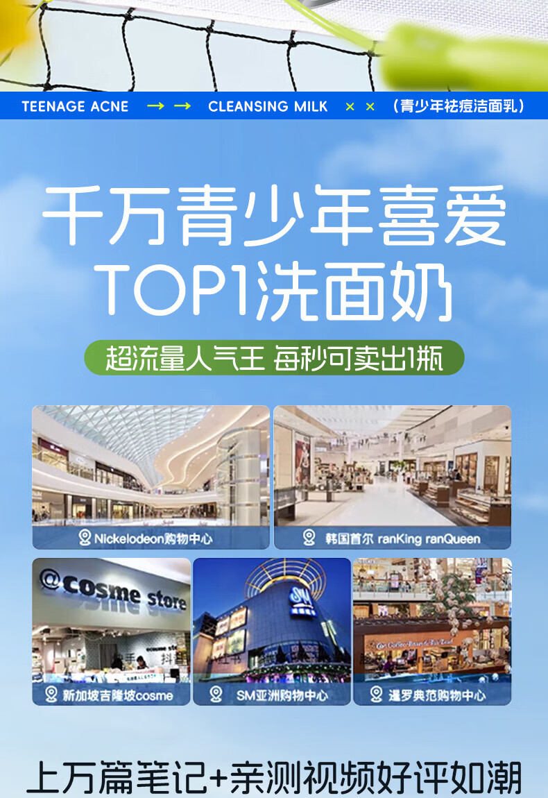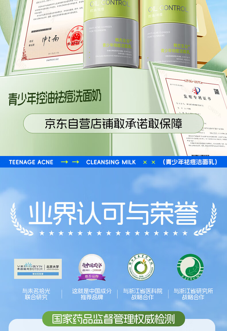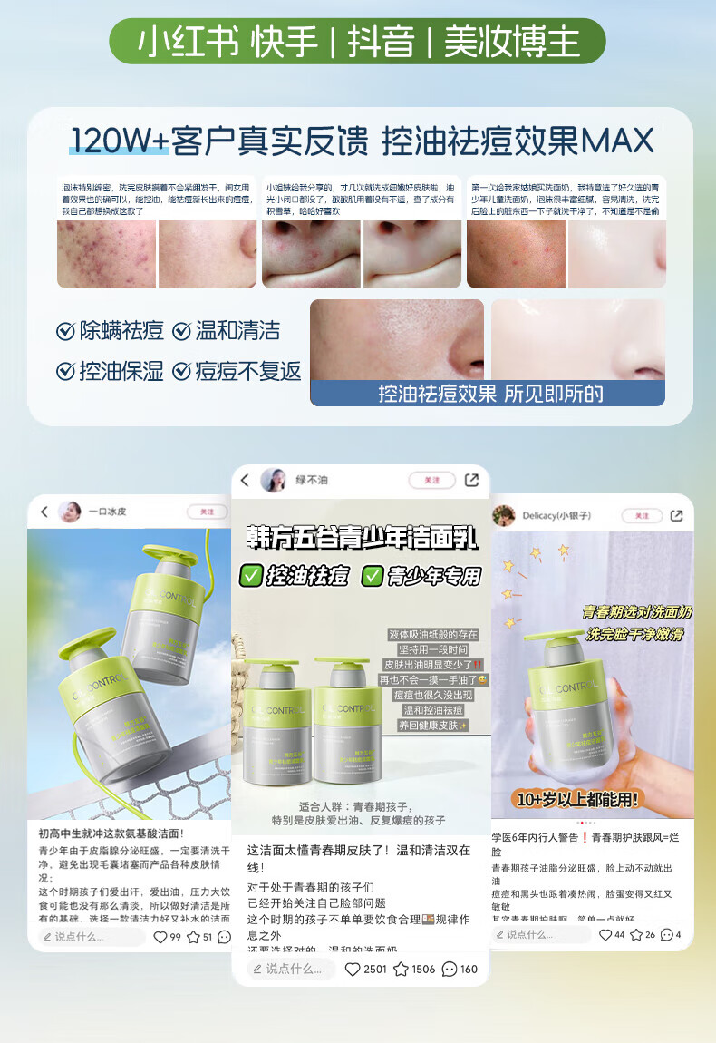 韩方五谷氨基酸青少年洗面奶控油祛痘淡印去黑头6-12-18岁学生儿童洁面乳