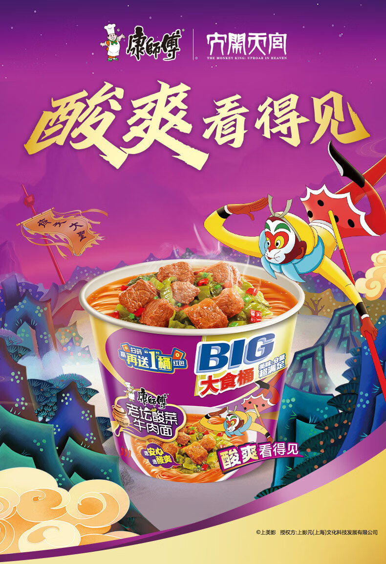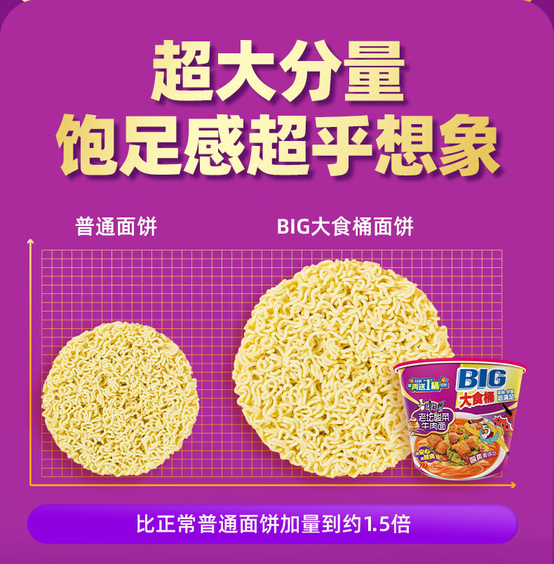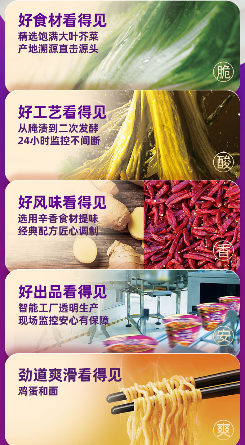 康师傅 方便面 大食桶酸菜牛肉桶面159g*12 泡面整箱速食 方便食品