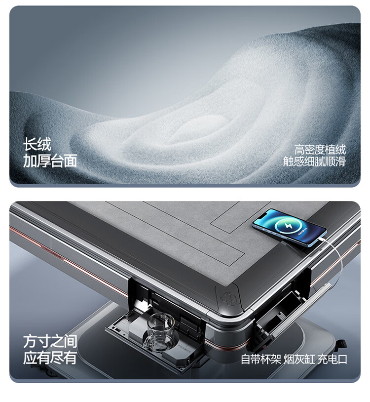 鸿胜【十万次0故障+180天换新】麻将机全自动餐麻将桌家两用低音电动 01【JD物流】低音带盖板-星空灰