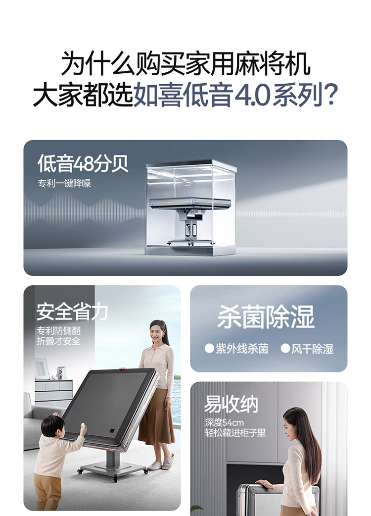 如喜【扑克麻将机一体机】全自动餐桌家两用杀菌除湿低音电动一键降噪 JD仓-杀菌除湿低音机摩登灰 麻将牌型号大小,请联系客服