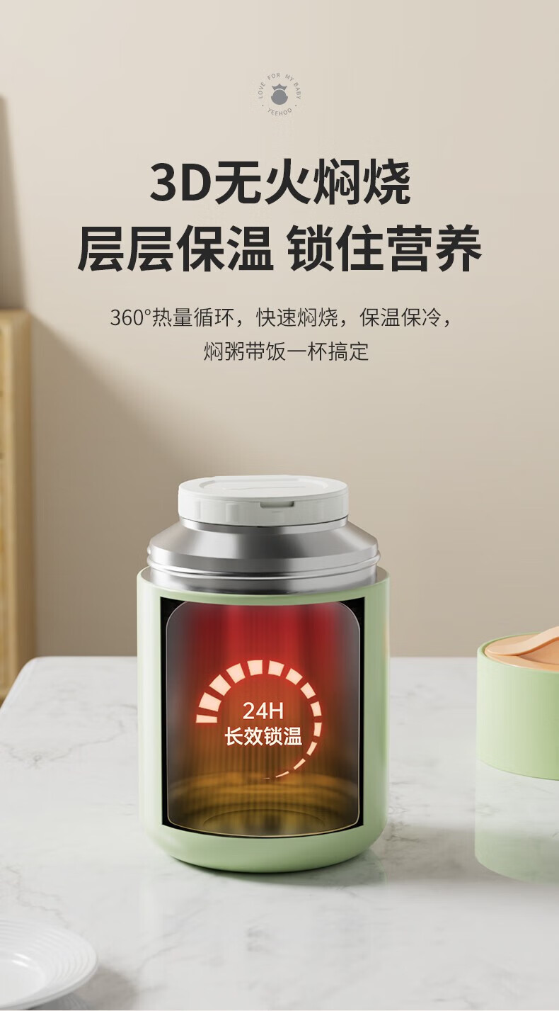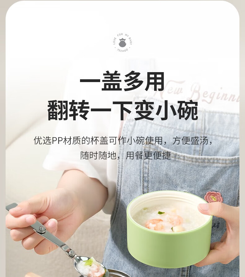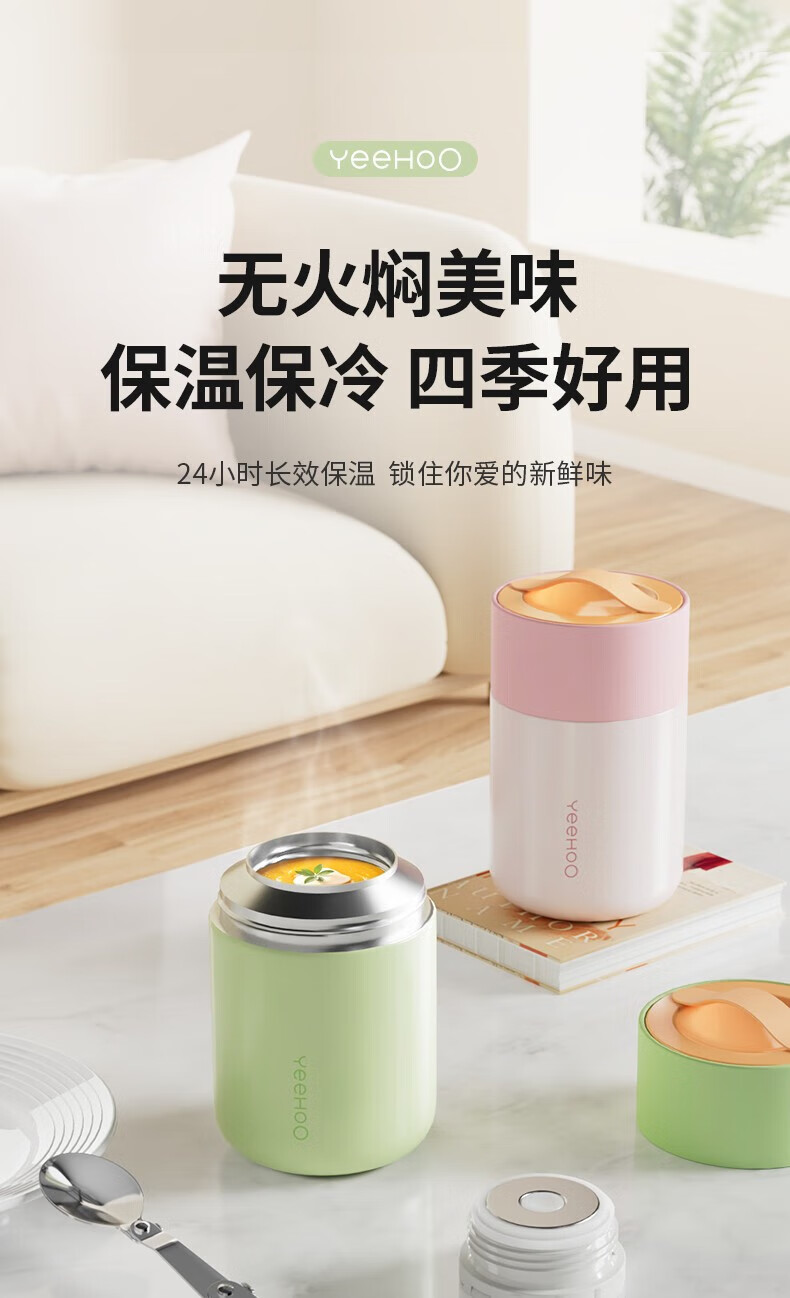 英氏(YEEHOO)儿童保温焖烧杯饭盒带碗带勺子保温桶超级保温密封罐不锈钢婴幼儿