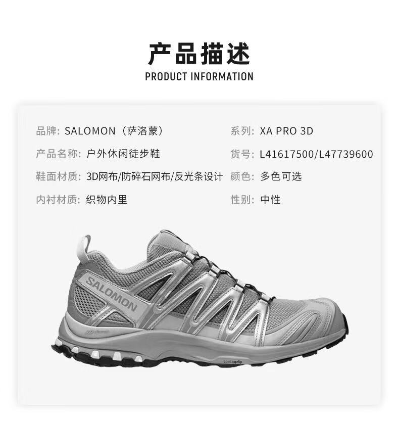 萨洛蒙(Salomon)XA PRO 3D 户外户外越野徒步休闲男女款 银灰色 42.5