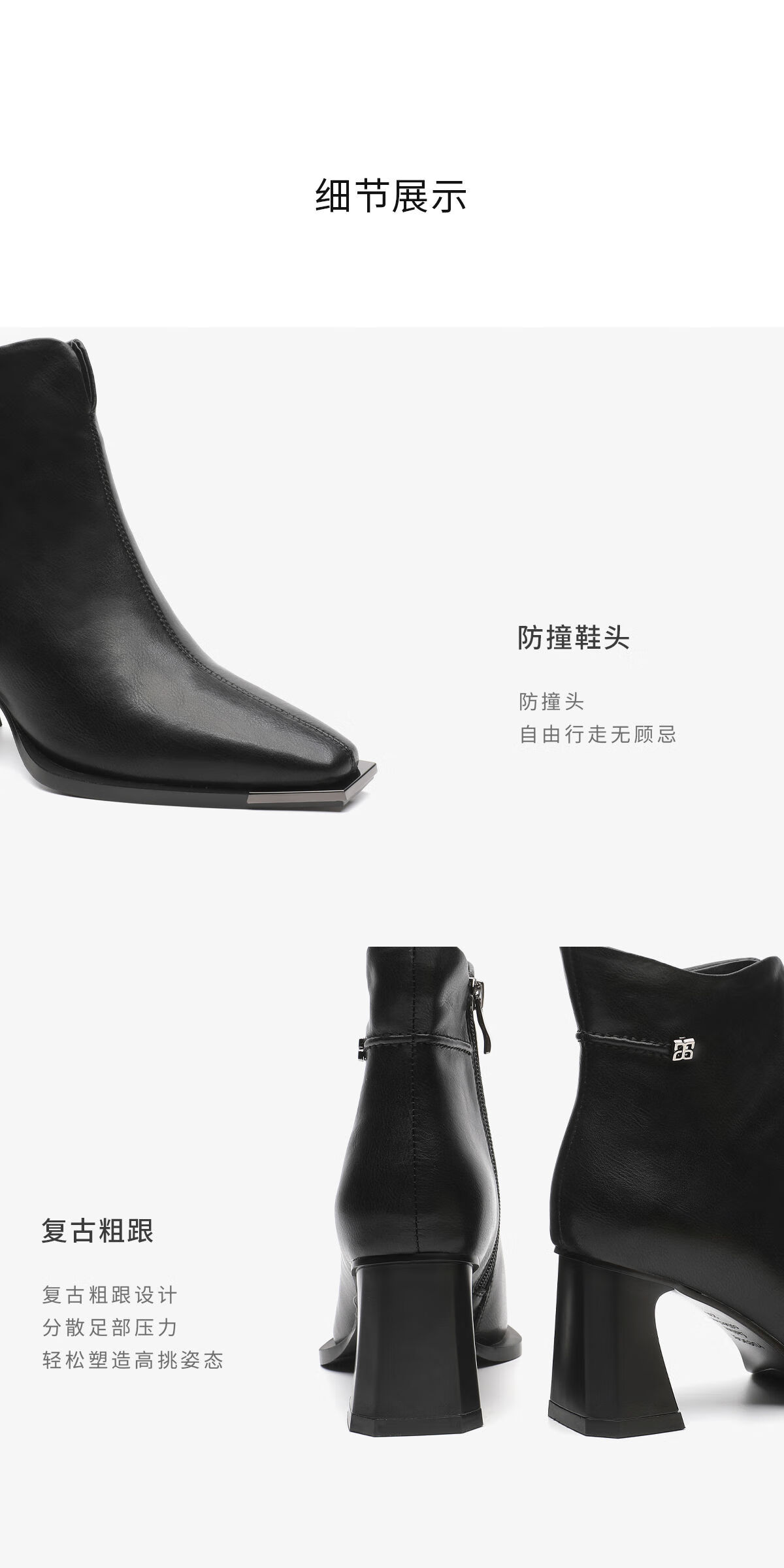 月芽儿短靴女2025新款秋冬季高跟鞋气质百搭方头瘦瘦靴马丁靴 绒里黑色01T 34