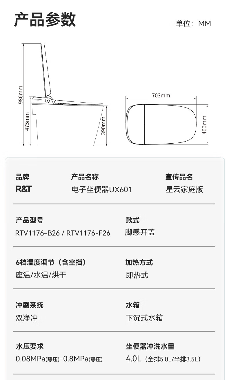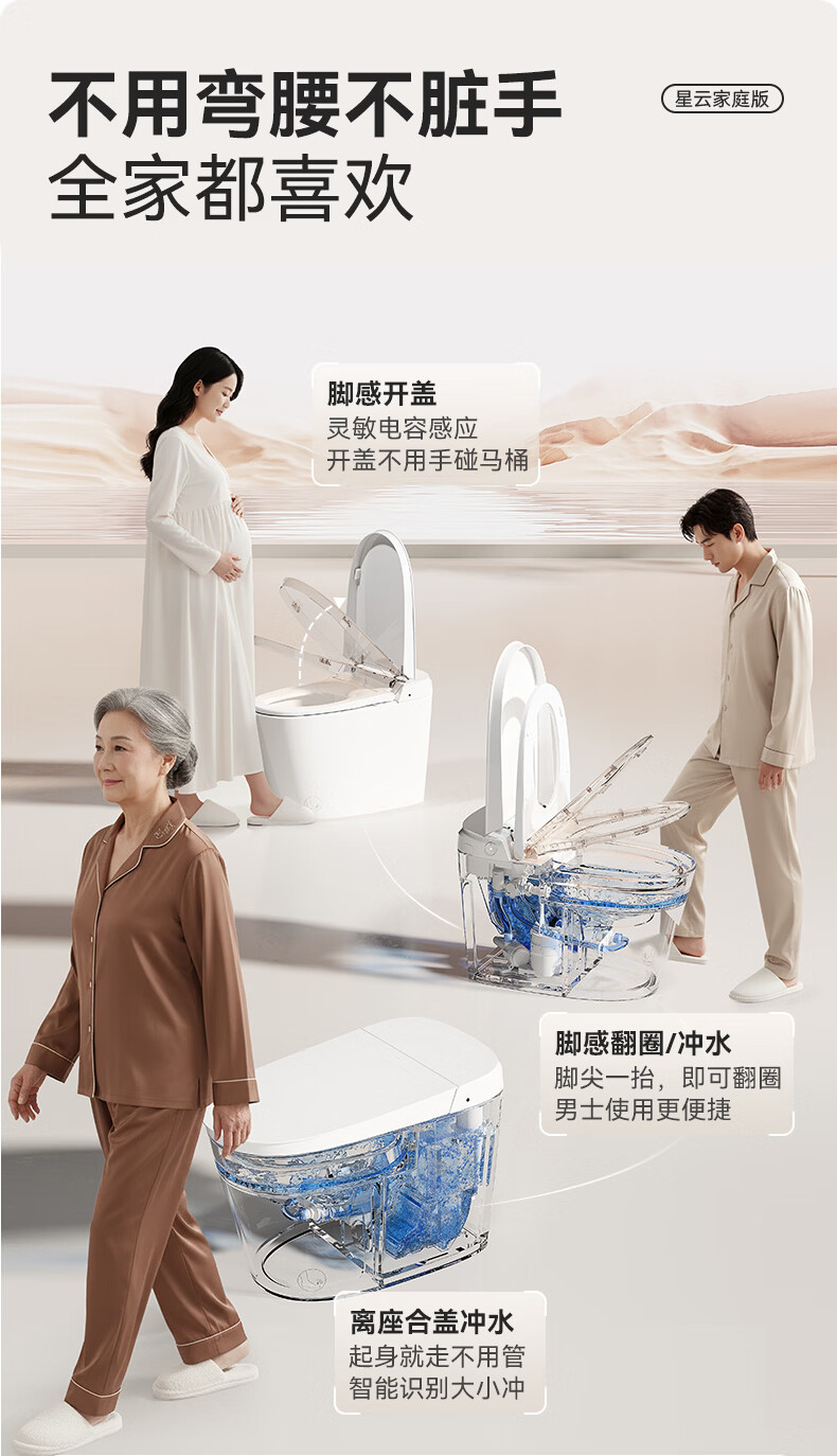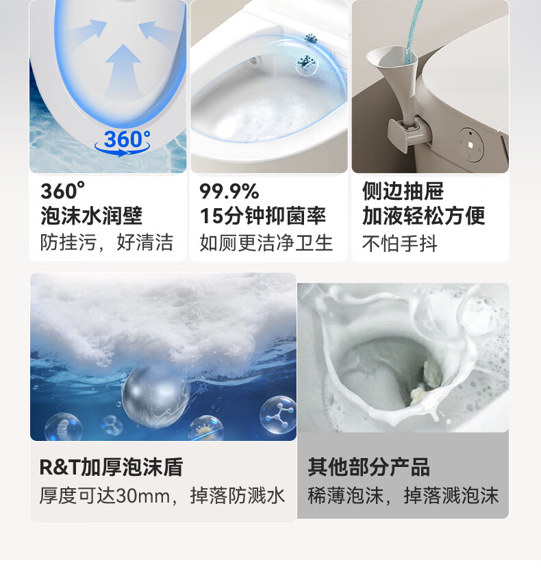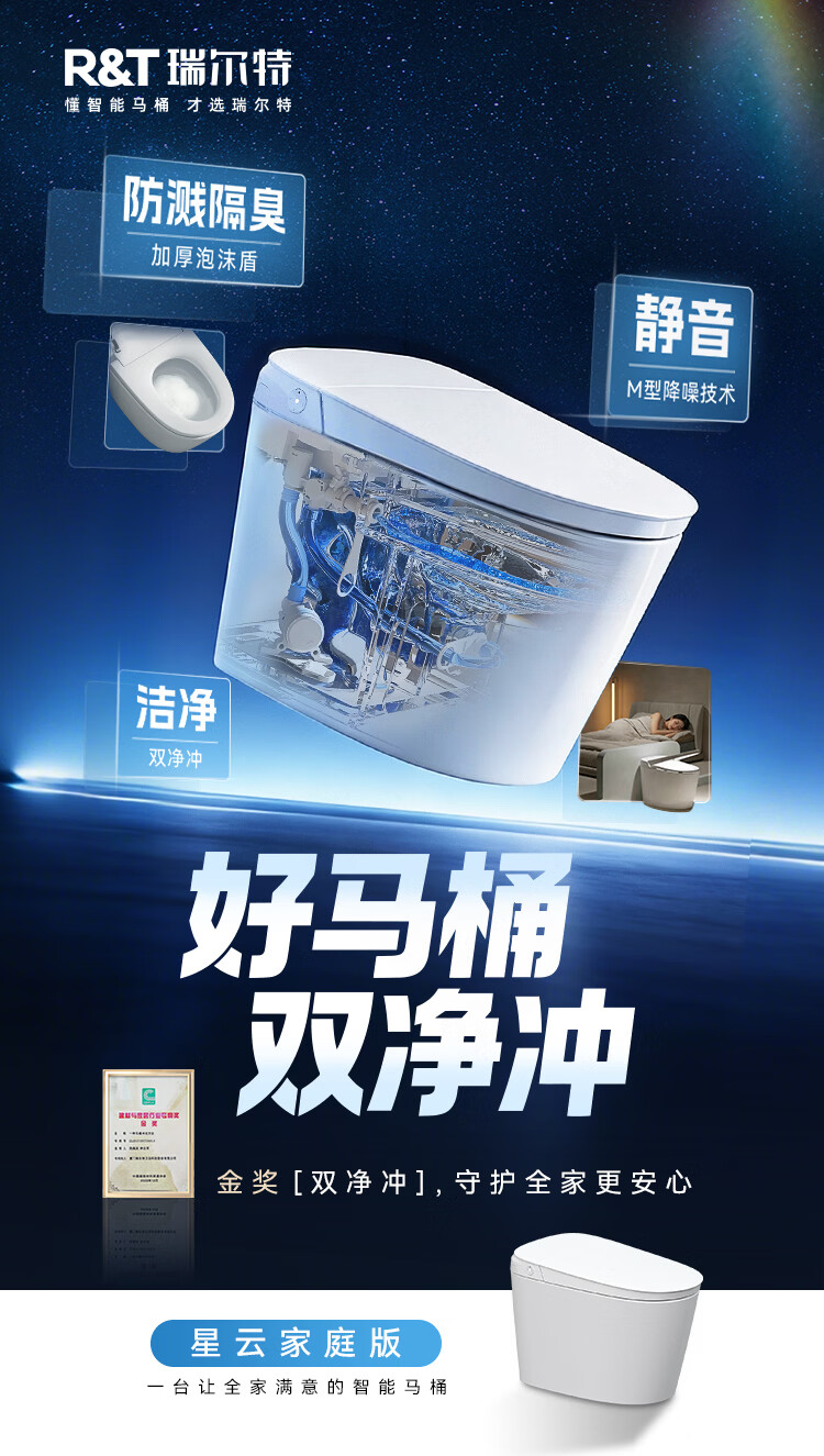 瑞尔特(R&T)智能马桶星云系列脚翻双净冲泡沫盾自动除臭抗菌全自动马桶坐便器 星云家庭版 400mm
