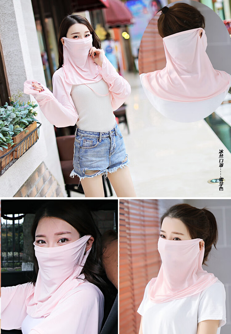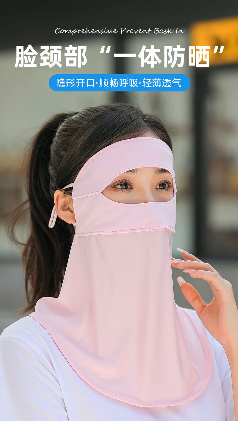 将远行防晒面罩夏季女防晒冰袖遮阳口罩薄款遮阳面部护颈防护 防晒面罩1个装(颜色随机发)