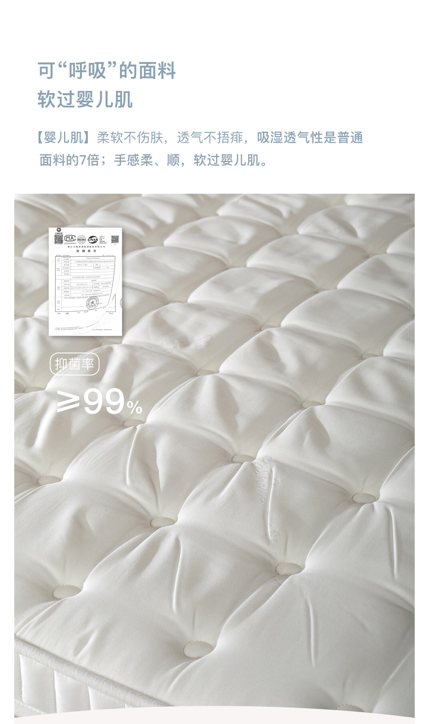 城市爱情喜临门床垫舒脊硬质绵轻音独袋弹簧床垫子 大白H 1.8x2米 偏硬