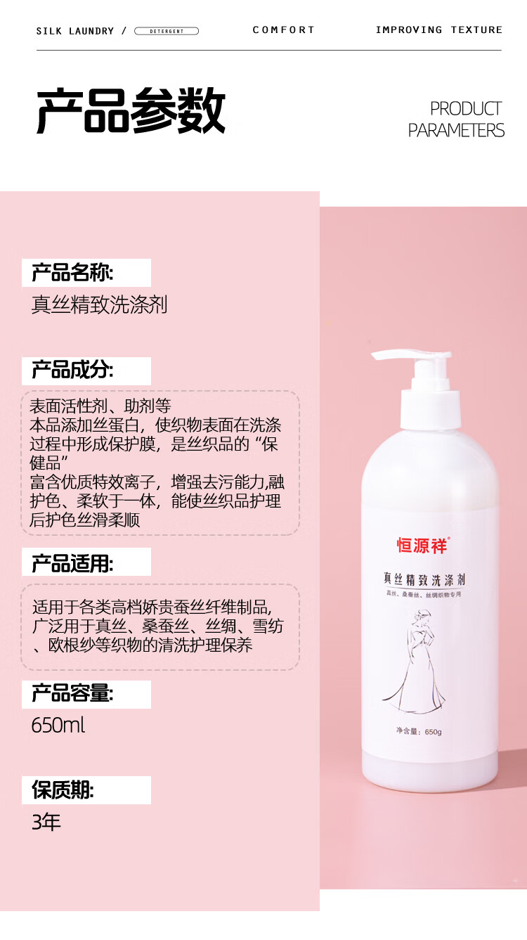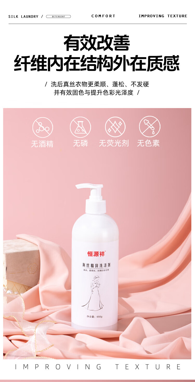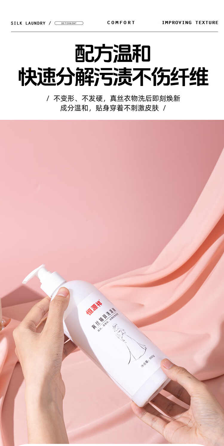 恒源祥丝绸洗涤剂真丝桑蚕丝天丝亚麻棉麻羊绒专用香云纱固色增艳洗衣液 【真丝洗涤剂】囤货装 650g 2瓶