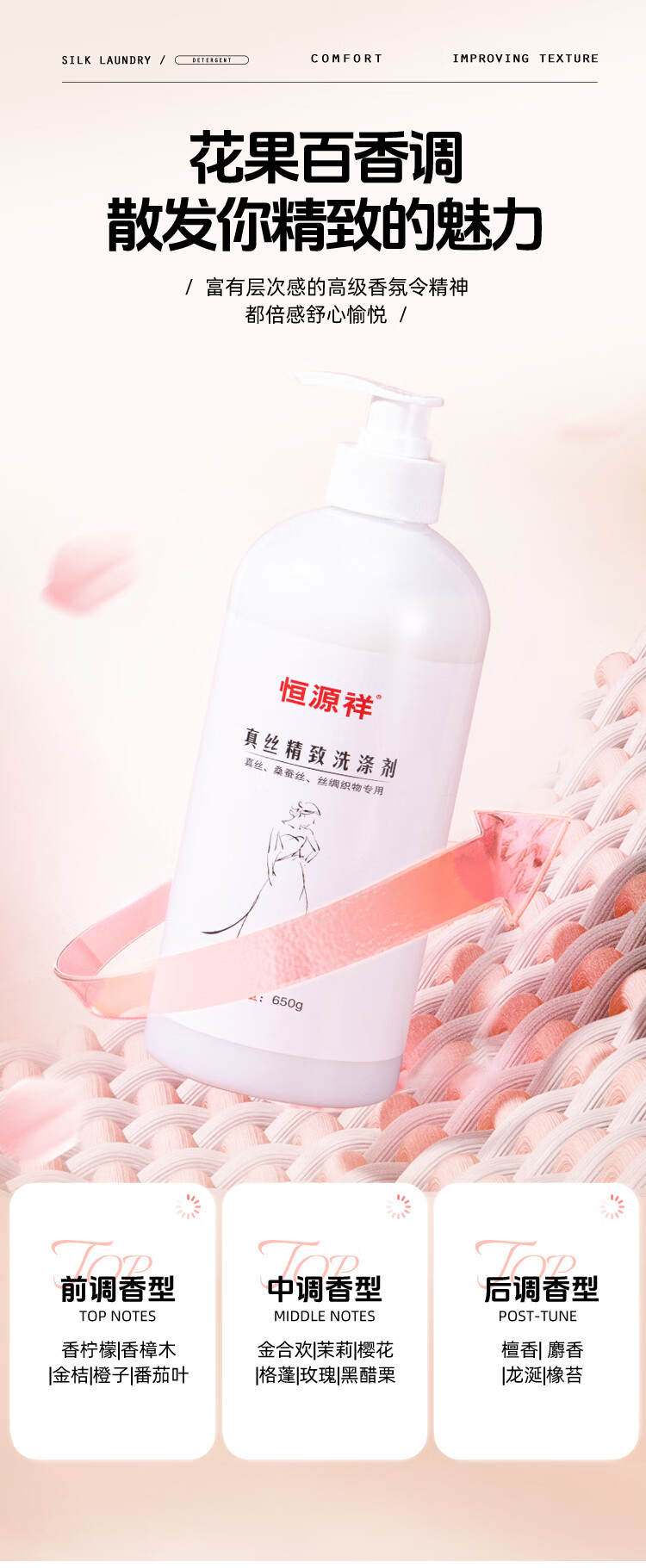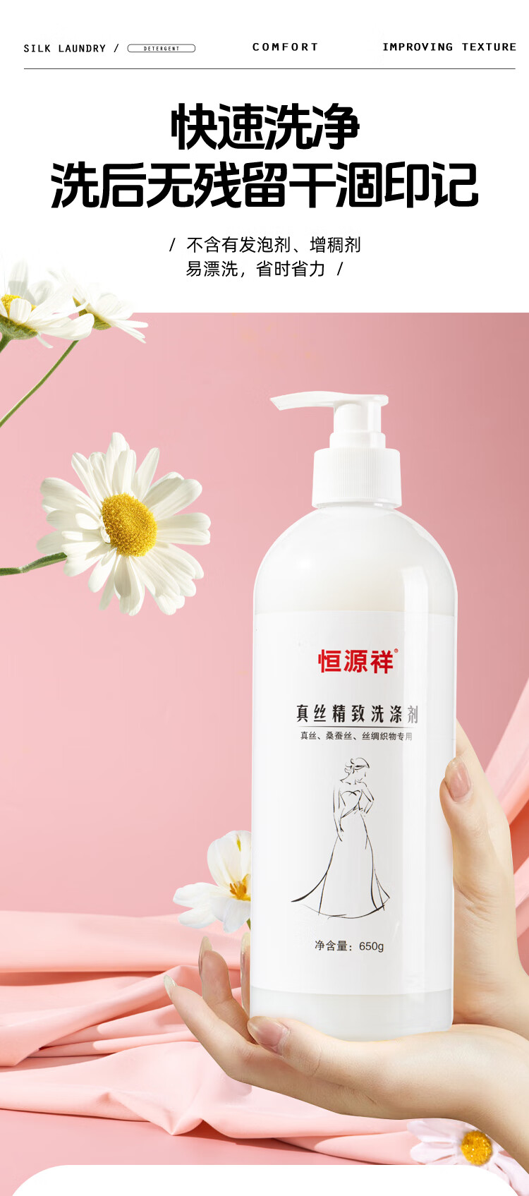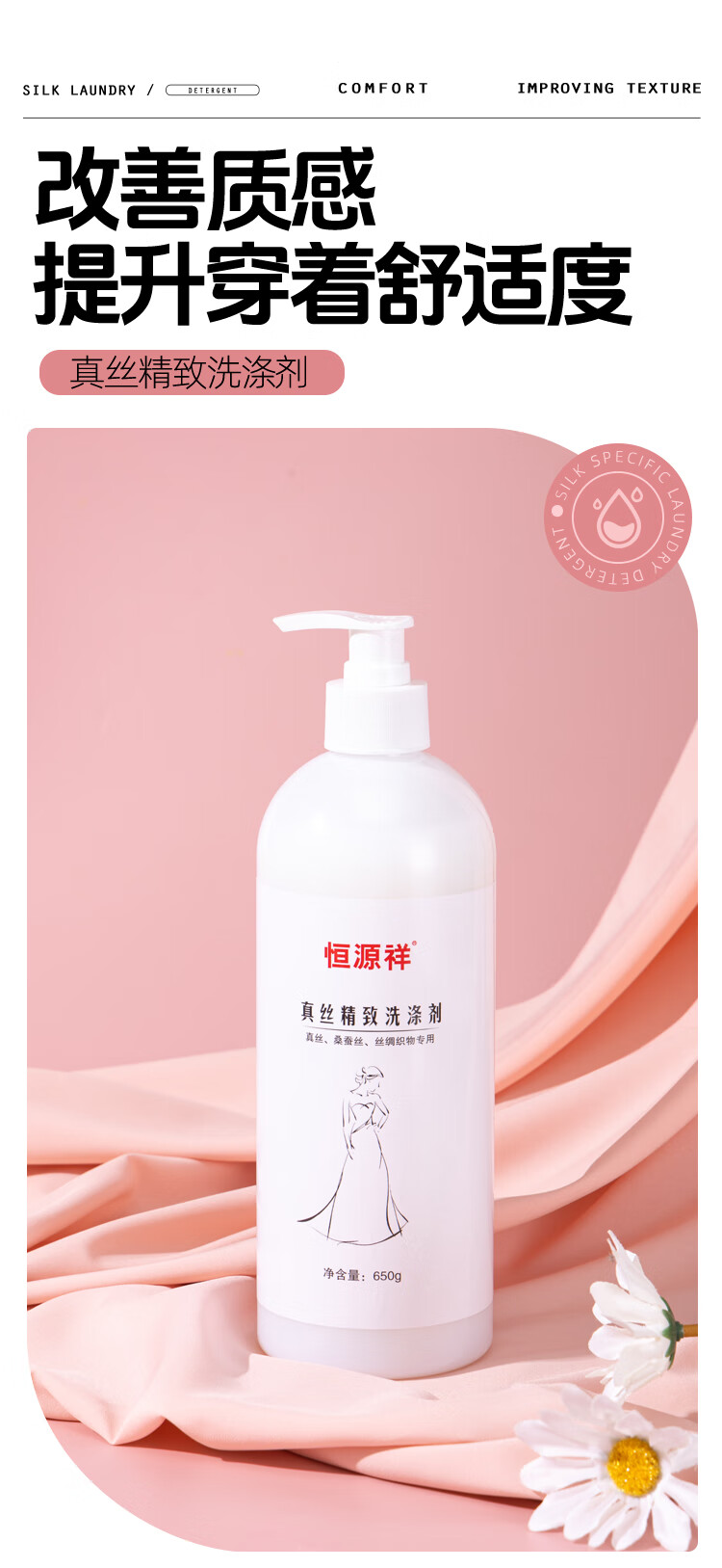 恒源祥丝绸洗涤剂真丝桑蚕丝天丝亚麻棉麻羊绒专用香云纱固色增艳洗衣液 【真丝洗涤剂】囤货装 650g 2瓶