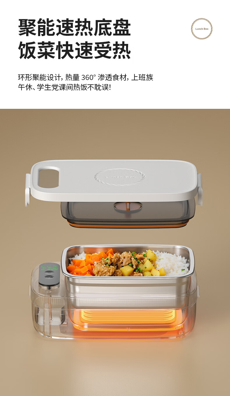 GBTW充电式USB定时电热饭盒免插电加热保温便当盒免注水办公室上班族车载露营免插电不锈钢自热饭盒 1.6L 【USB快充/24000毫安/加厚内胆】 免注水加热