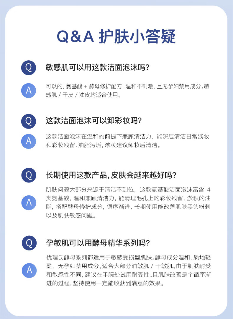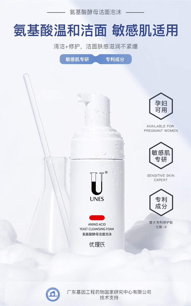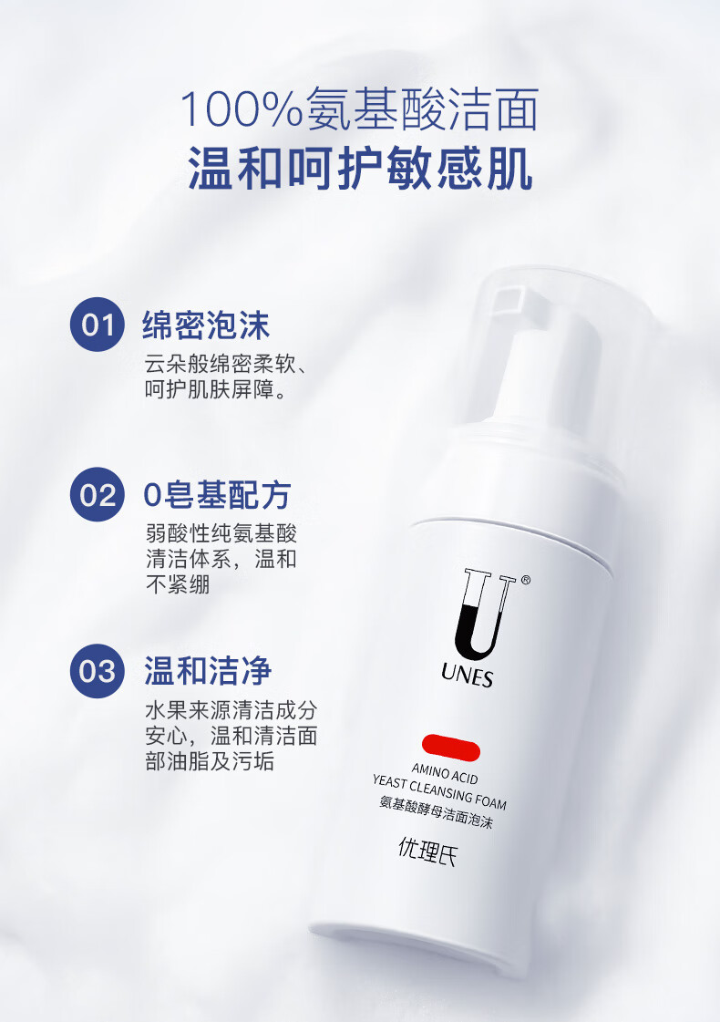 优理氏酵母氨基酸洗面奶洁面乳泡沫慕斯敏感肌温和平衡控油清洁毛孔男女 玻色因净颜洗面奶80g