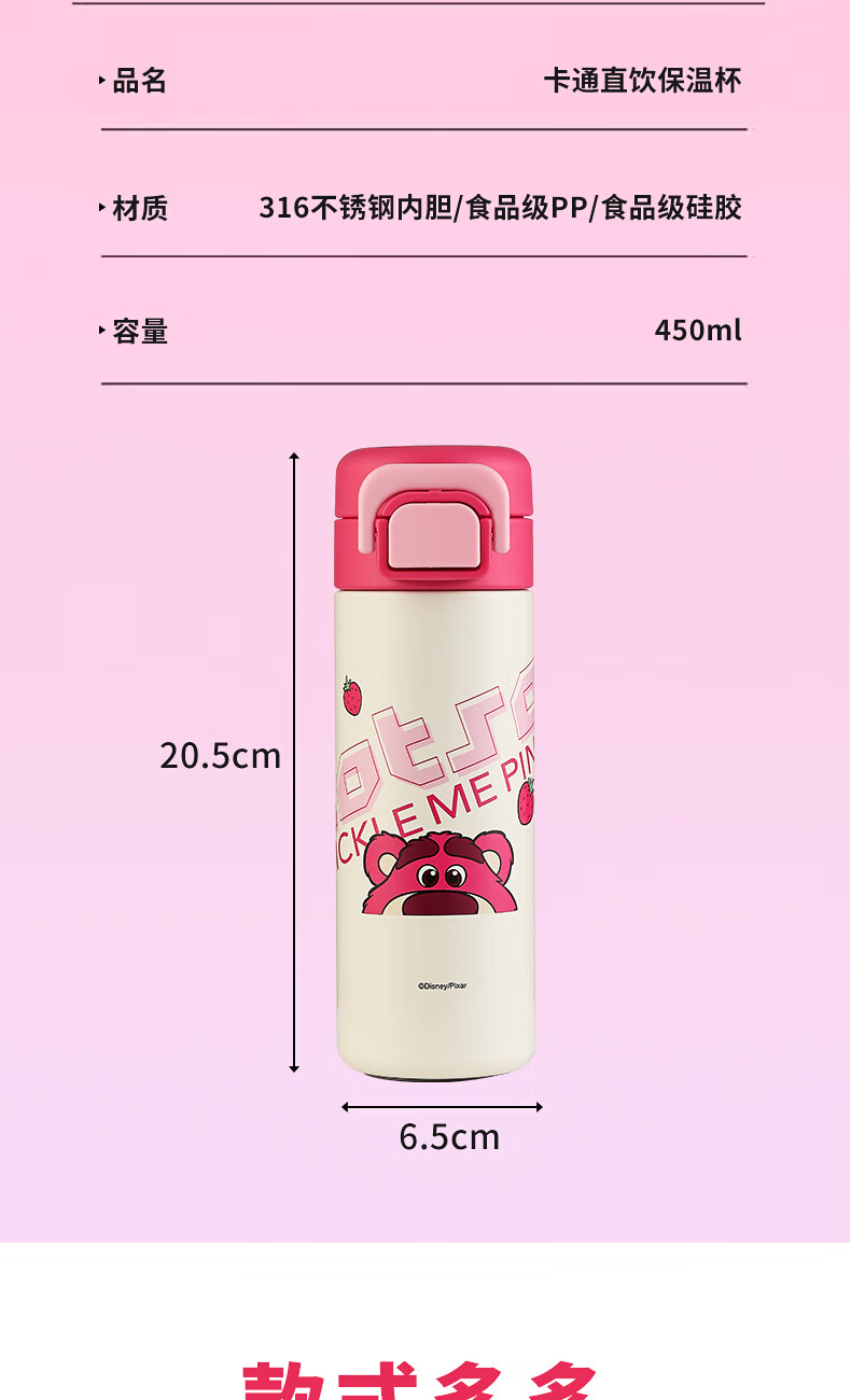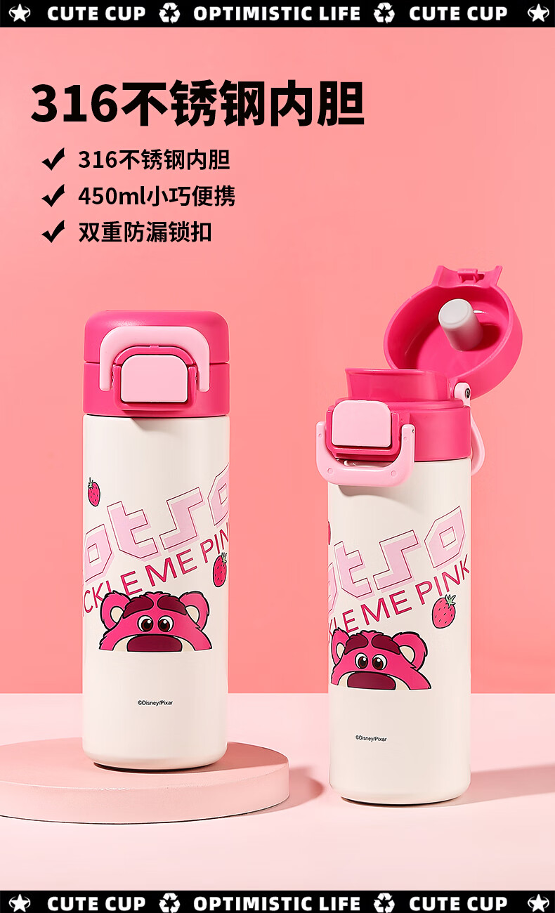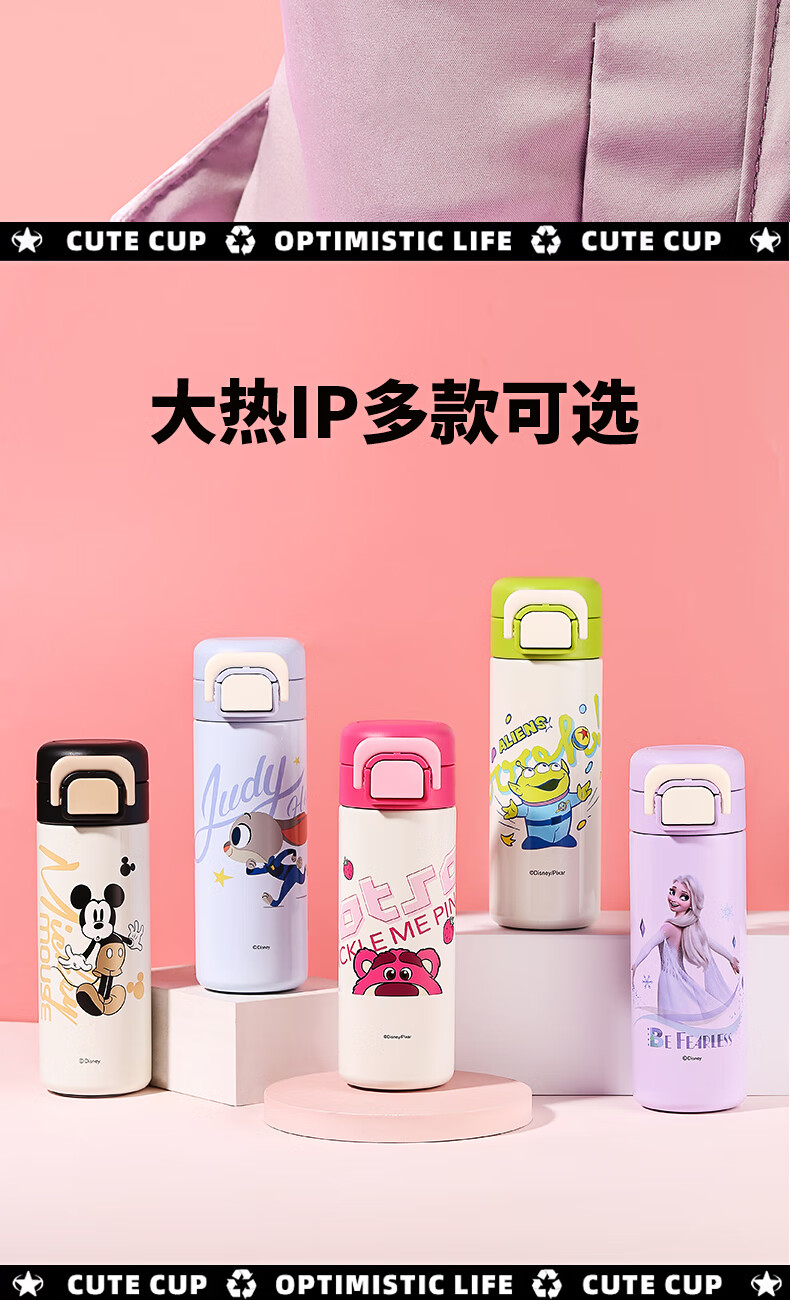 迪士尼(Disney)儿童保温杯316食品级小学生直饮杯上学专用刻字幼儿园水壶450ml 朱迪直饮保温杯
