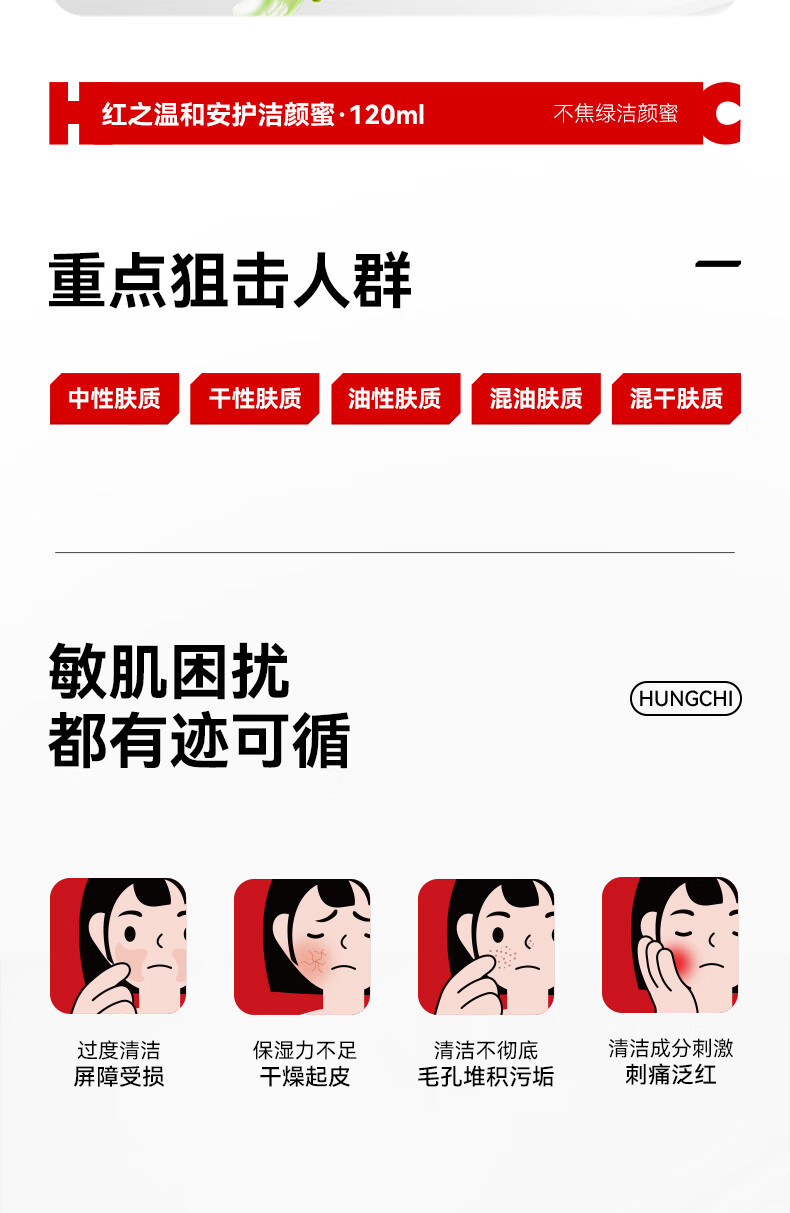 红之不焦绿温和安护洁颜蜜氨基酸洗面奶深层洁面敏感肌专研男女学生 不焦绿洁颜蜜20ml*2