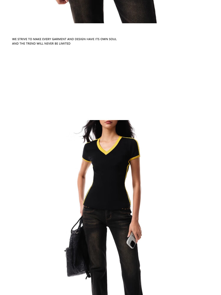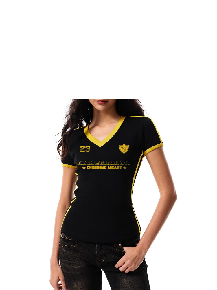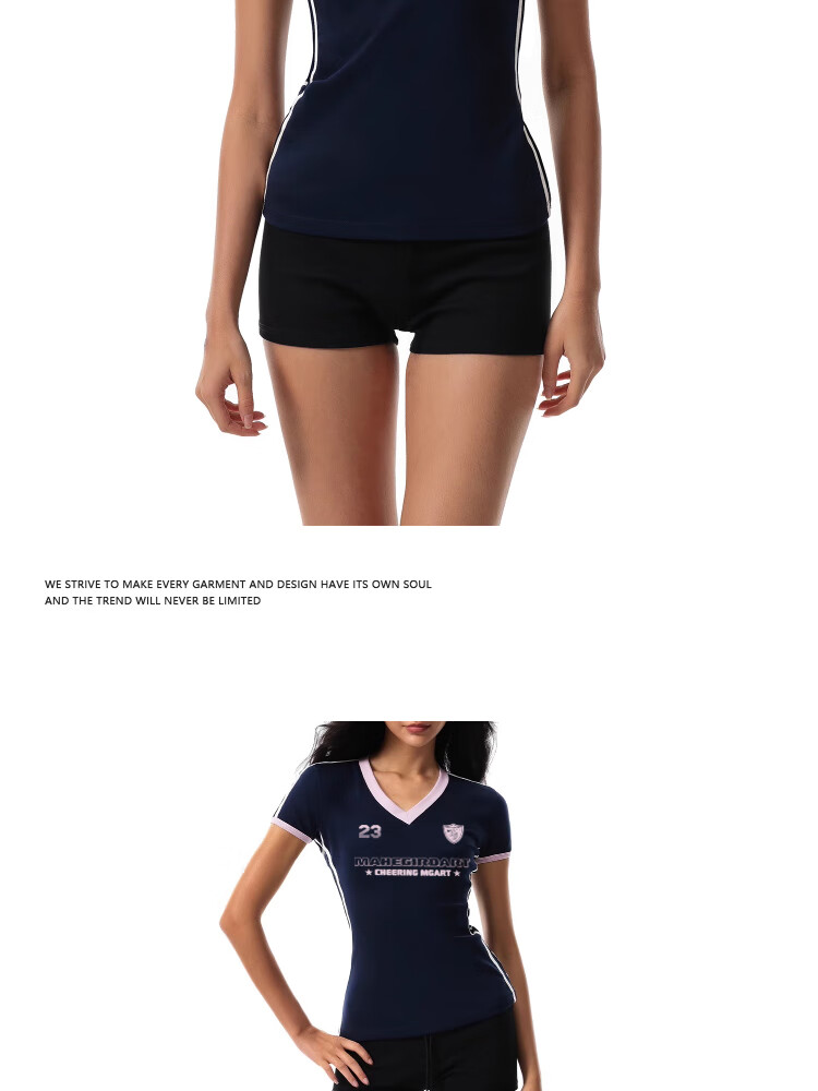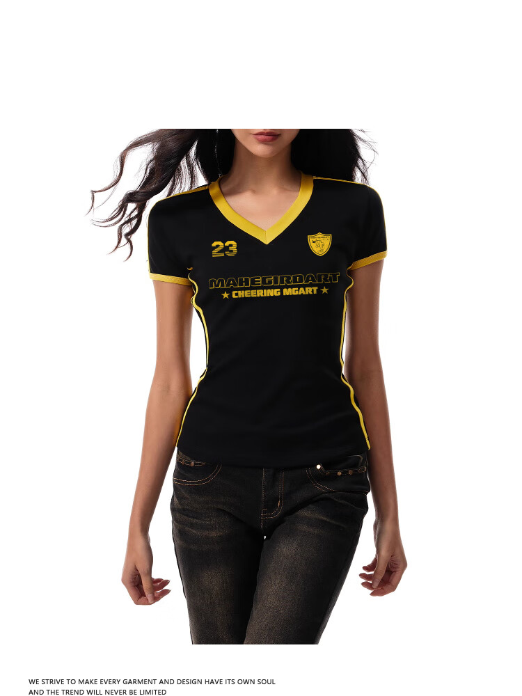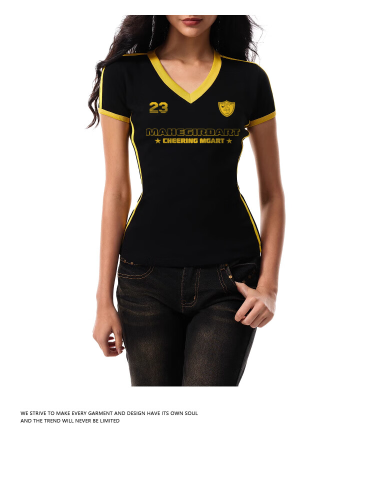 TAKE MOVE夏季新款美式复古休闲百搭辣妹V领撞色短袖女修身体恤衫显瘦上衣 藏青粉【星星】 M (95-110斤)