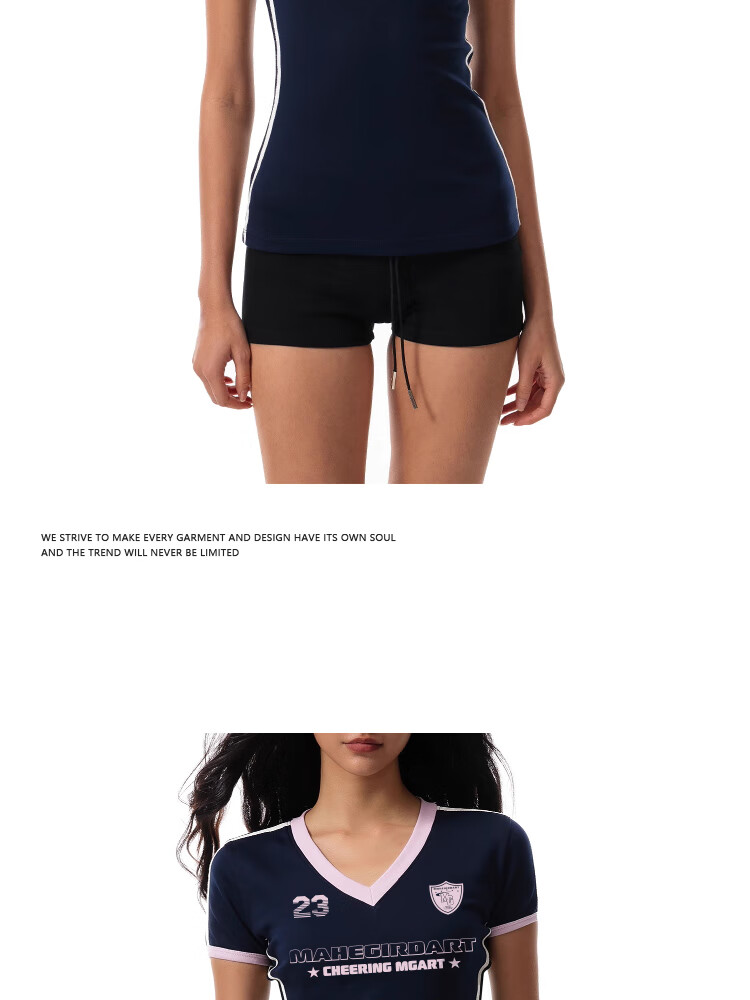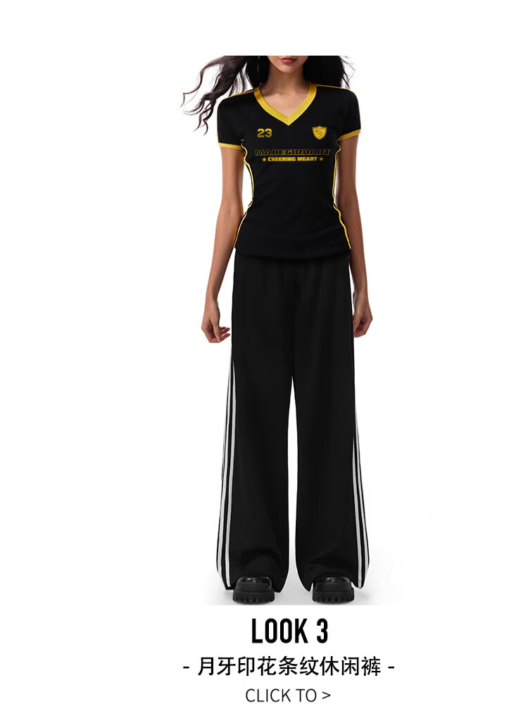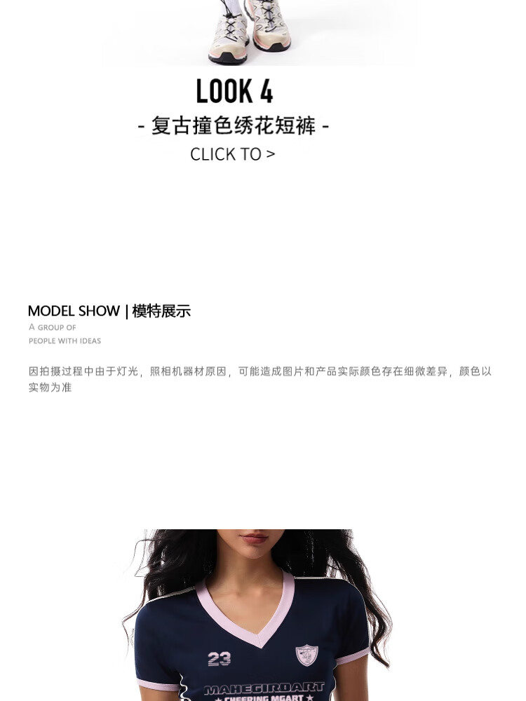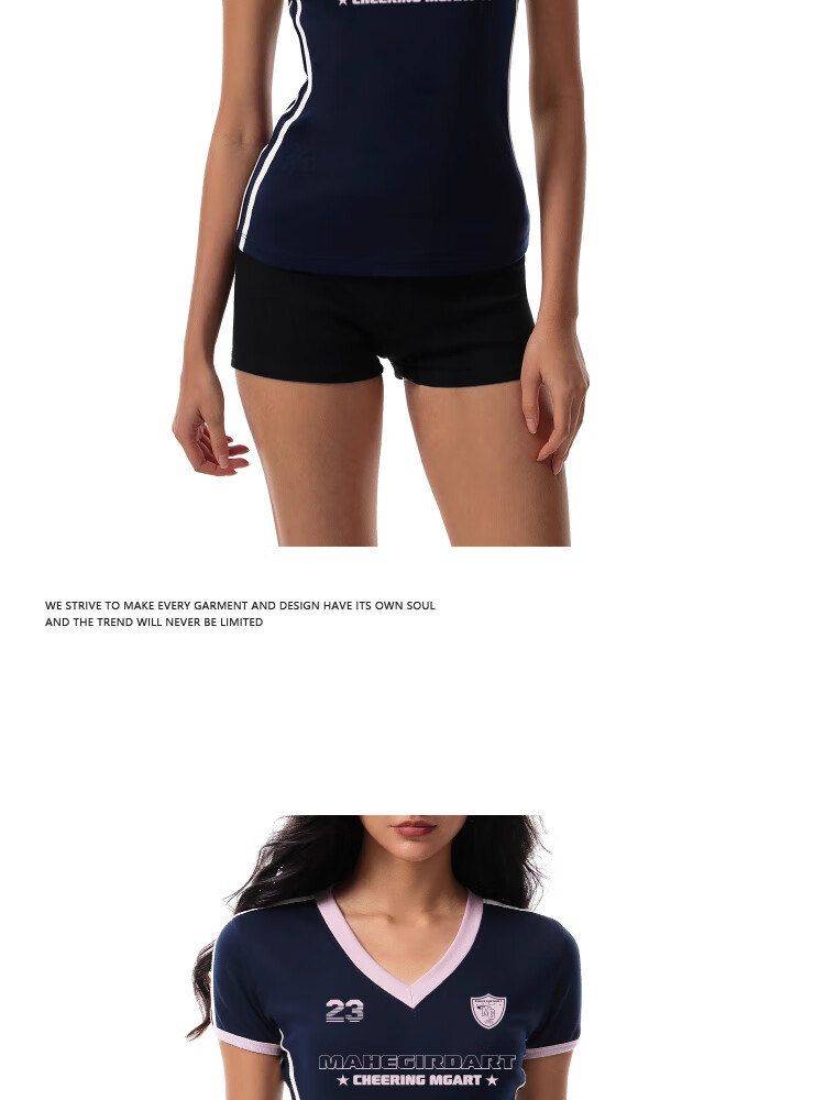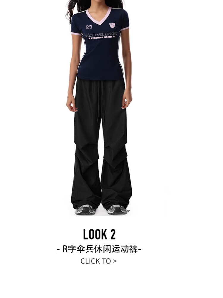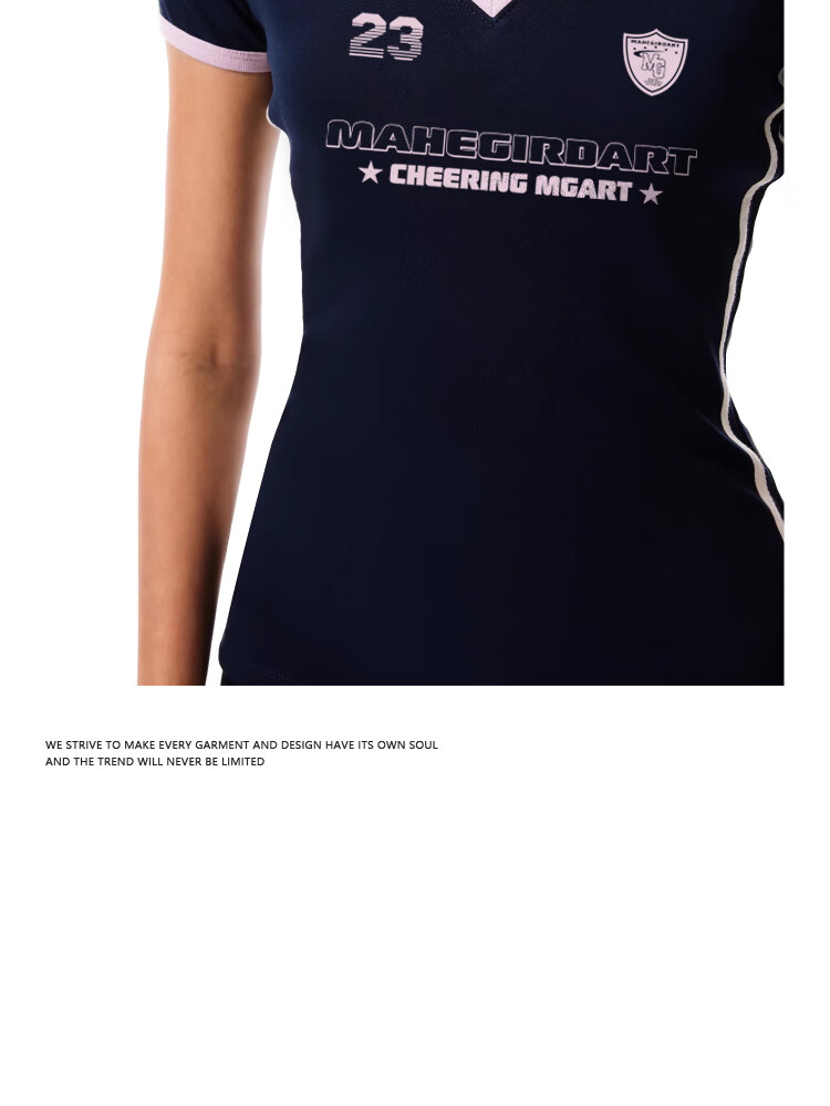 TAKE MOVE夏季新款美式复古休闲百搭辣妹V领撞色短袖女修身体恤衫显瘦上衣 藏青粉【星星】 M (95-110斤)